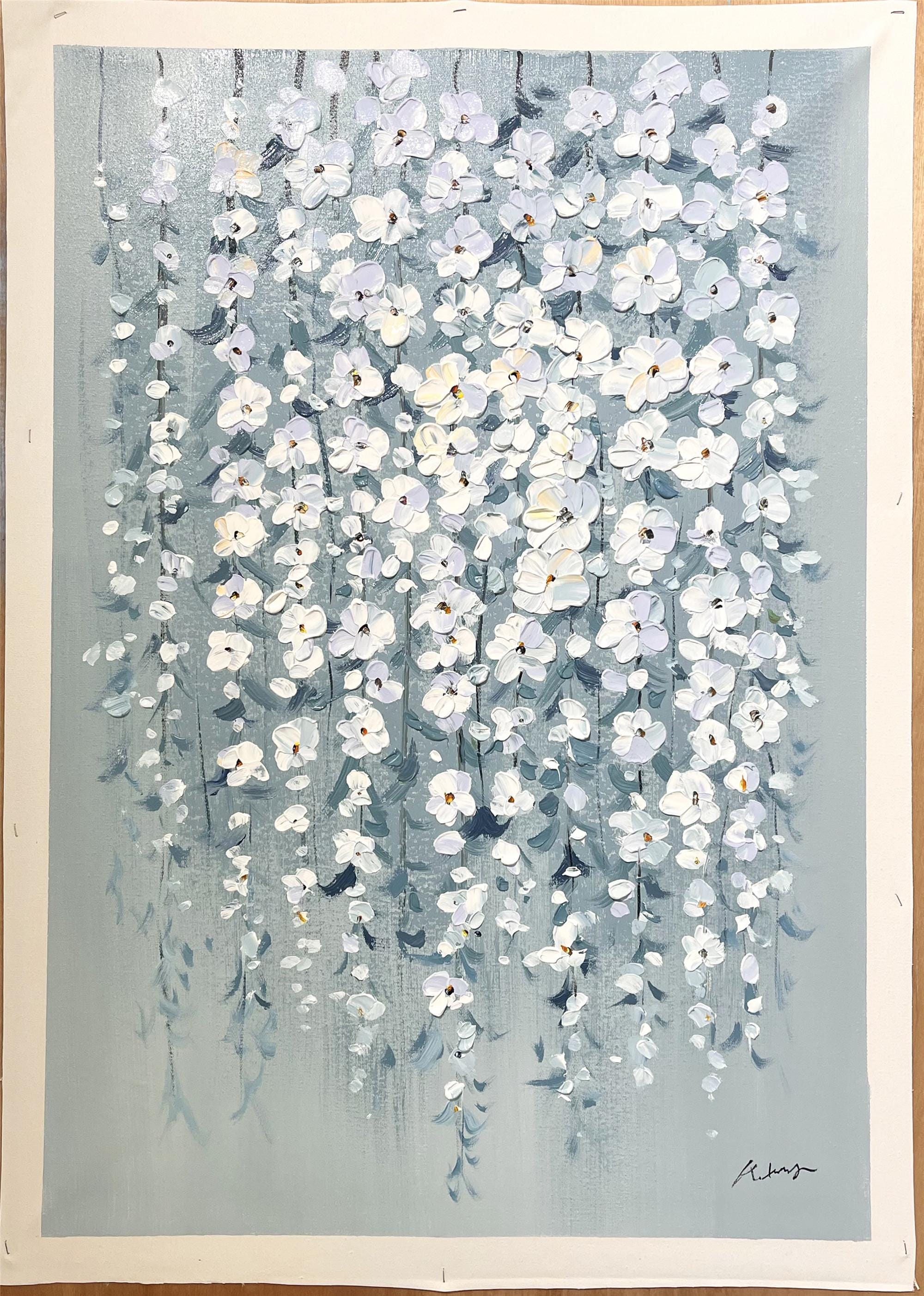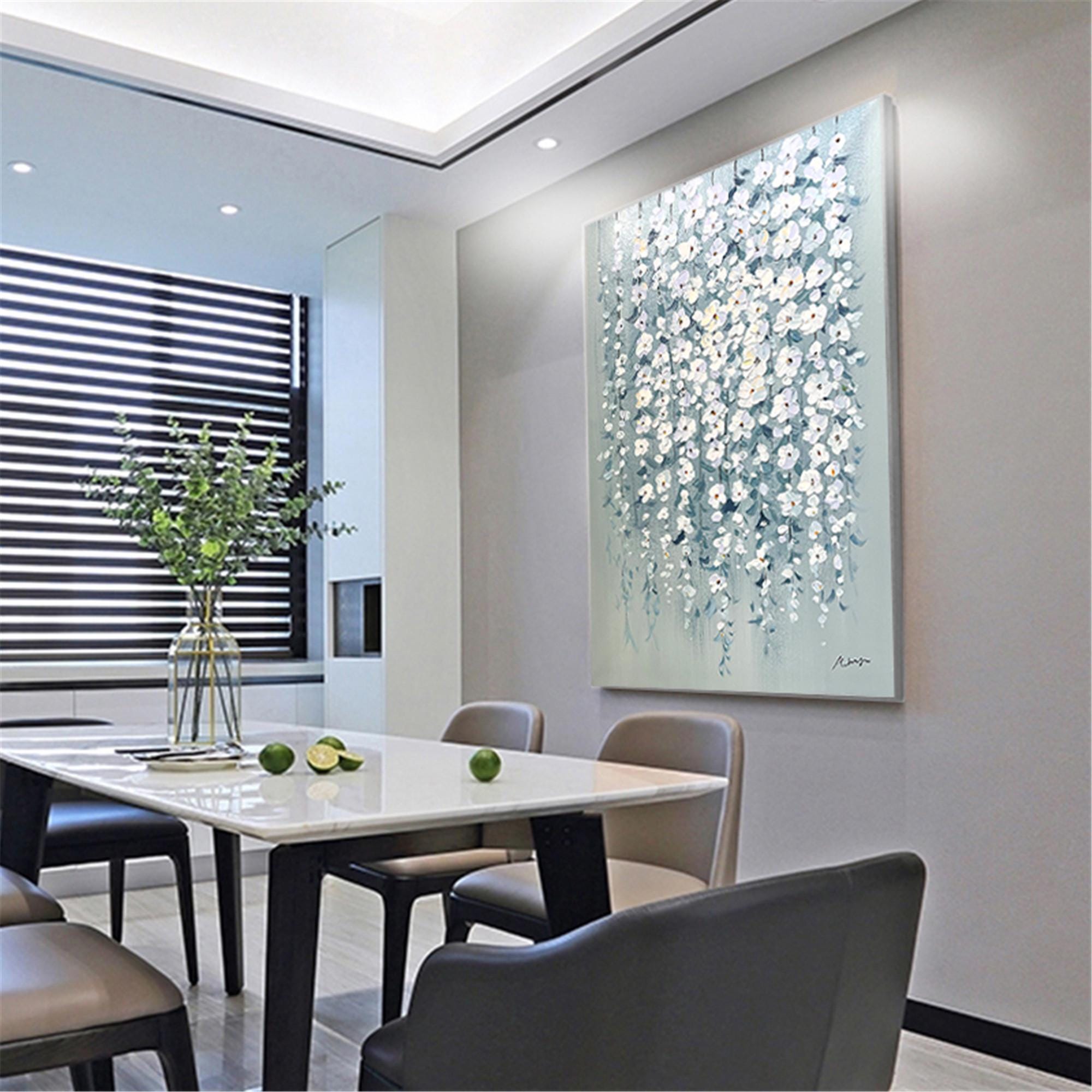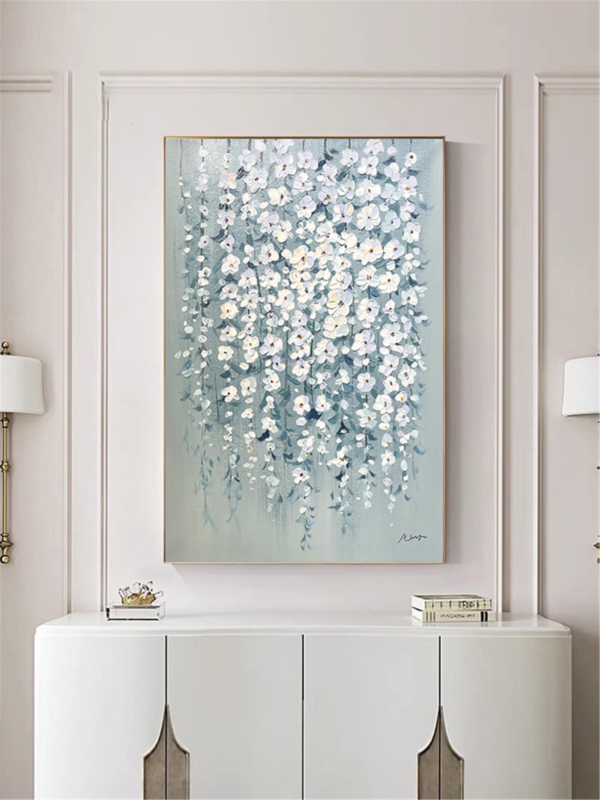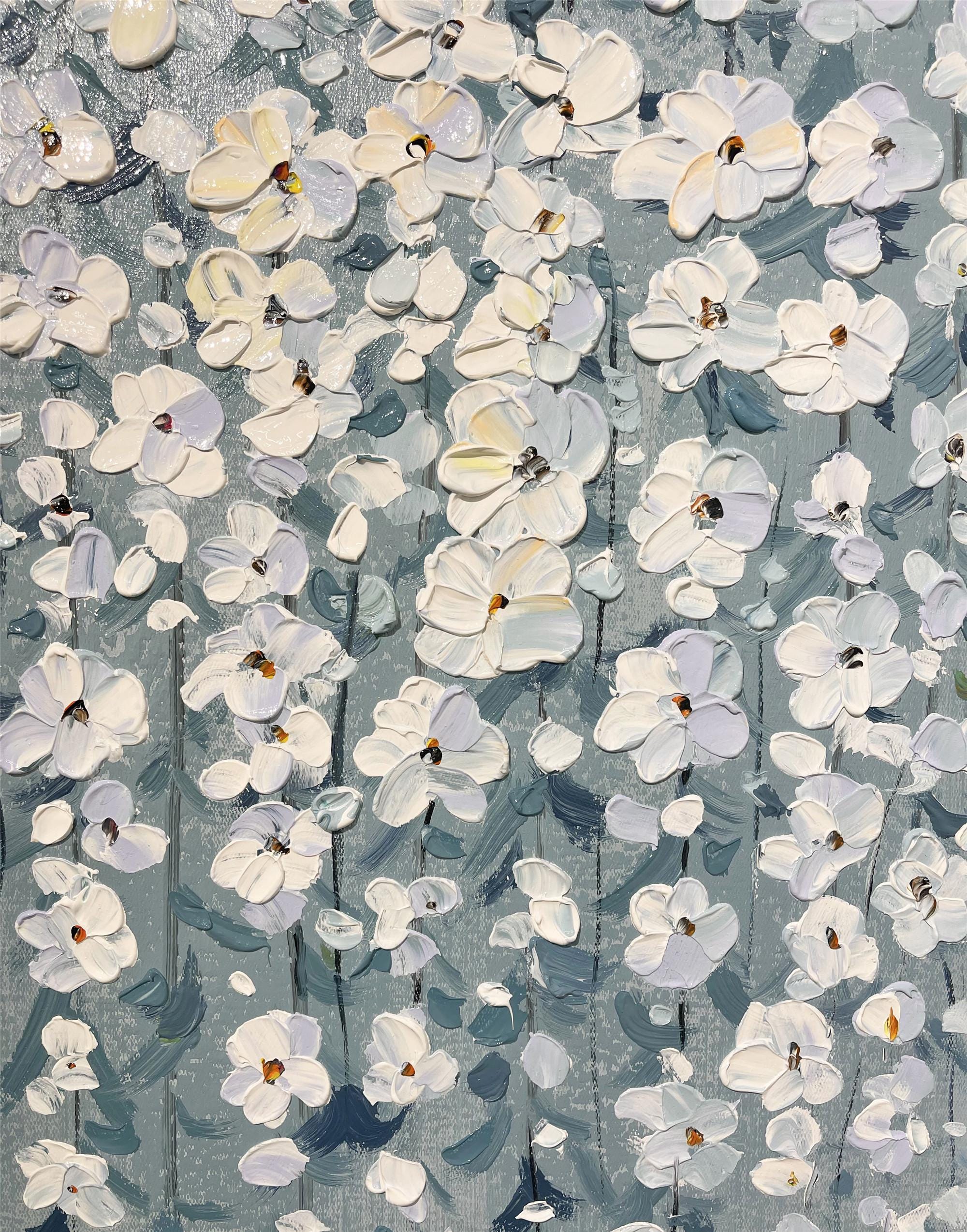 Blue 3DTextured Floral Wall Art,Neutral Abstract Flower Painting,Plaster Canvas,Minimalist Home Decor