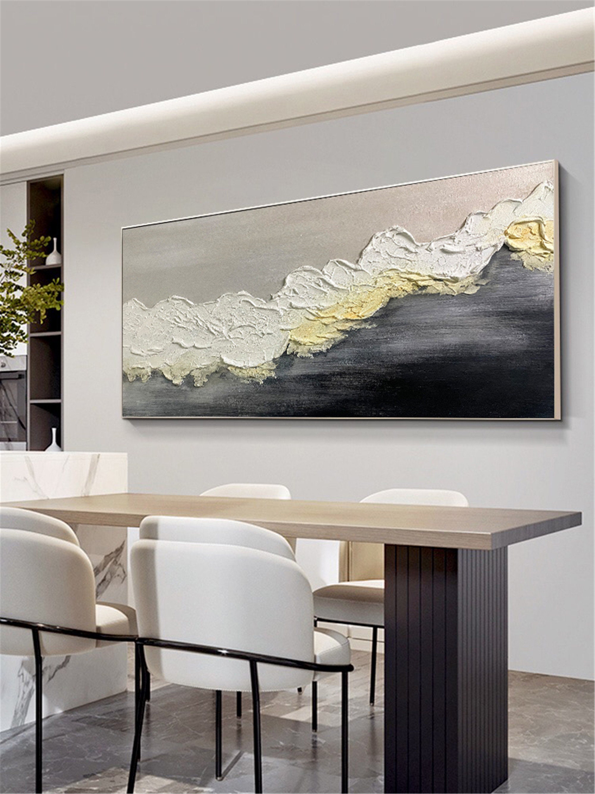 Textured Ocean Wave Painting, Framed Abstract Wall Art