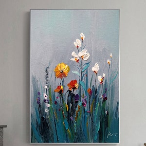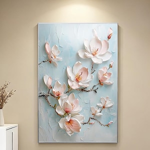 Neutral Spring Floral Wall Art,Handmade Textured Flower Canvas,Beige gold Palette Knife Painting