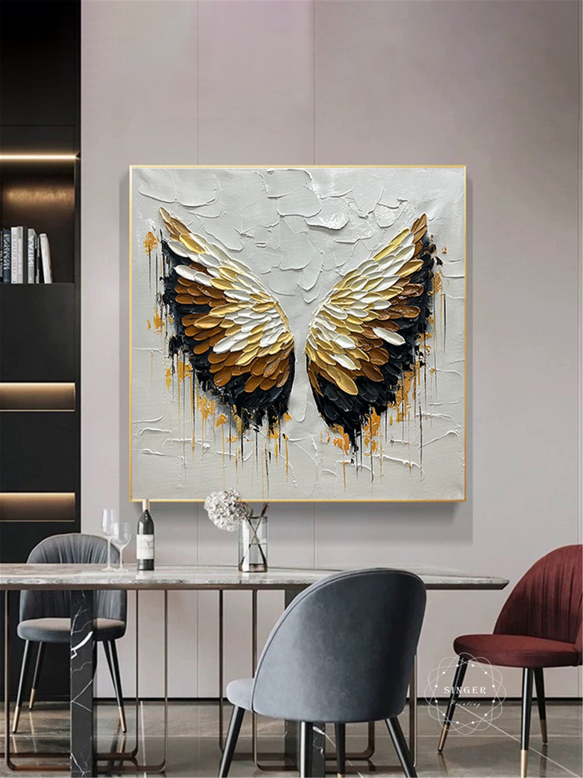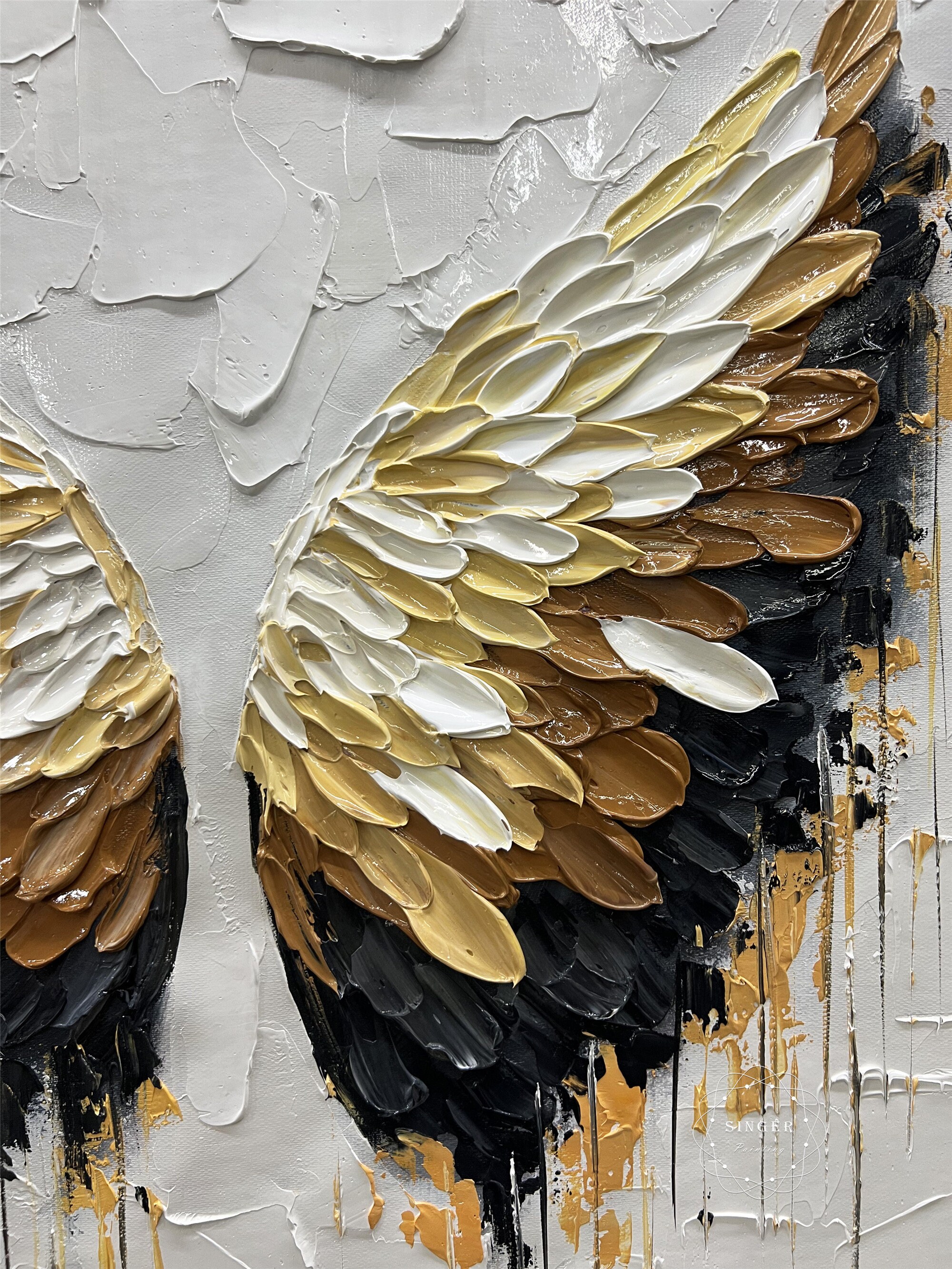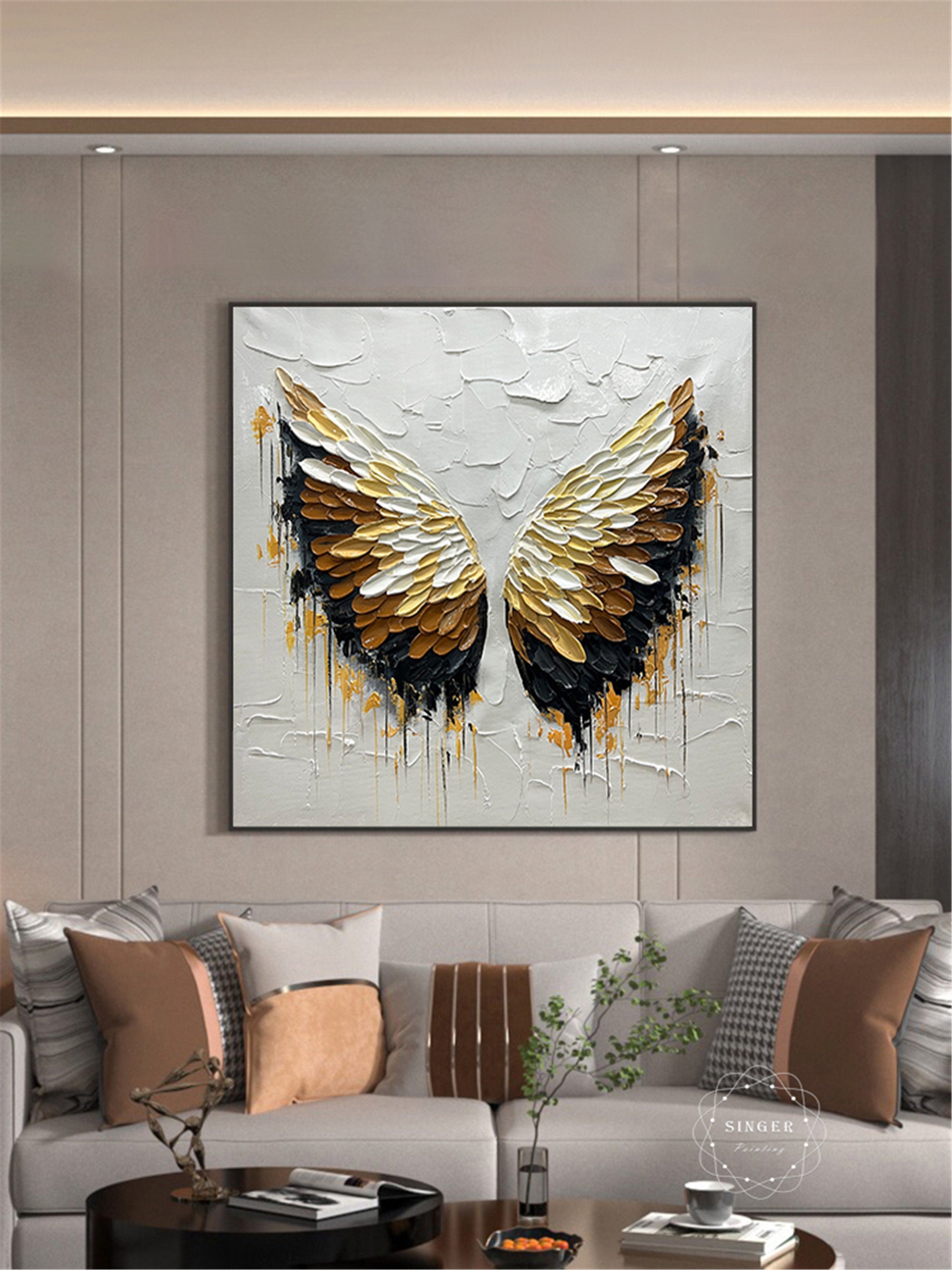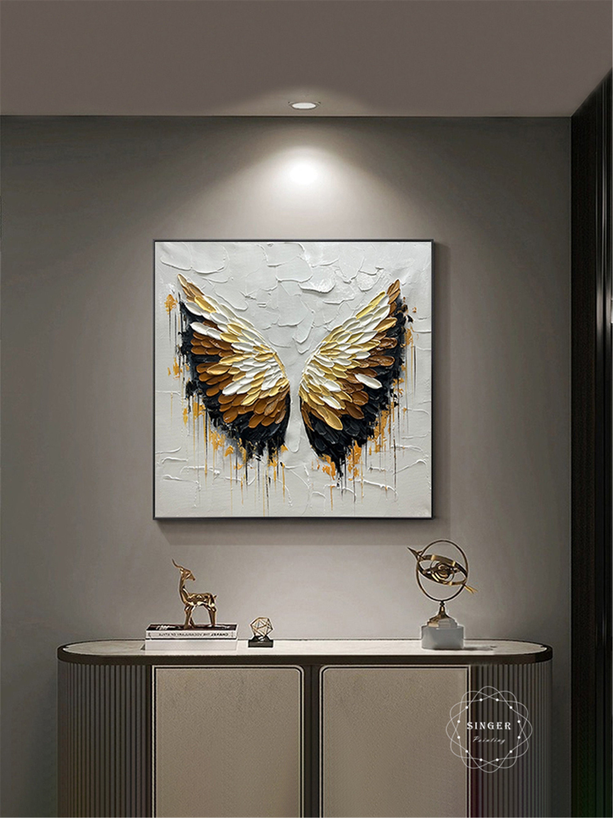 3D Textured Angel Wings Painting, Abstract Acrylic Wall Art