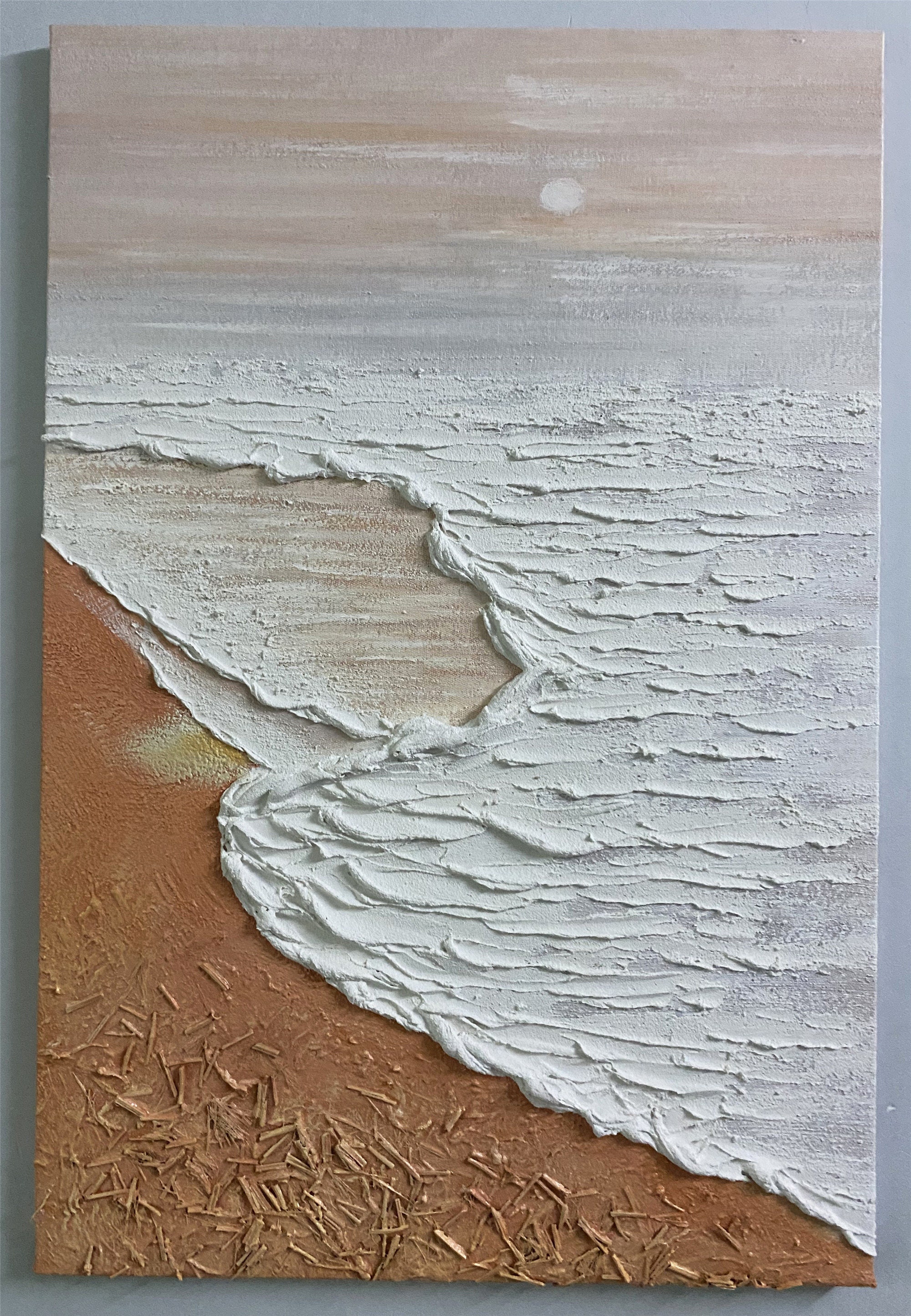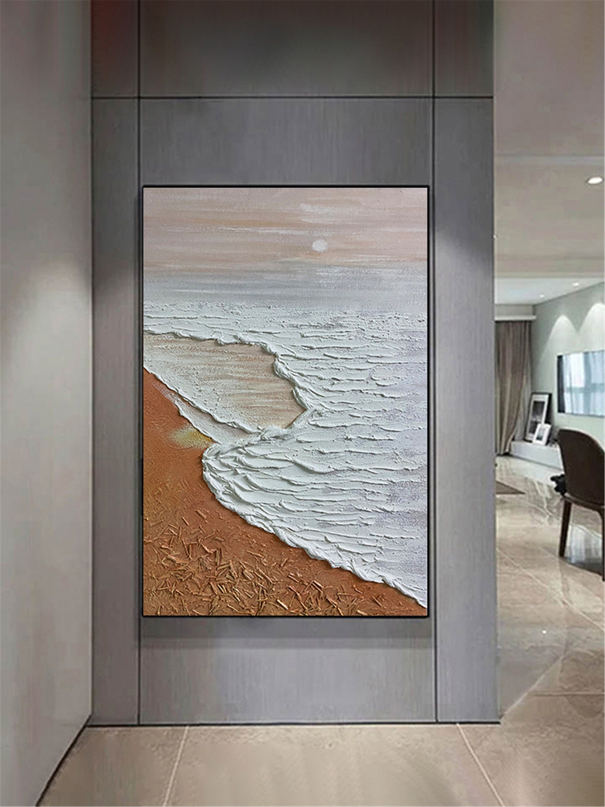 Textured Ocean Painting on Canvas, 3D Abstract Wave Wall Art