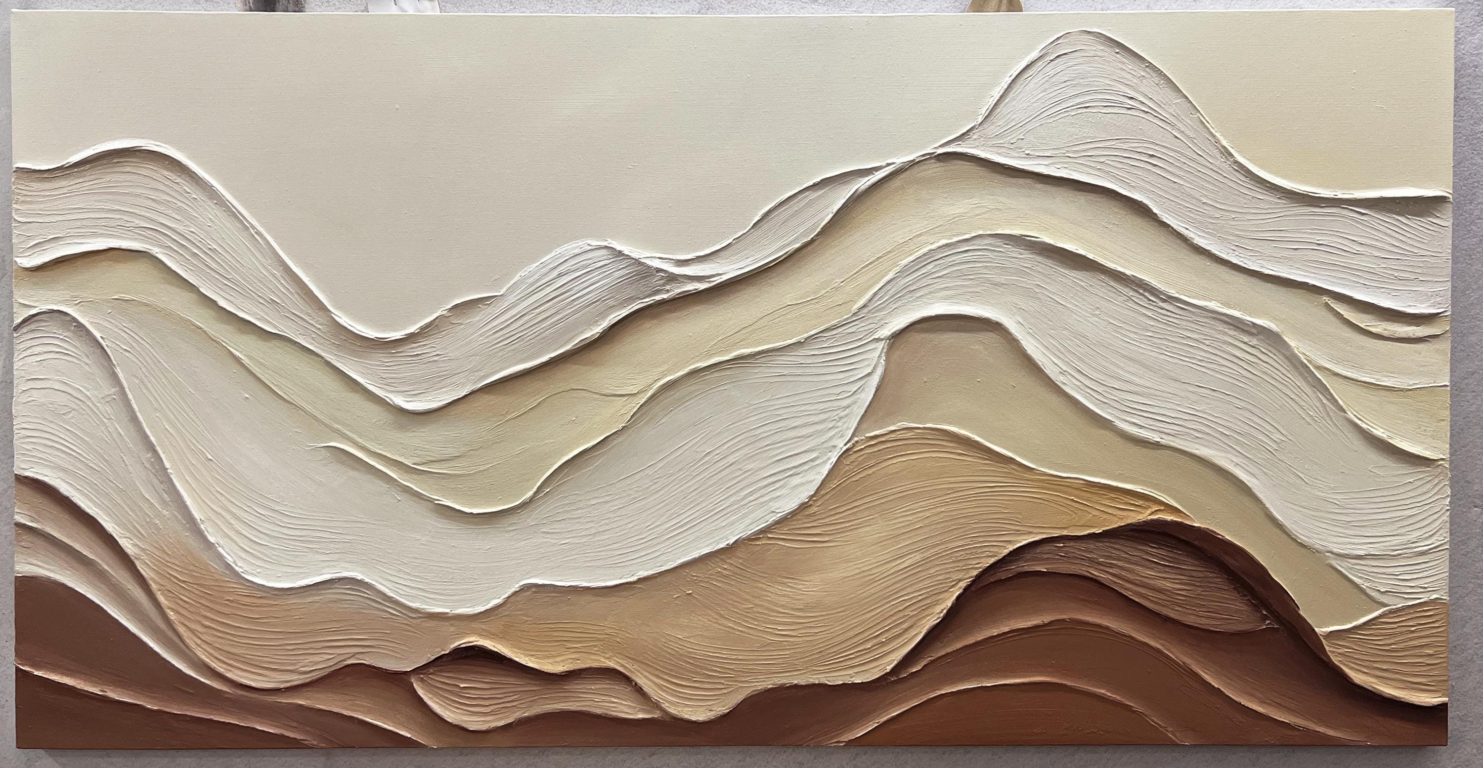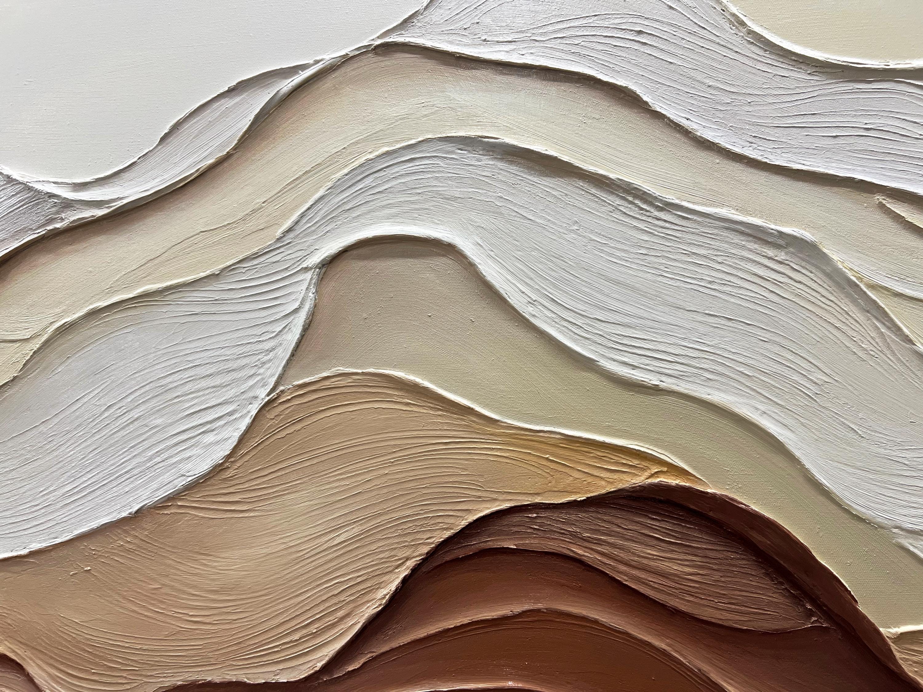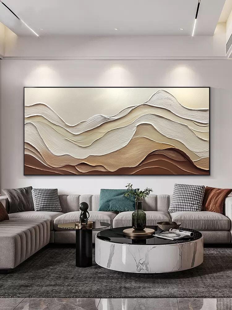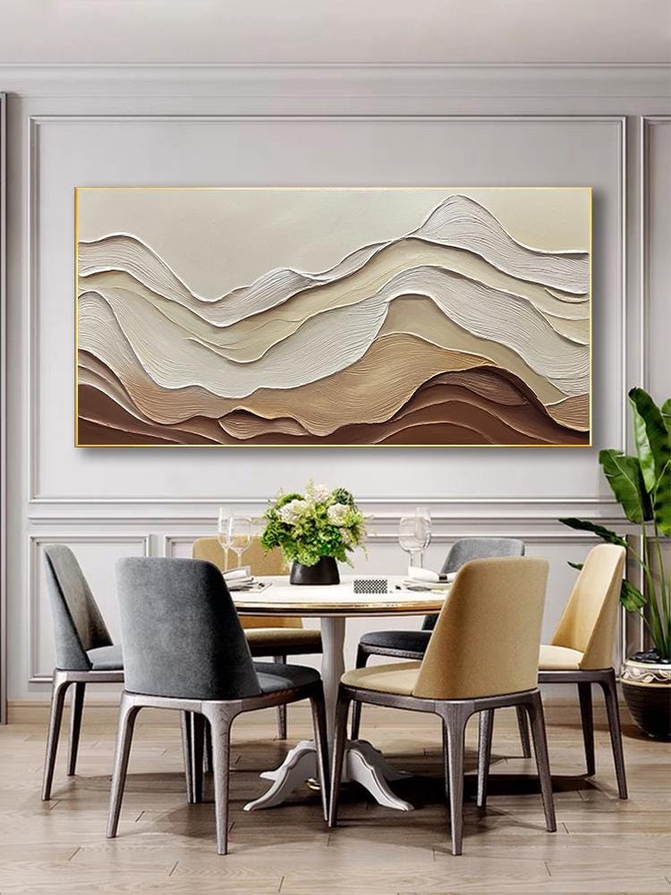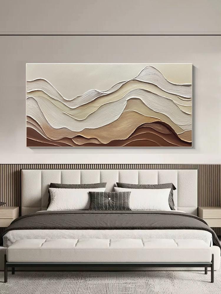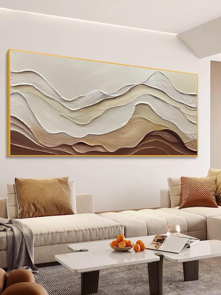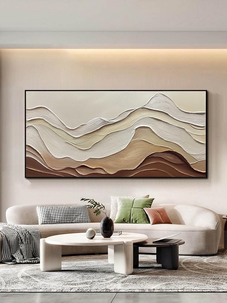 3DTextured ocean acrylic Painting,Earth Tone Wave,Wabi-sabi living room home office wall decor
