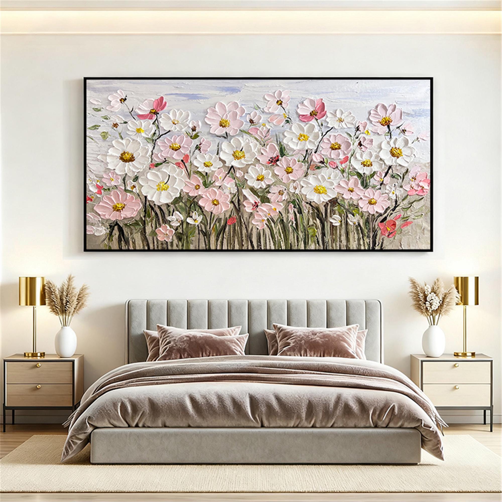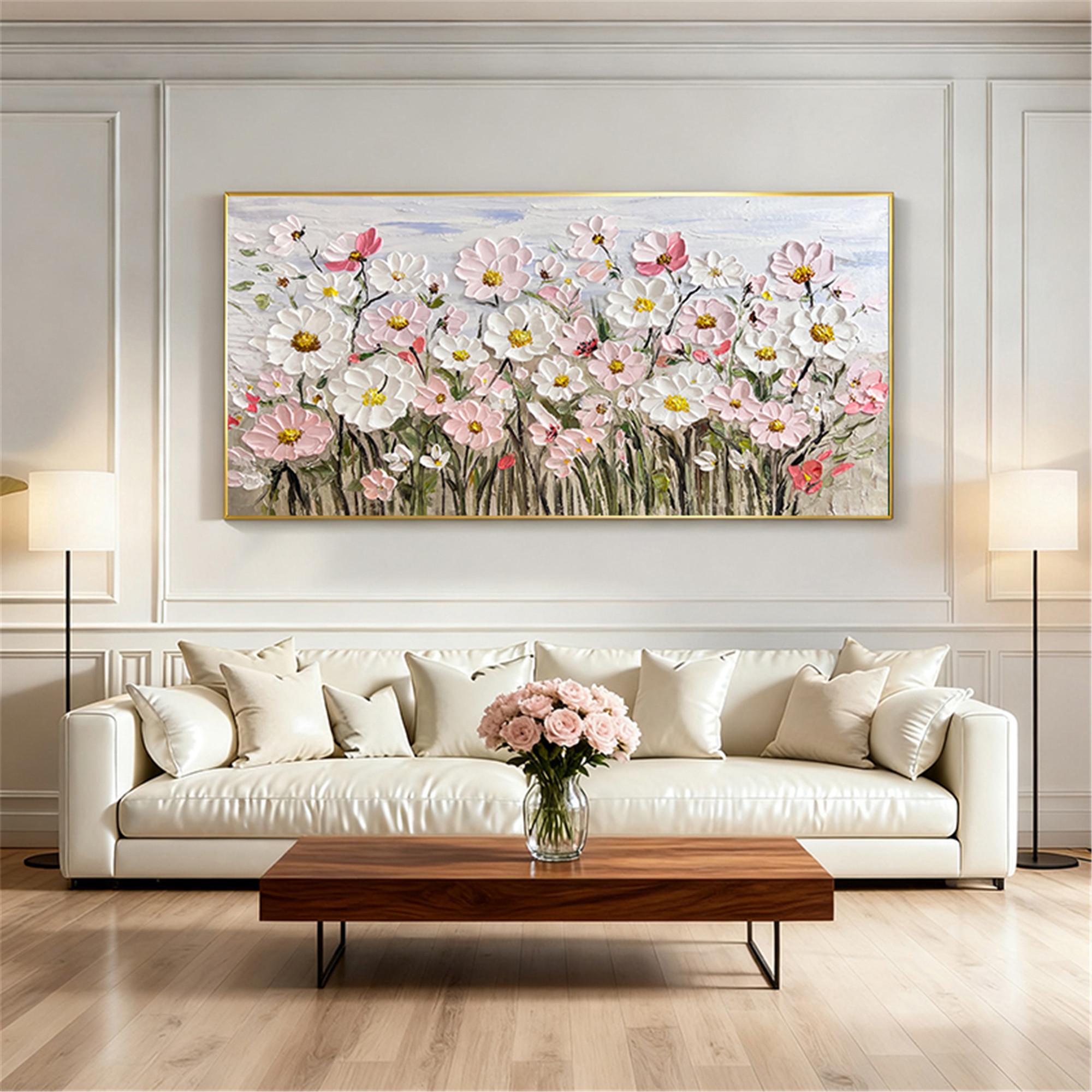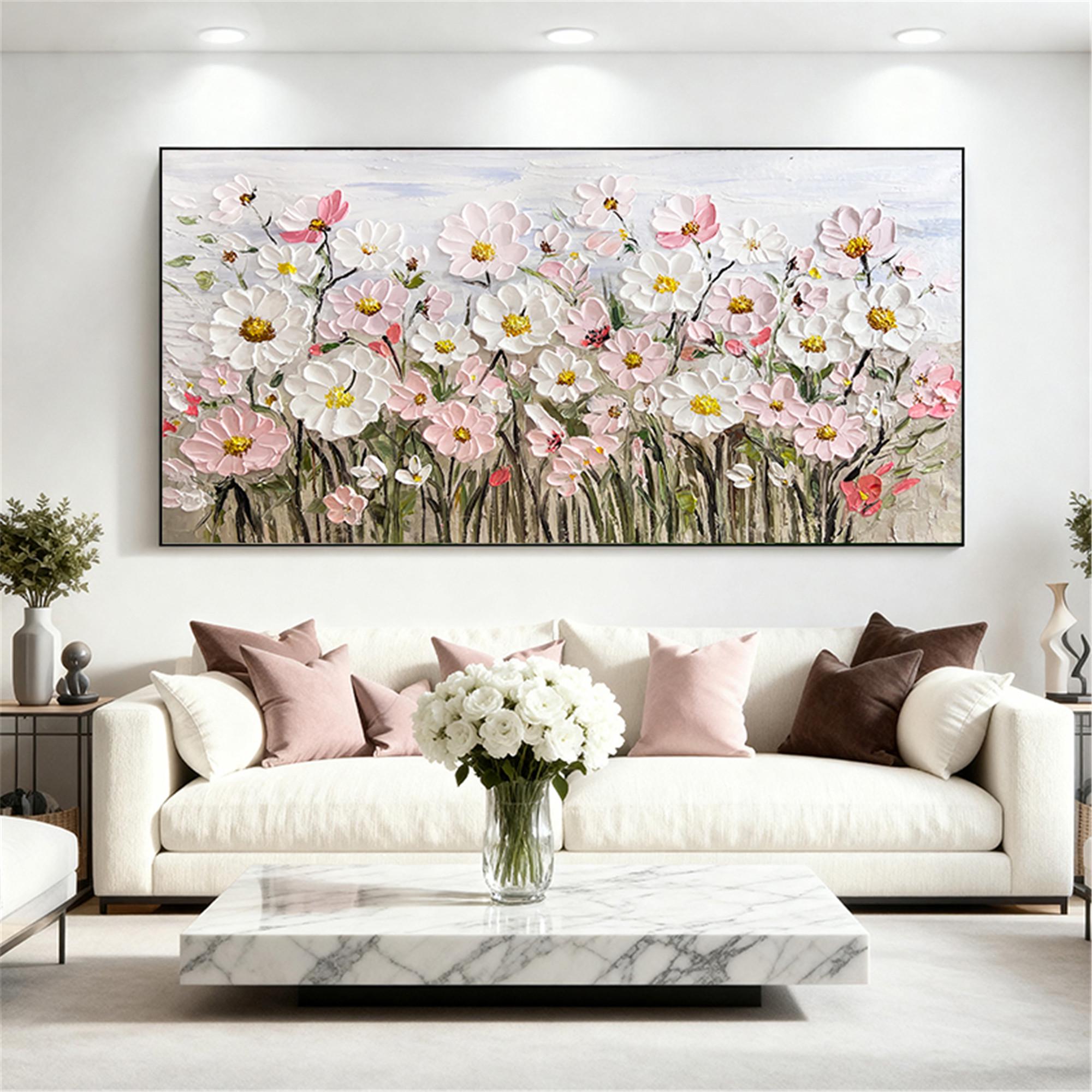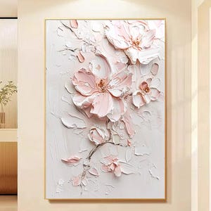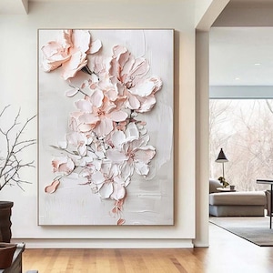 Original pink acrylic Painting on canvas,living room wall art,3D Floral custom painting
