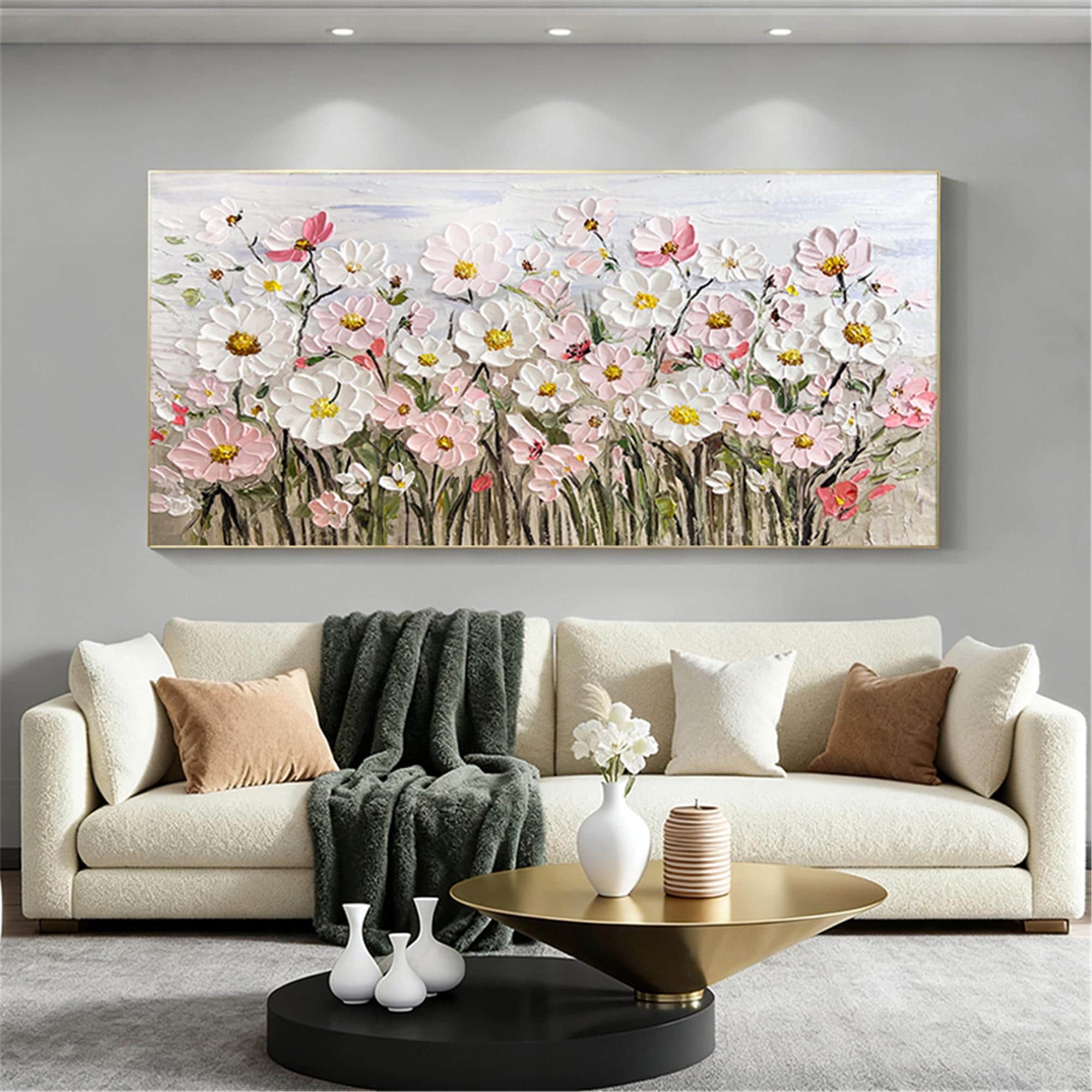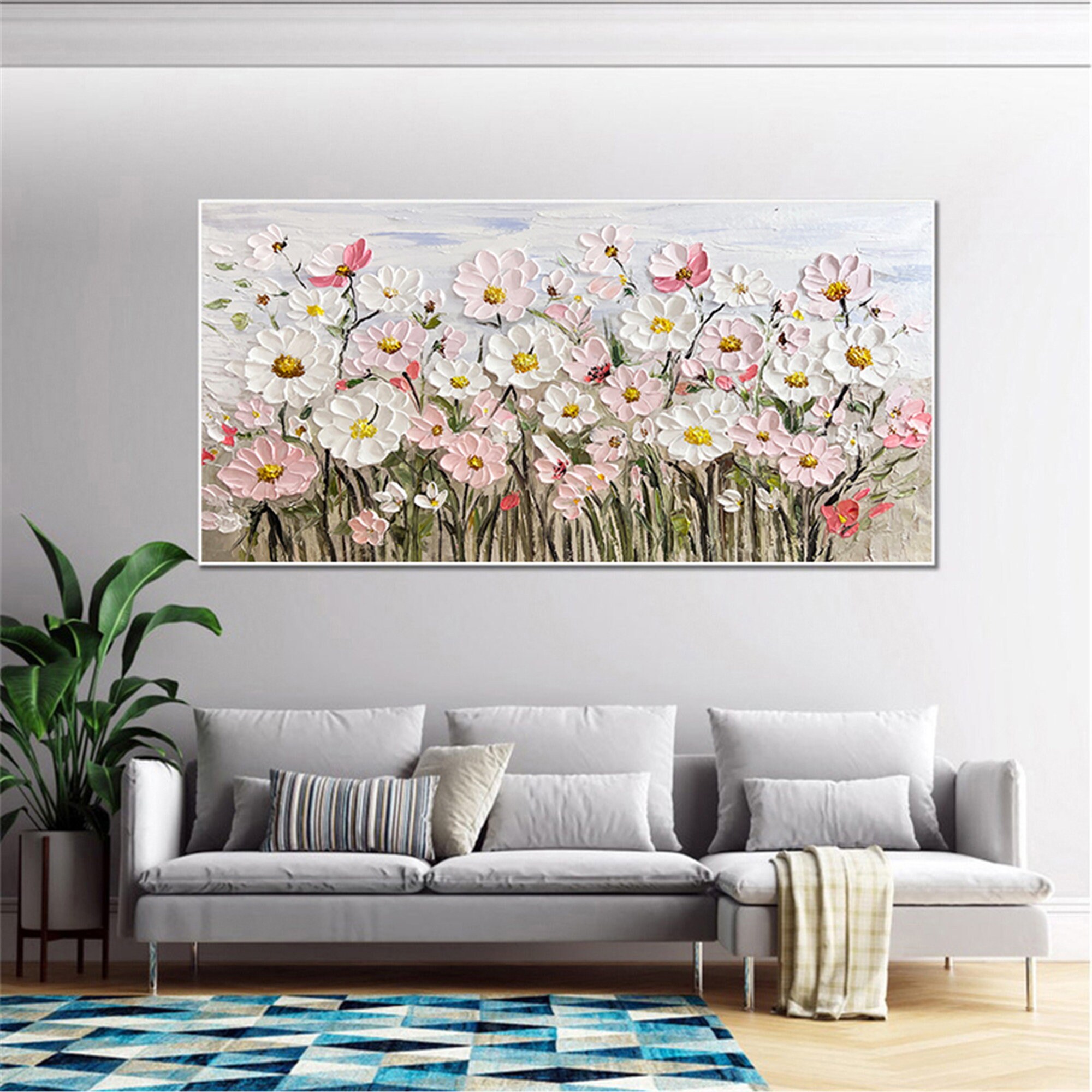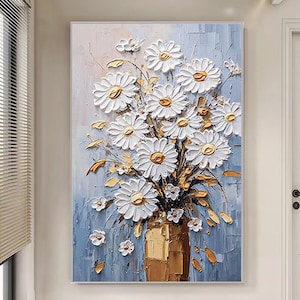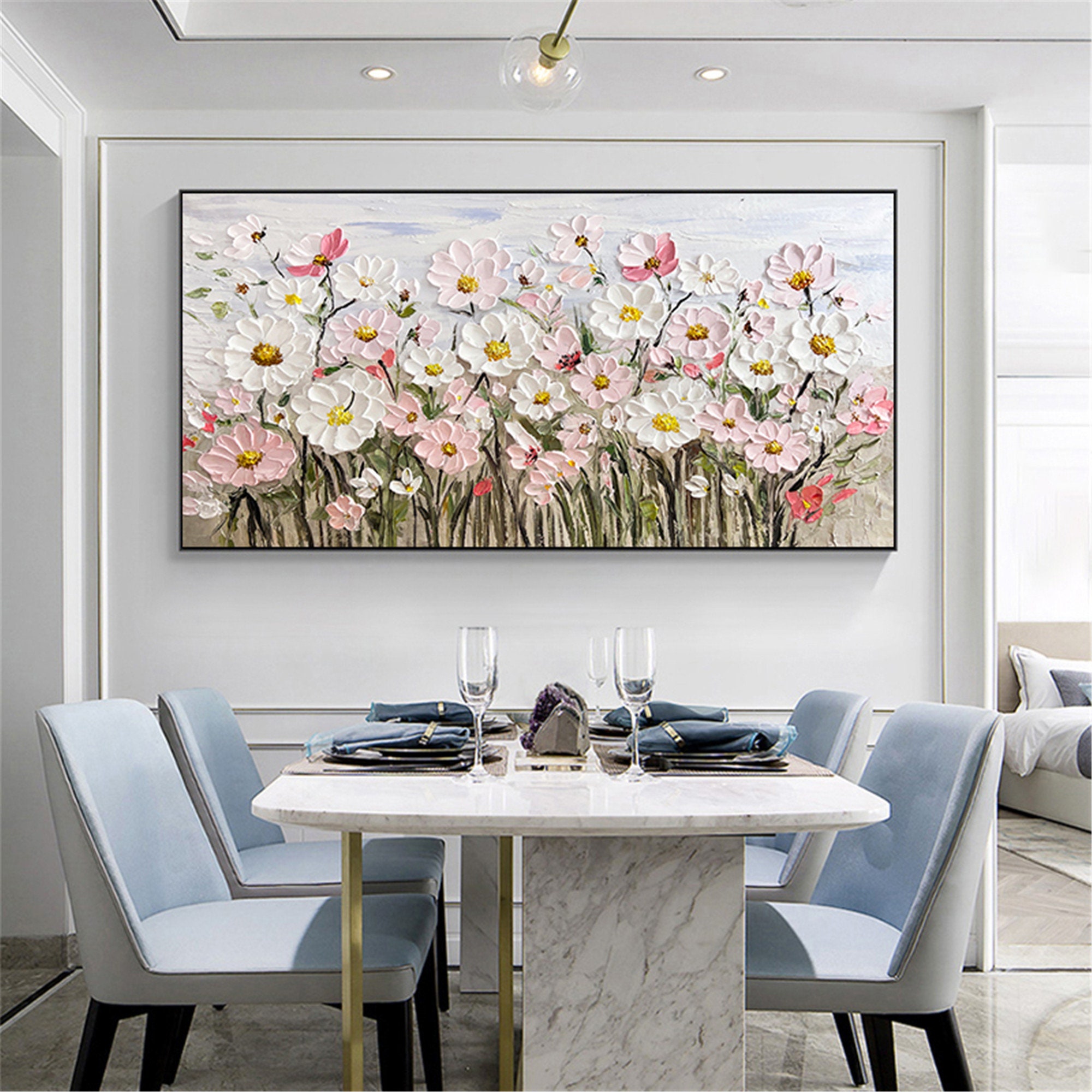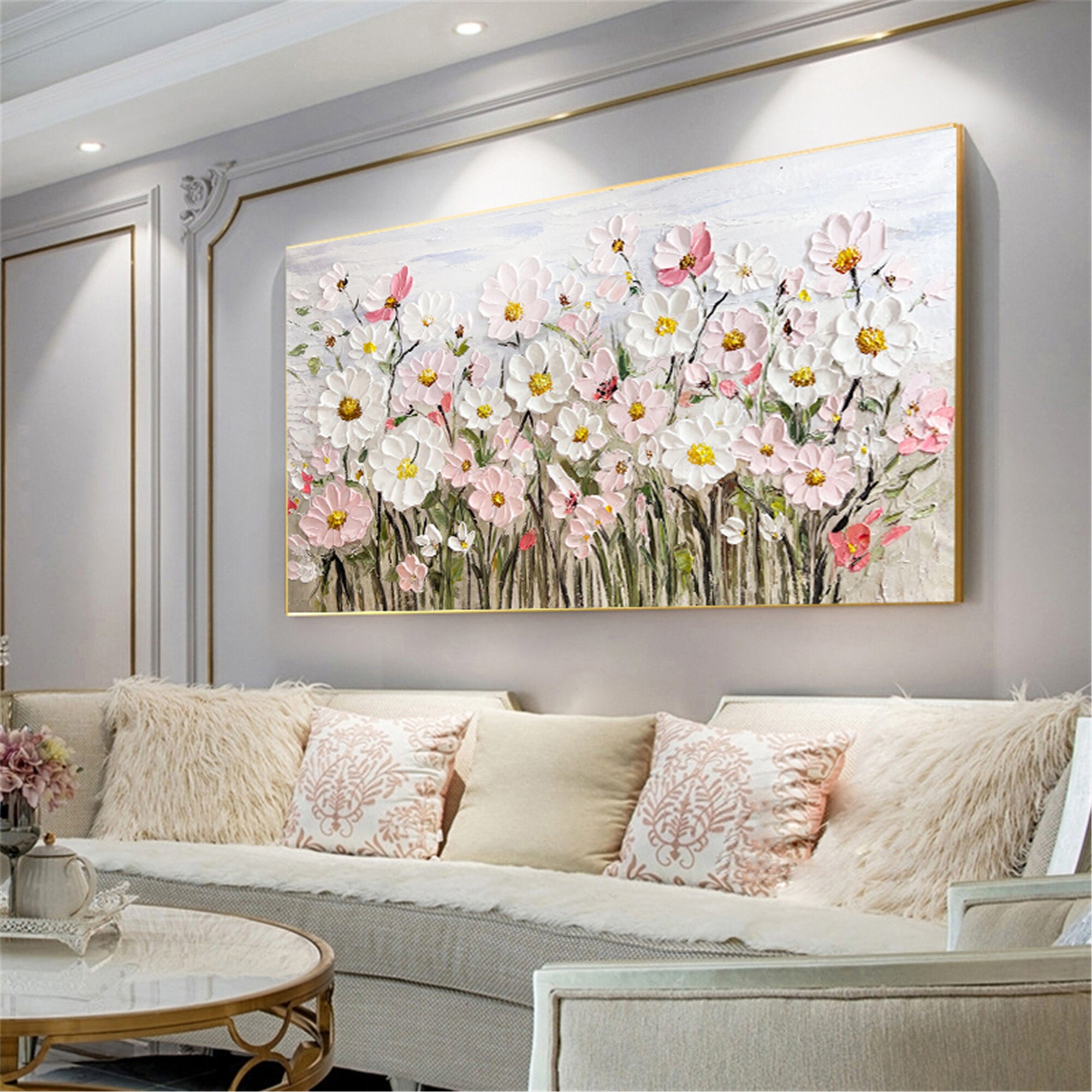 Original pink acrylic Painting on canvas,living room wall art,3D Floral custom painting