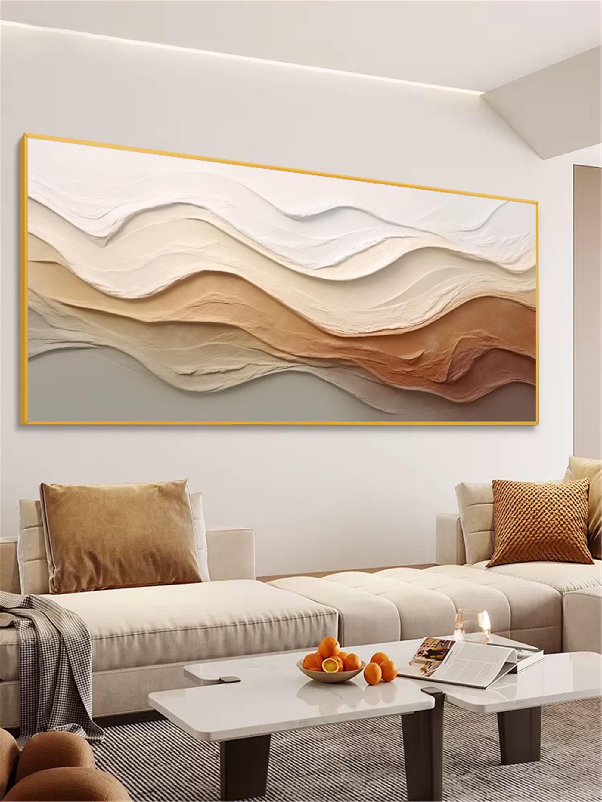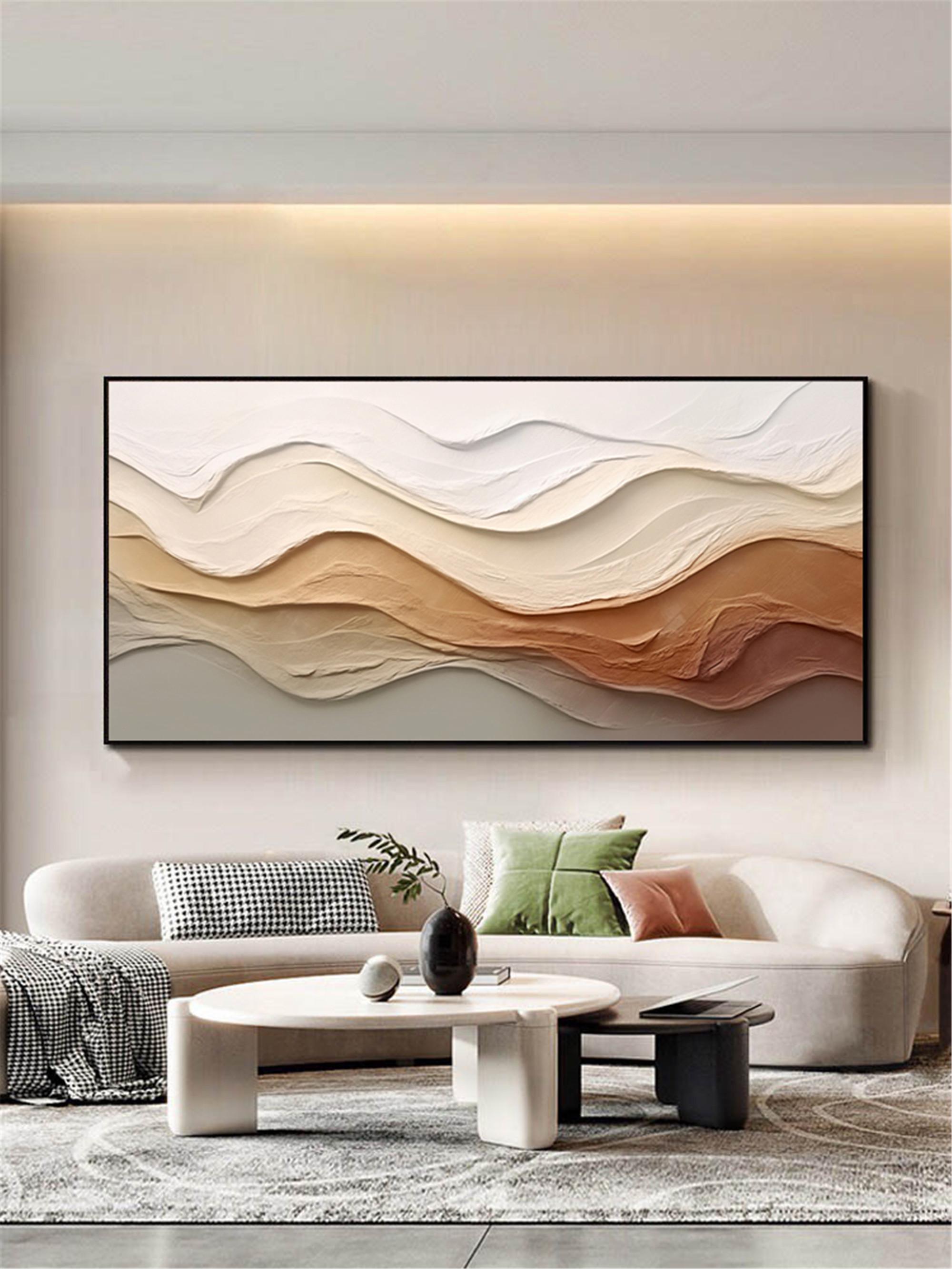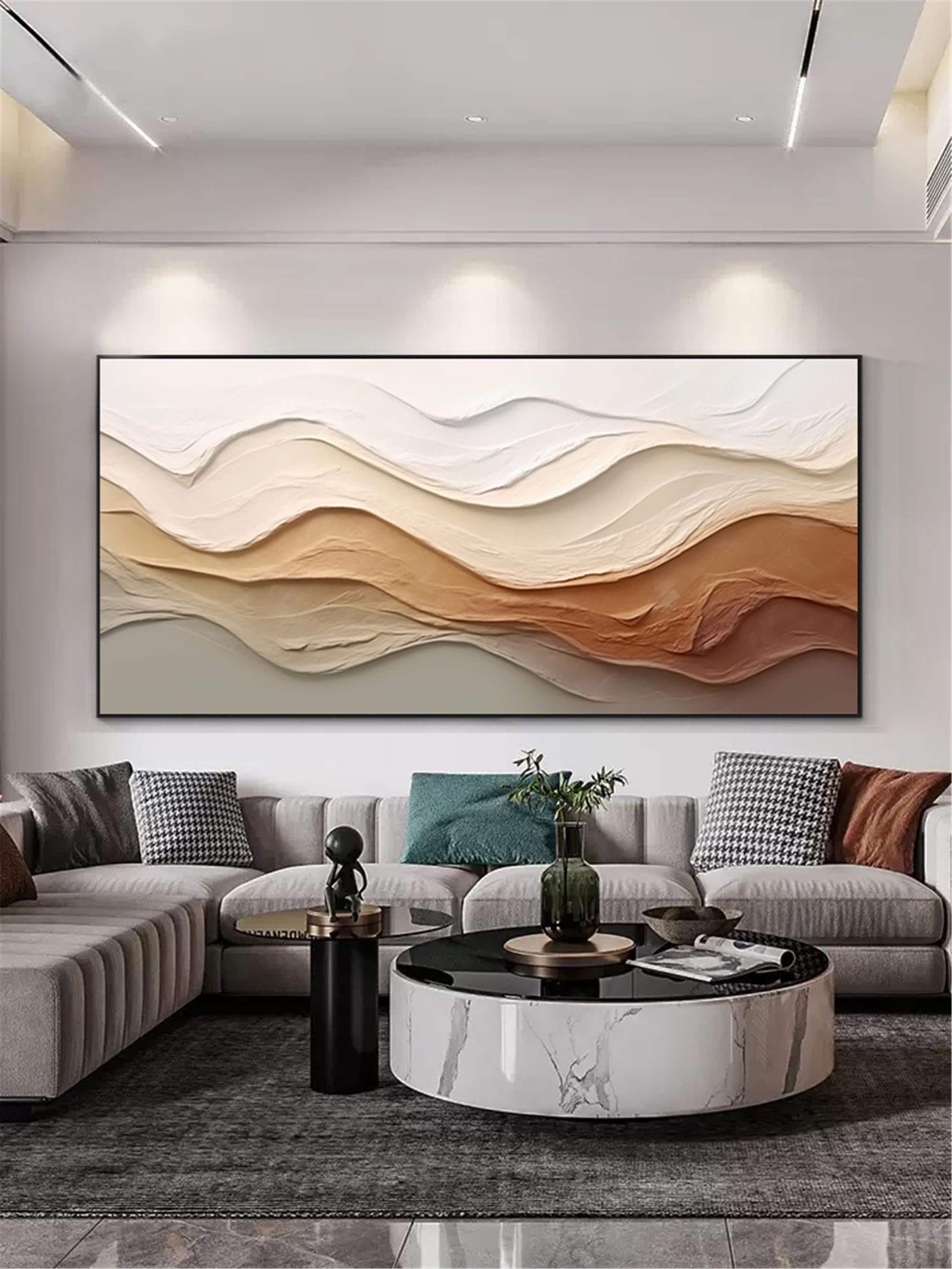 3DTextured Original abstract painting on canvas Large Ocean Wall Art Beach Painting personalized gift Earth Tone Wave wall Decor Living Room