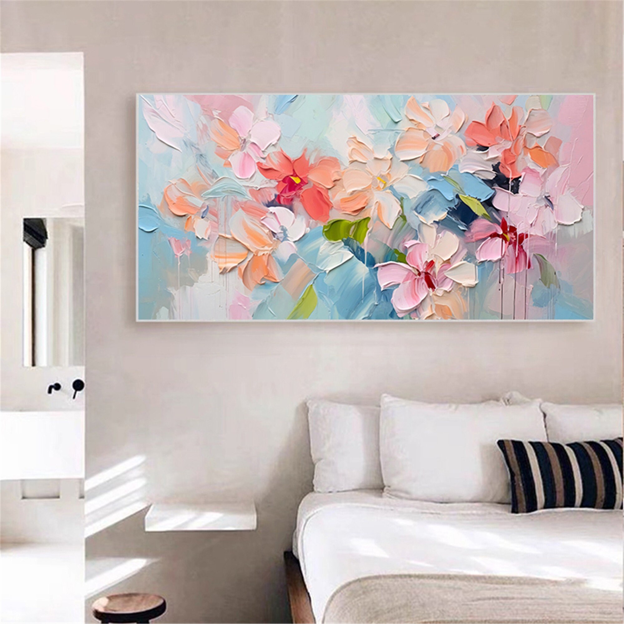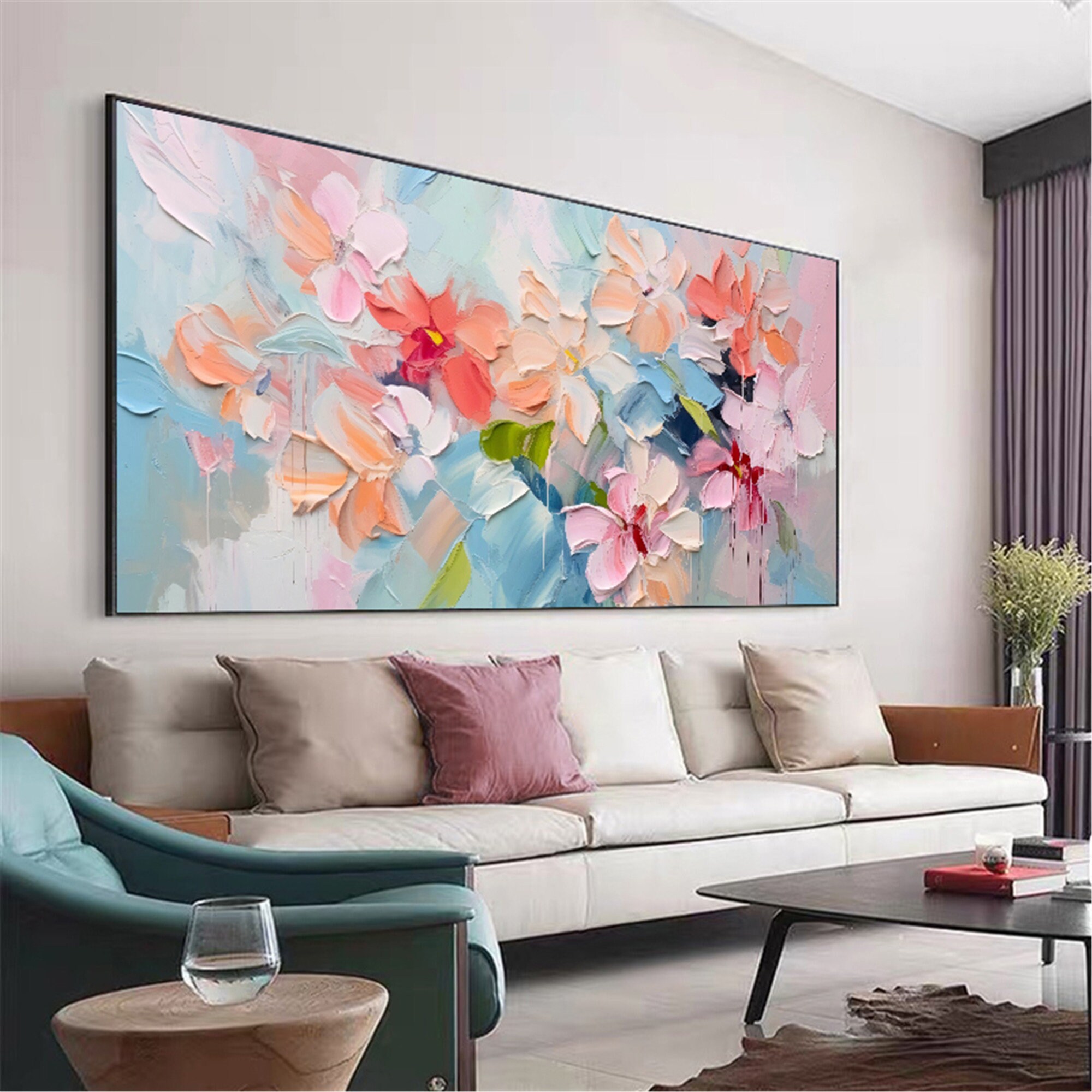 3D Texture Floral Painting, Original Pink Flower, Acrylic Canvas Art wall decor office home