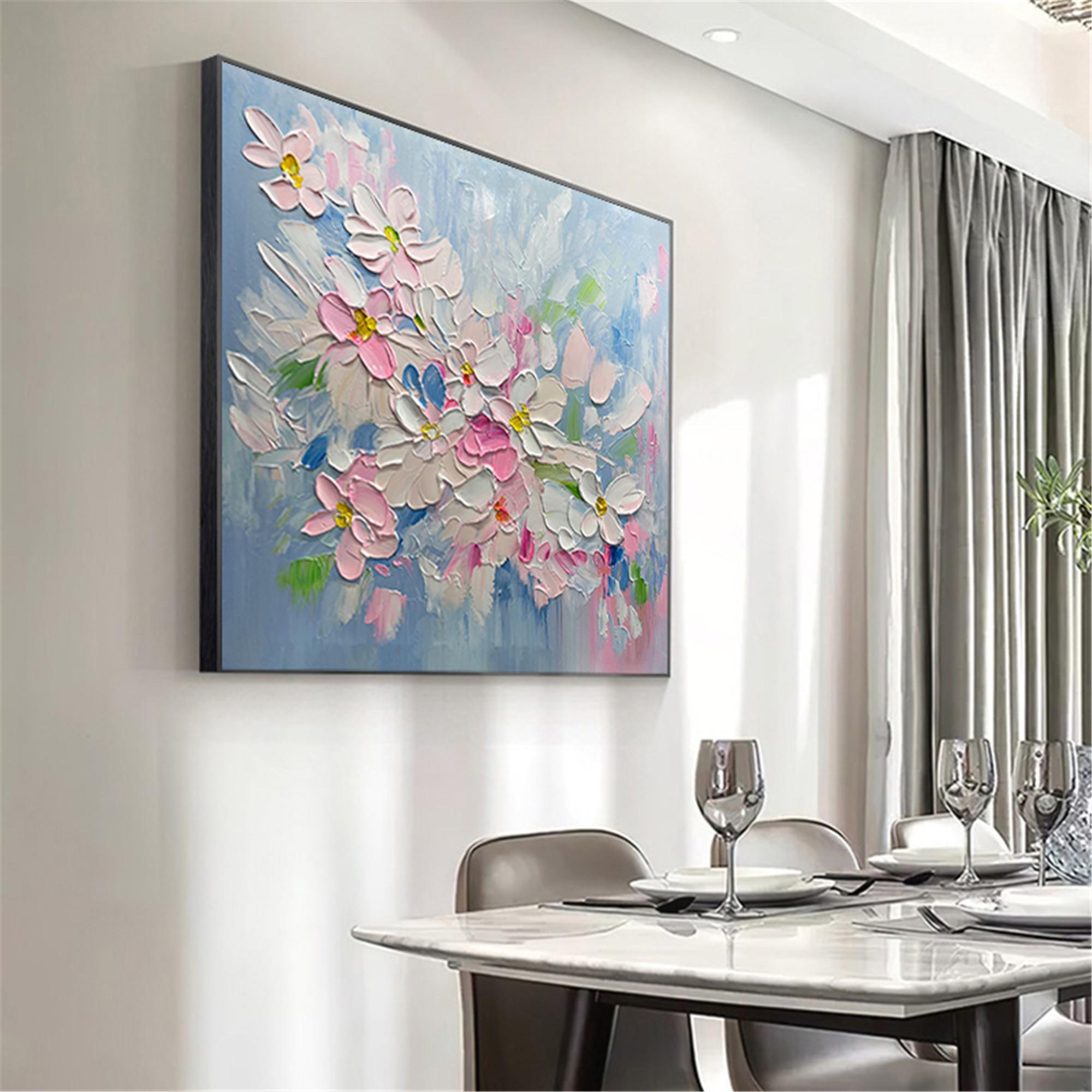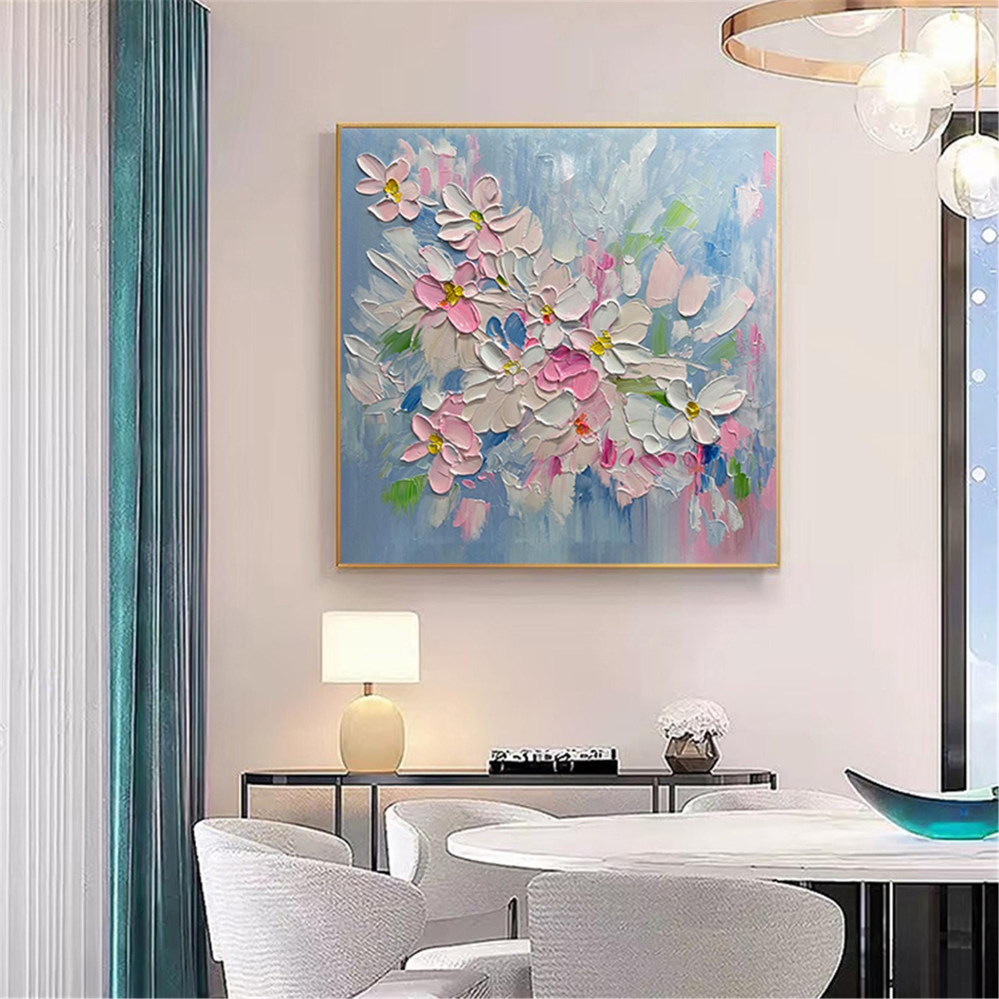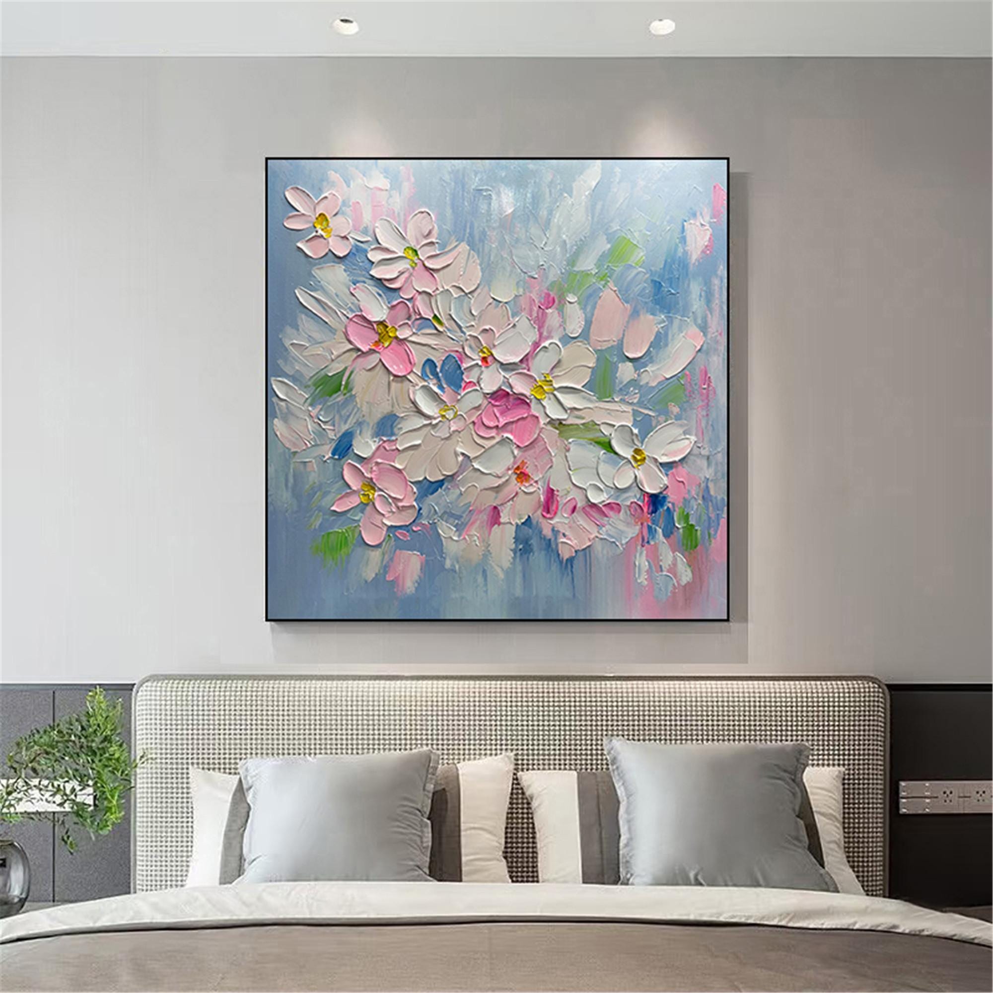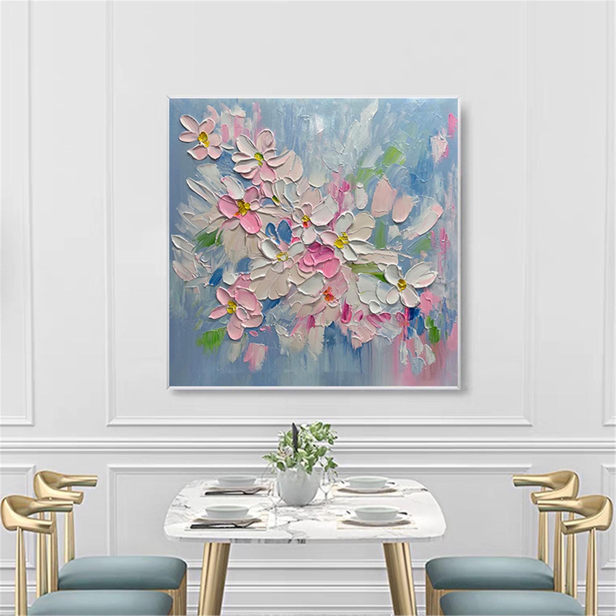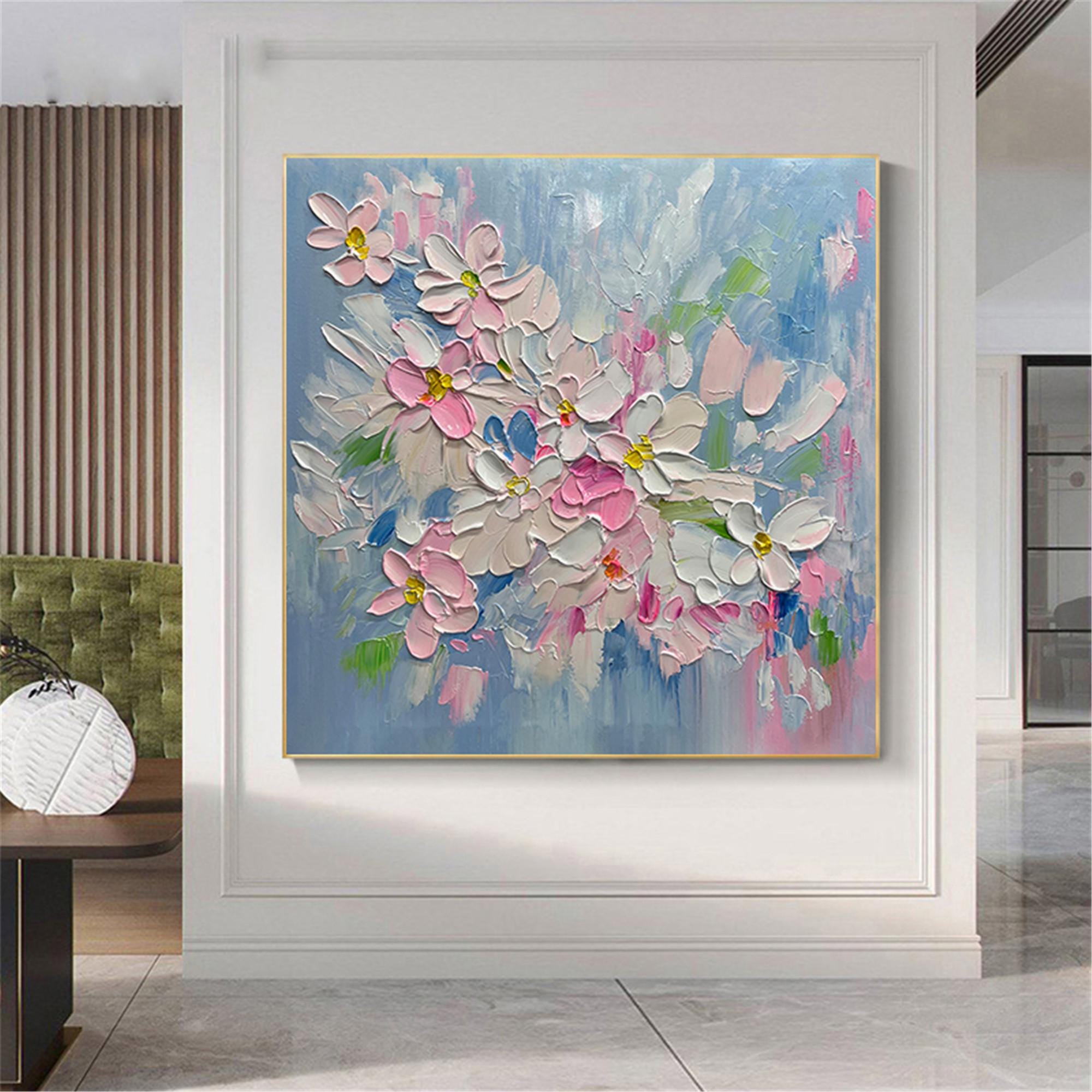 Spring Floral Oil Painting,Colorful Canvas Art,Botanical Wall Decor,Gift for Art Love