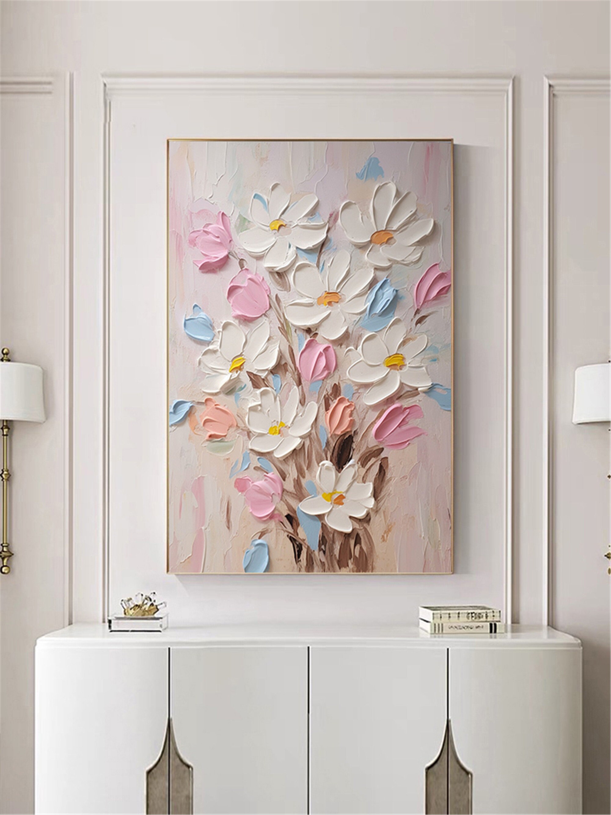 3D Original painting,Flower acrylic Painting on Canvas, personalized gift,abstract painting ,pink wall Art ,pink Floral Art,wall decor