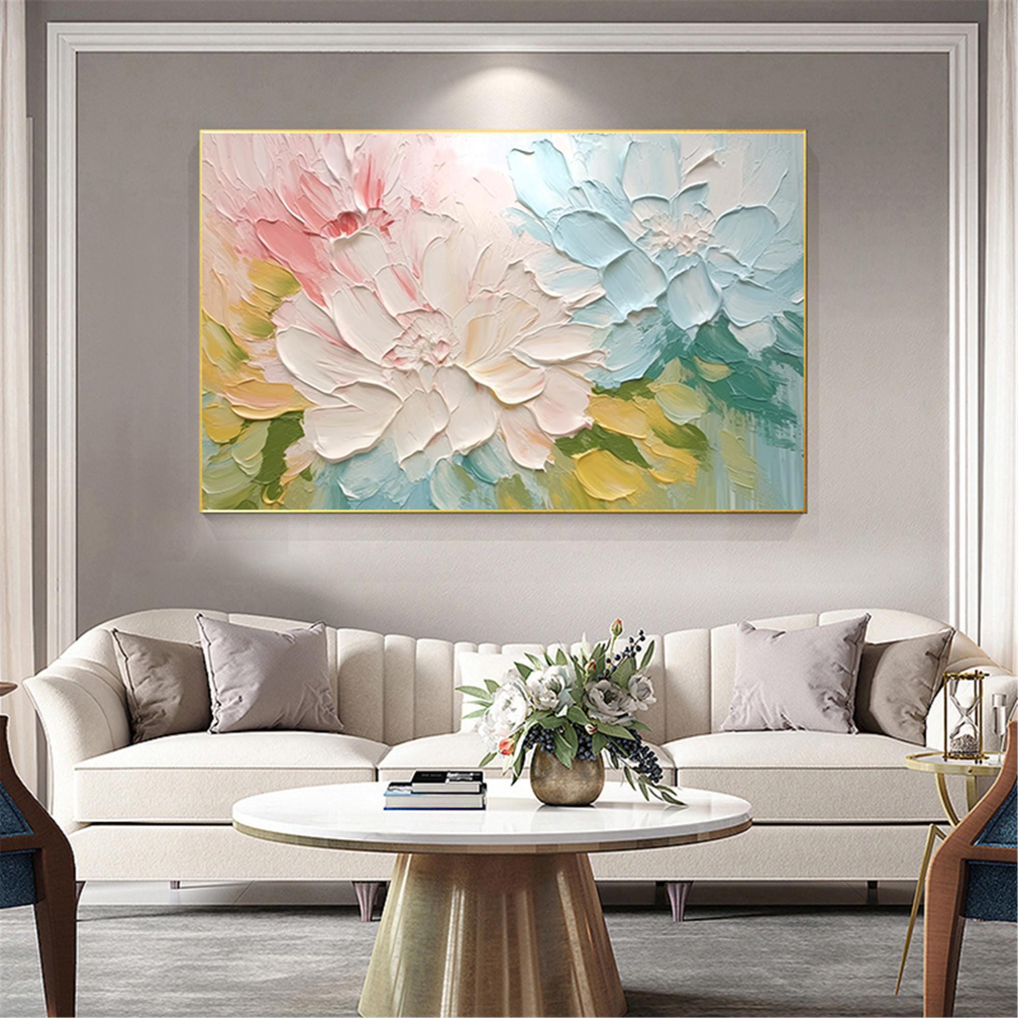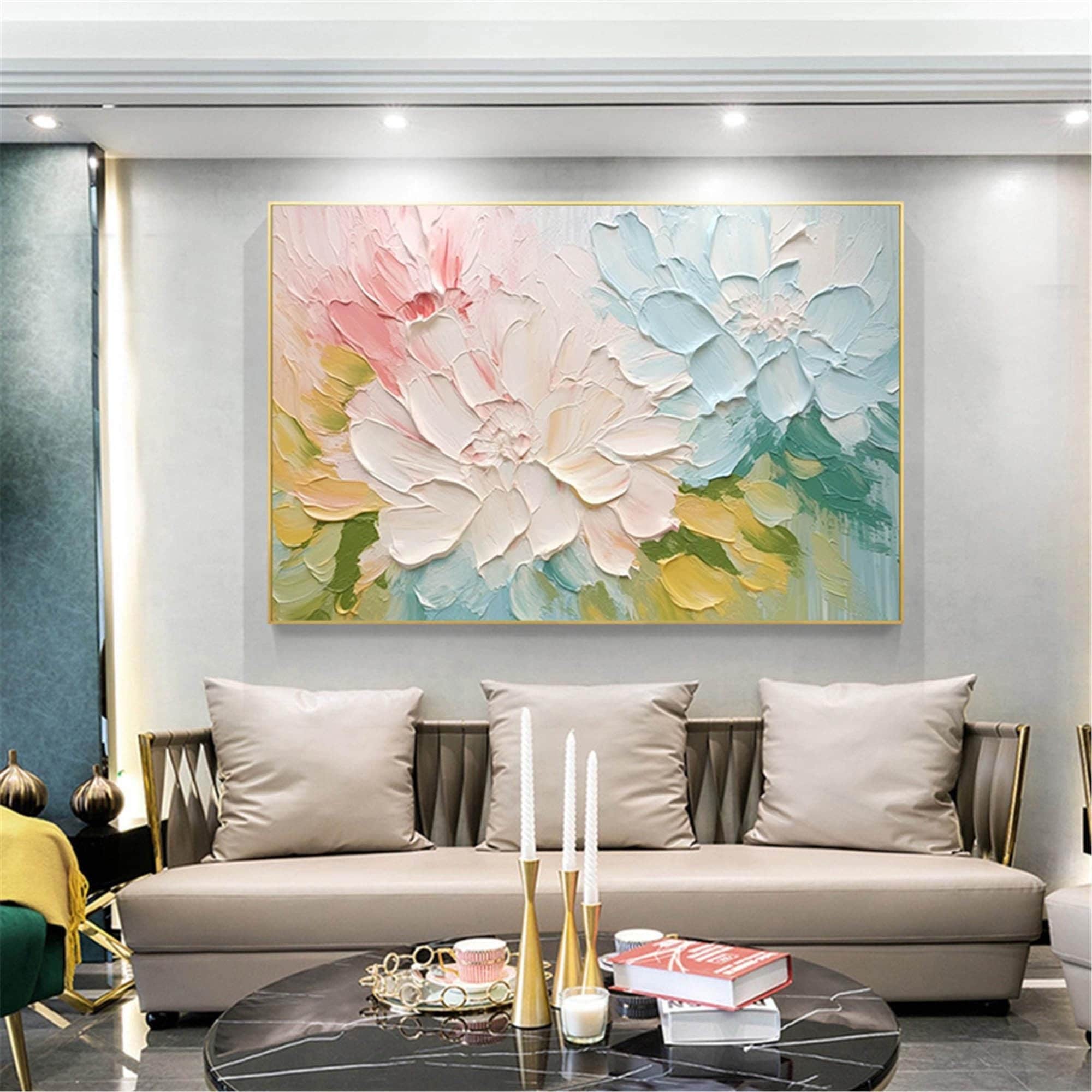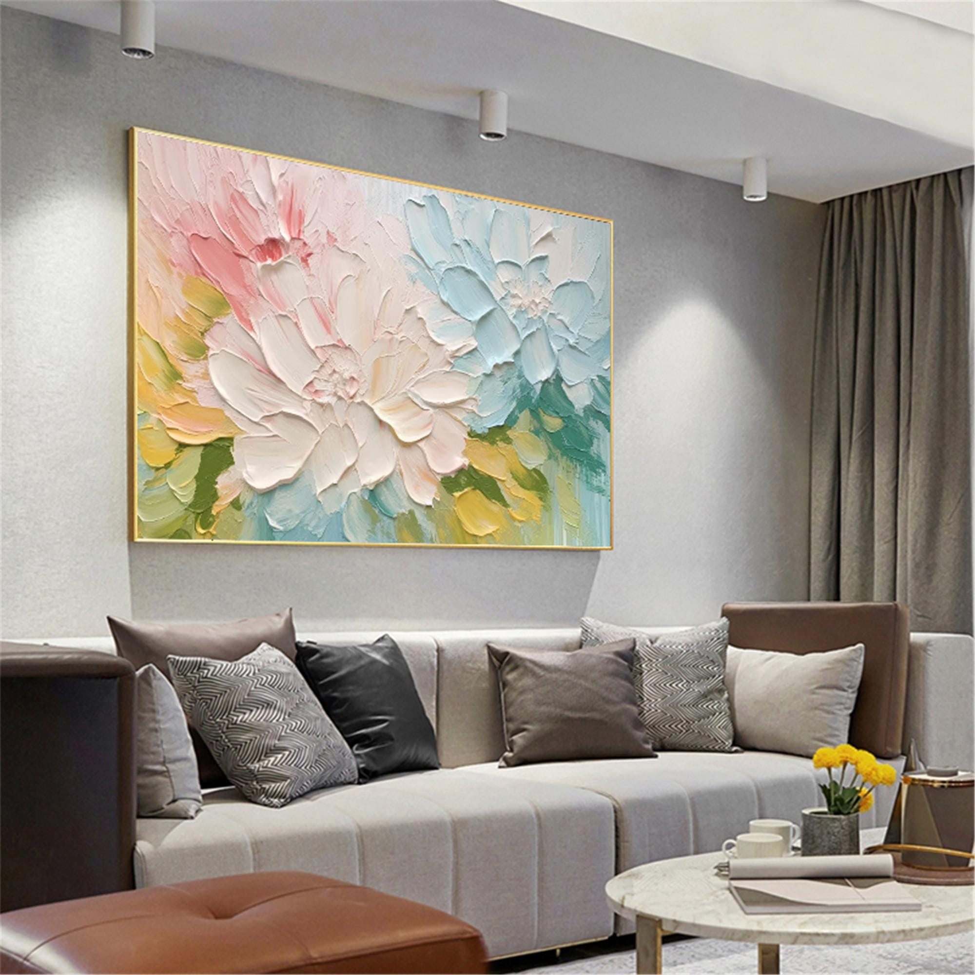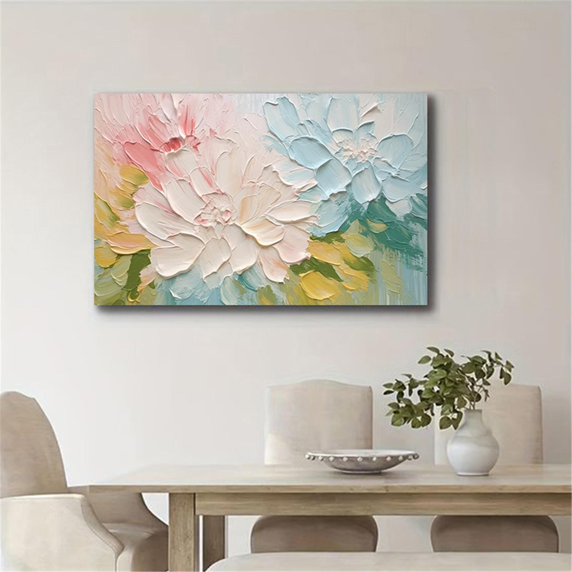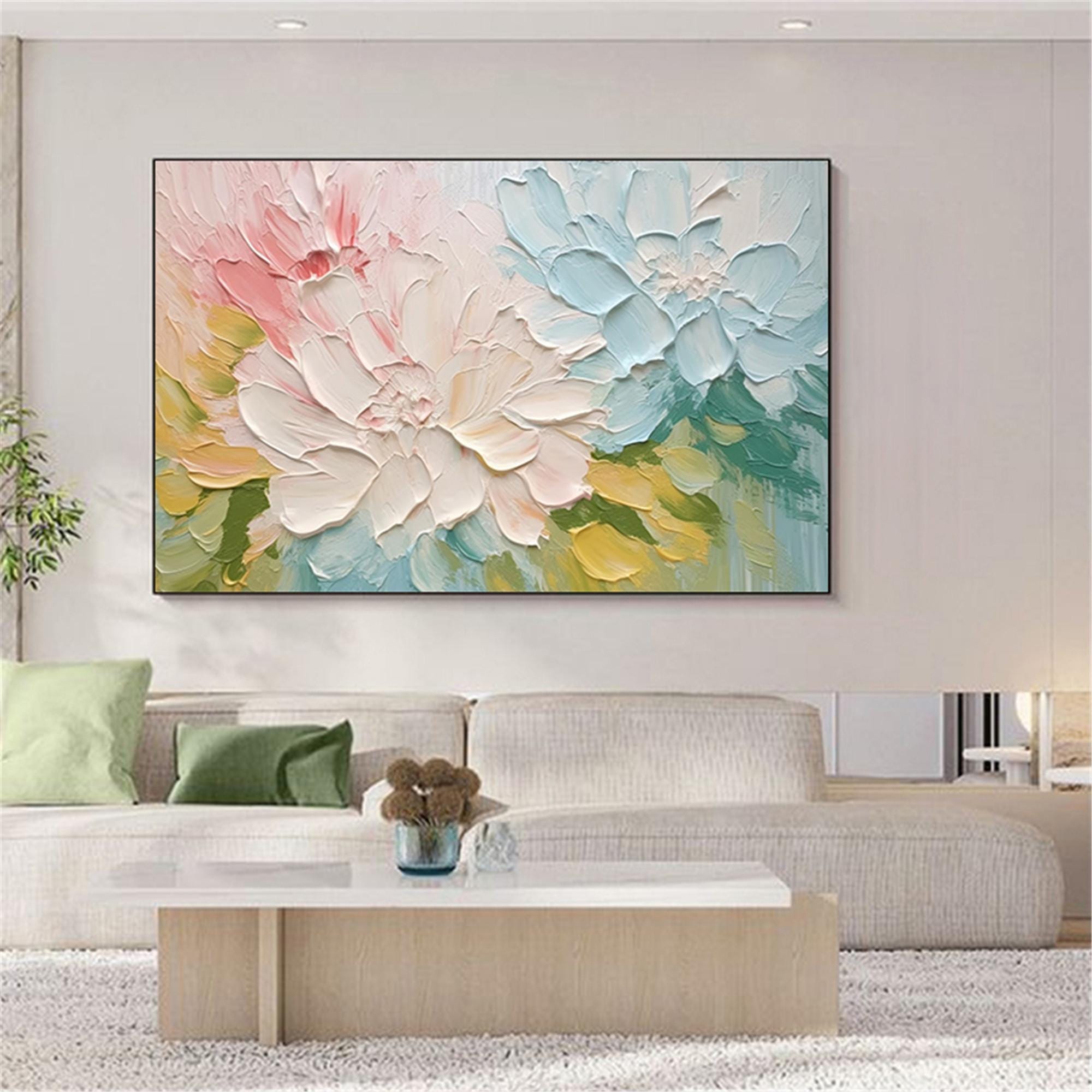 Textured Floral Acrylic Painting on Canvas, Pink Flower Wall Art