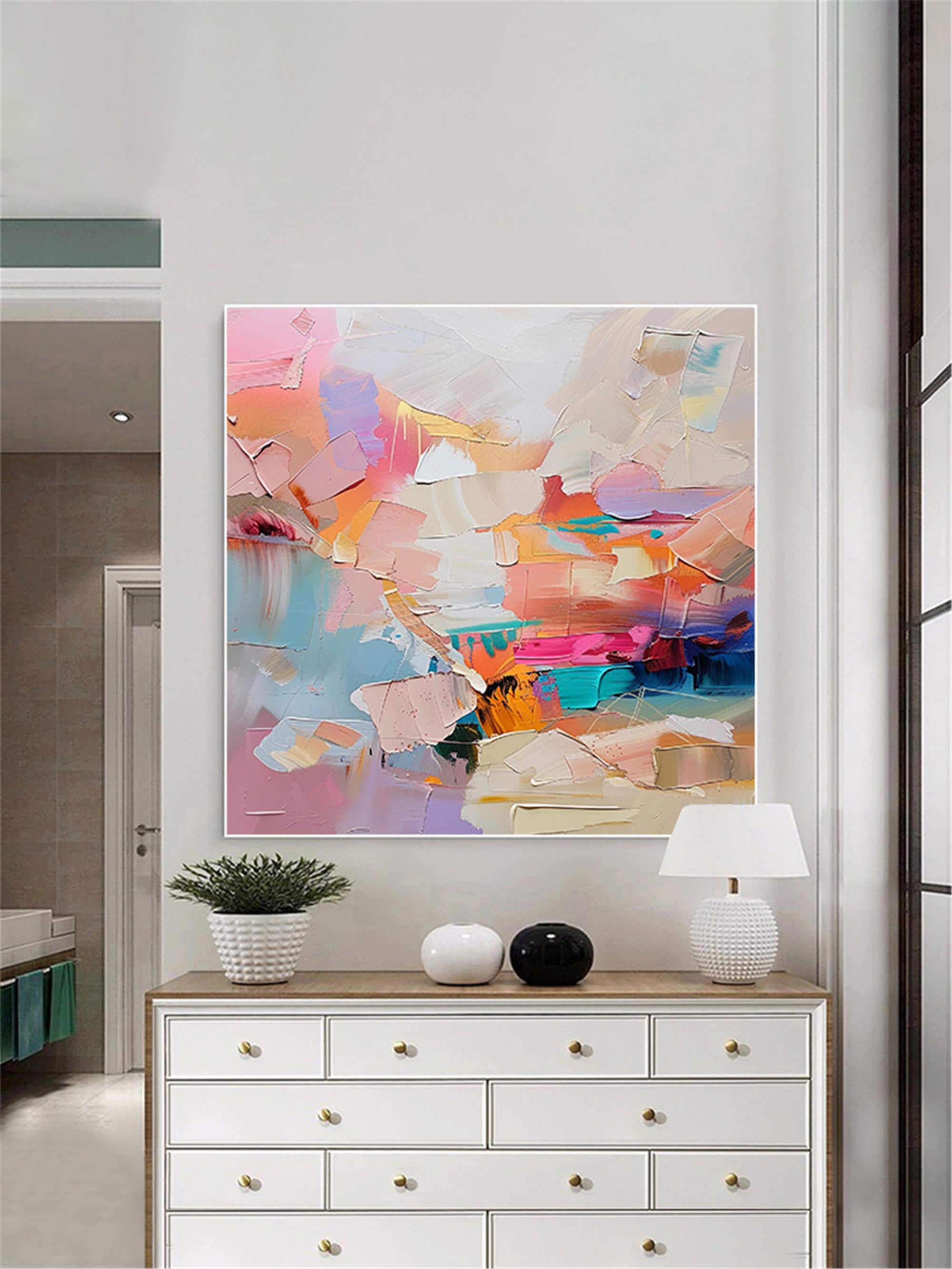 3d textured acrylic Painting Colorful Palette Knife Wall Art Abstract Canvas painting Large artwork for Living room Wall decor home decor