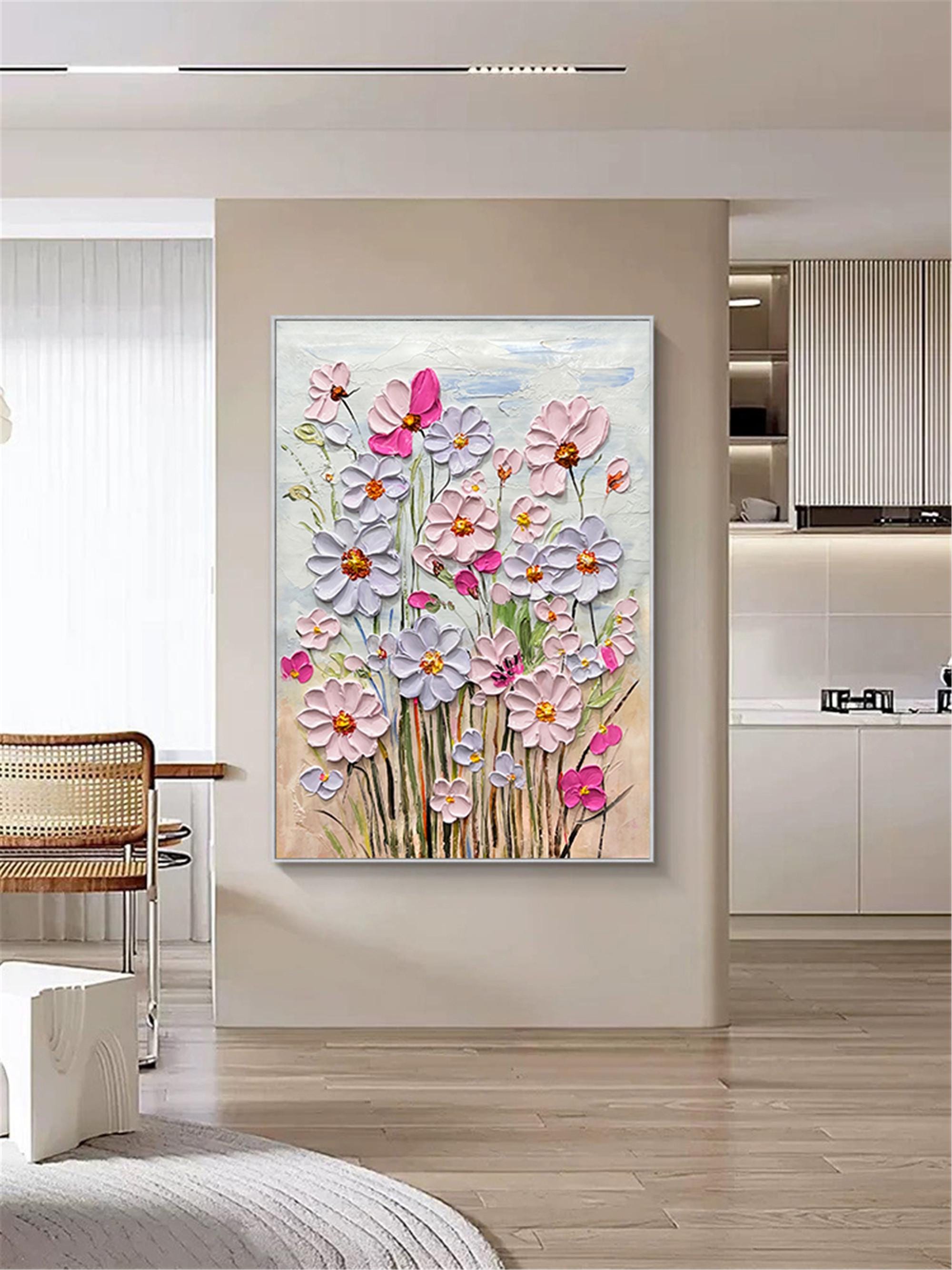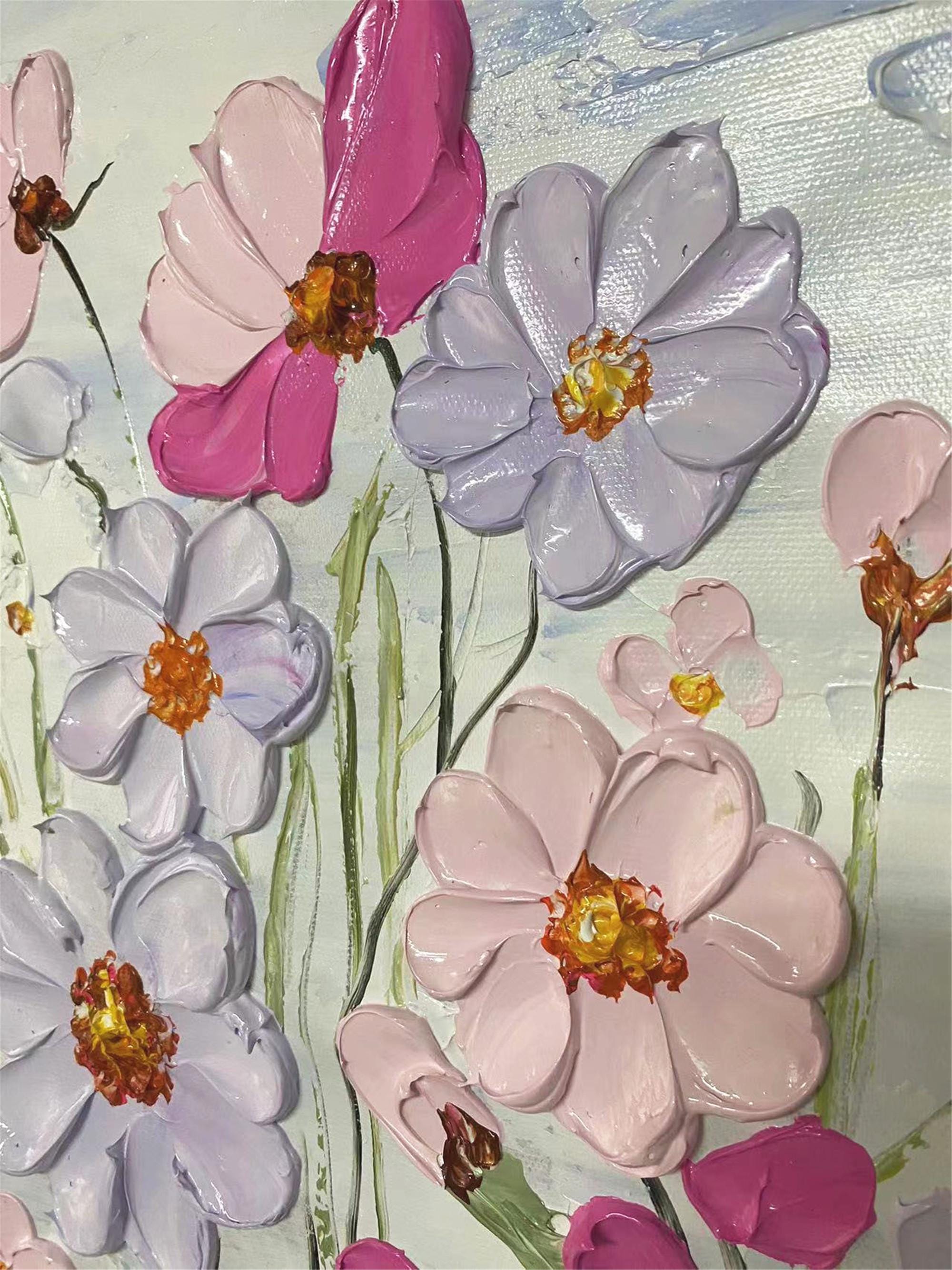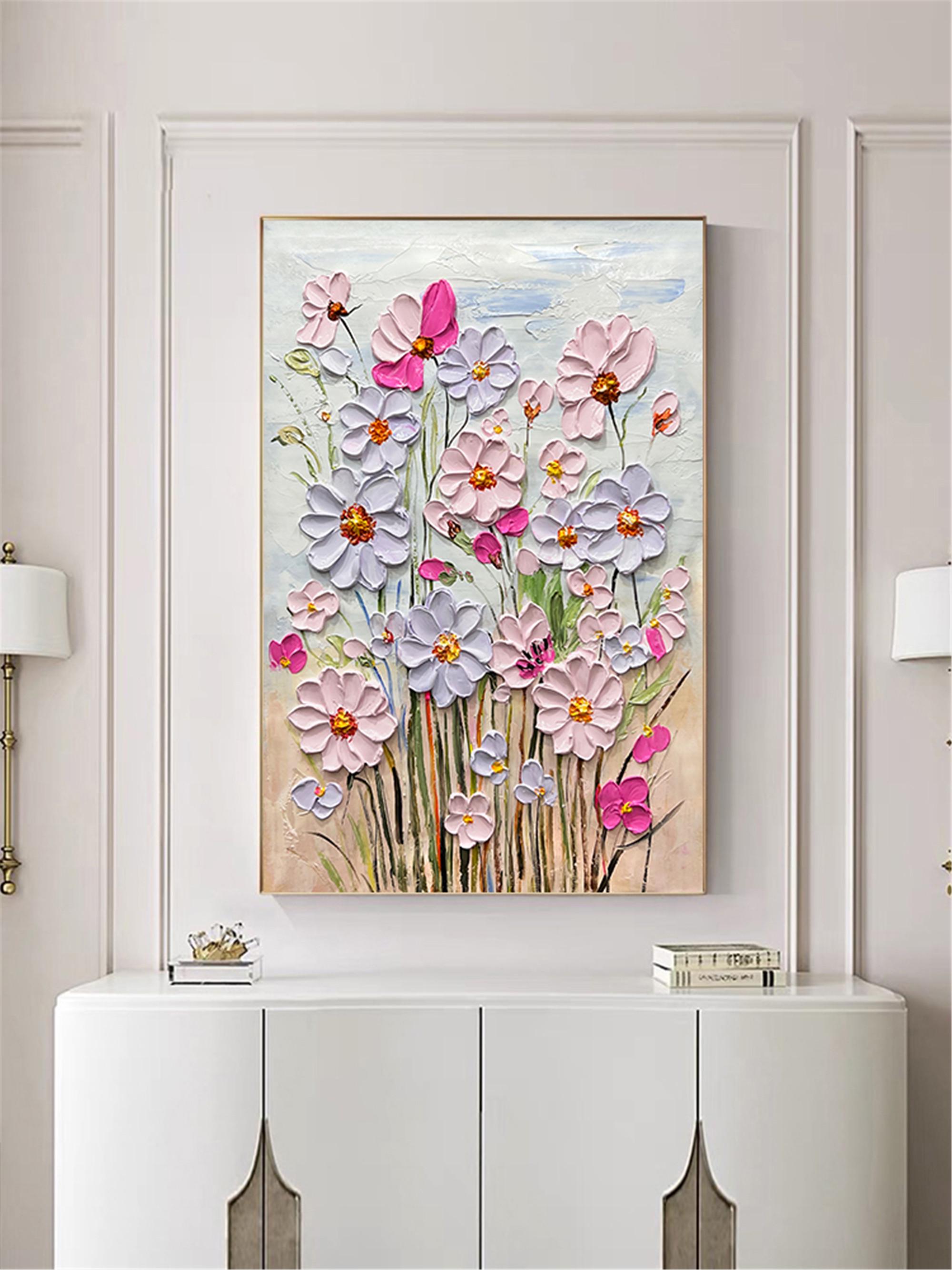 Original Pink purple Blooming 3DPainting On Canvas Abstract Textured Flower Wall Art Living Room Natural Scenery Fancy Art personalized gift