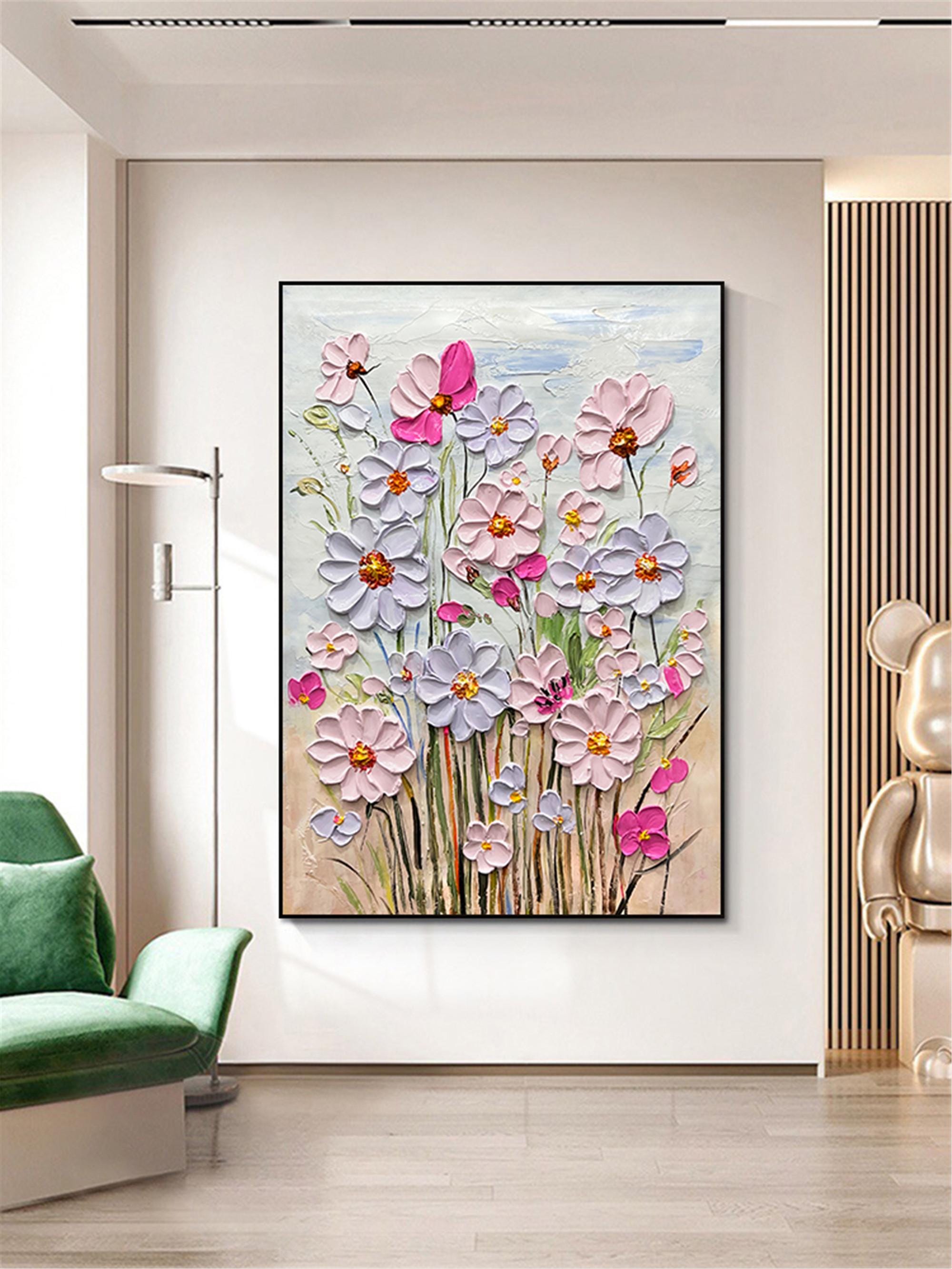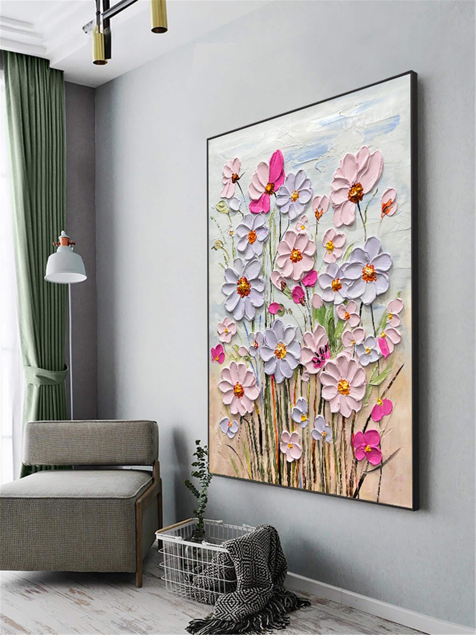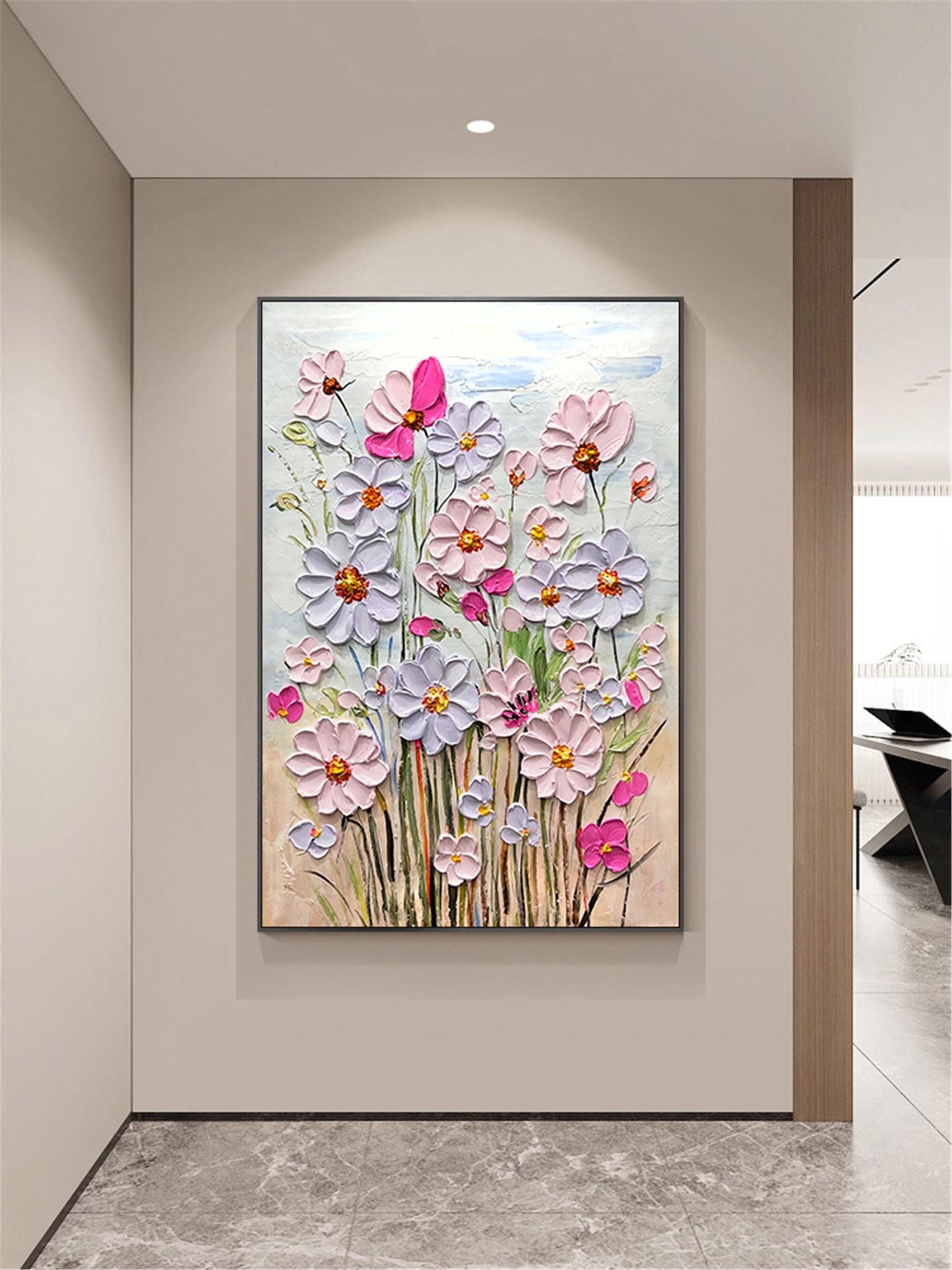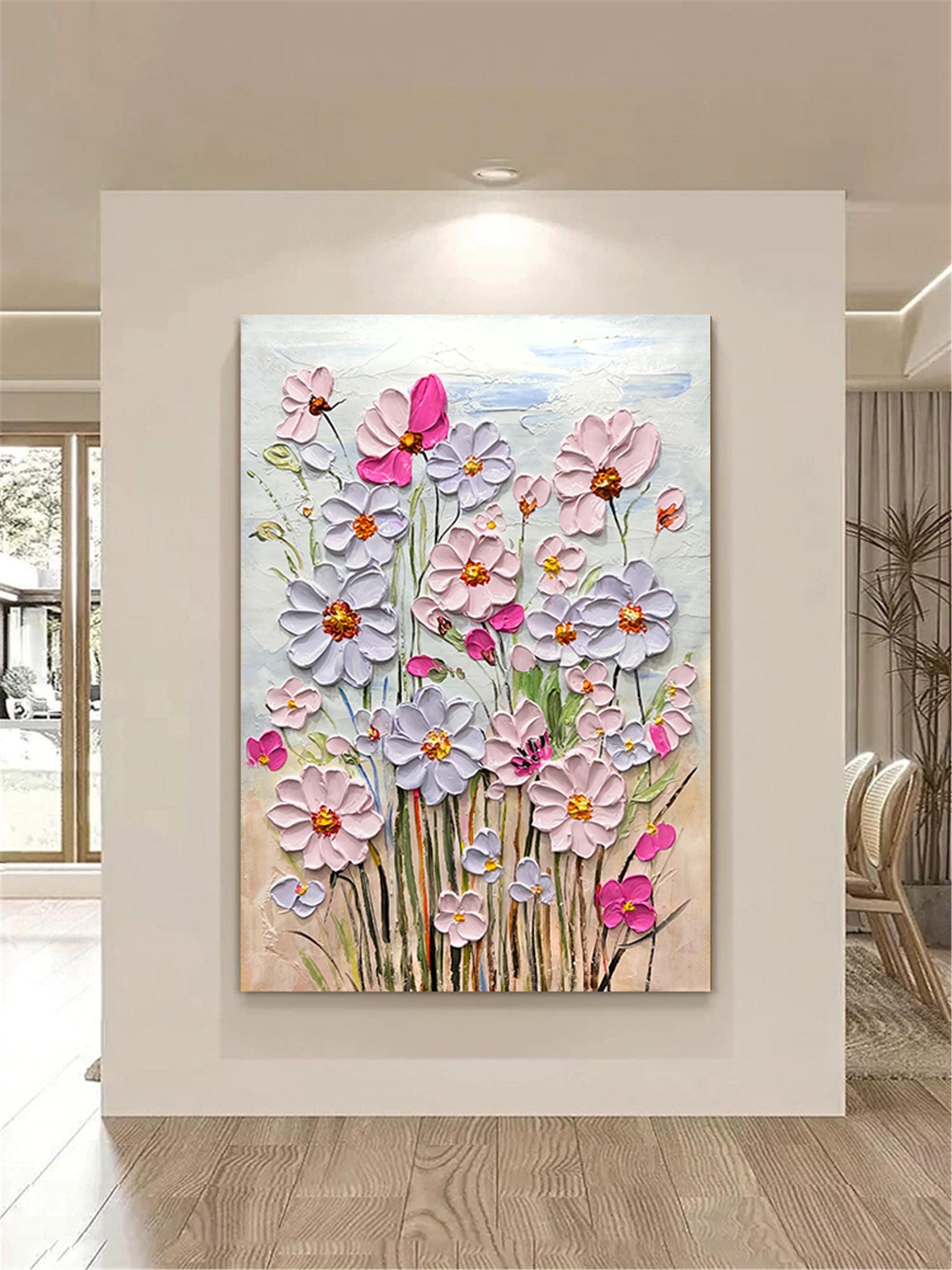 Original Pink purple Blooming 3DPainting On Canvas Abstract Textured Flower Wall Art Living Room Natural Scenery Fancy Art personalized gift