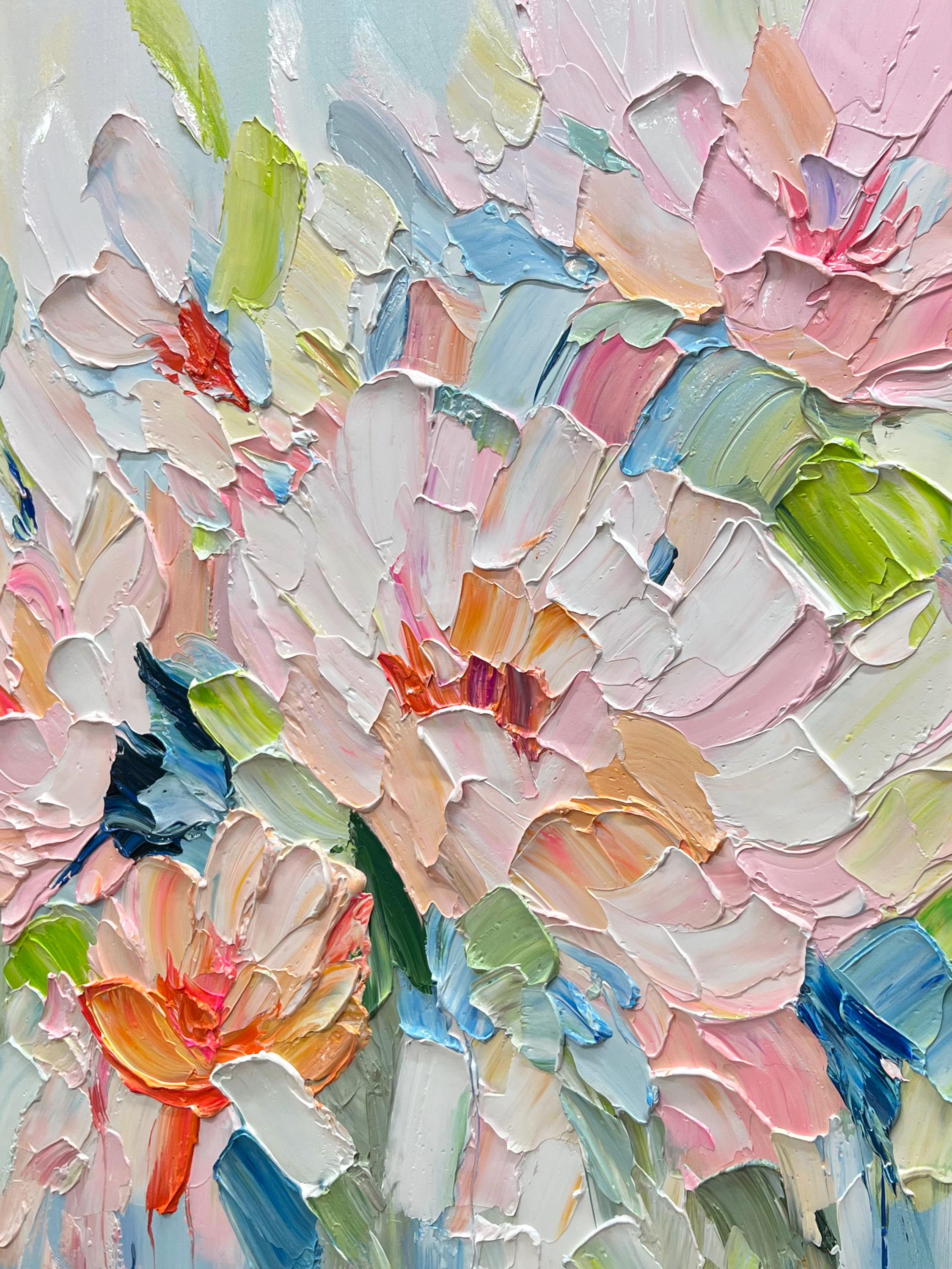 3D Textured Wall Art Original Flower Painting on Canvas Neutral Tone Custom Wall painting Modern Floral Living Room home Wall Art Fancy Art