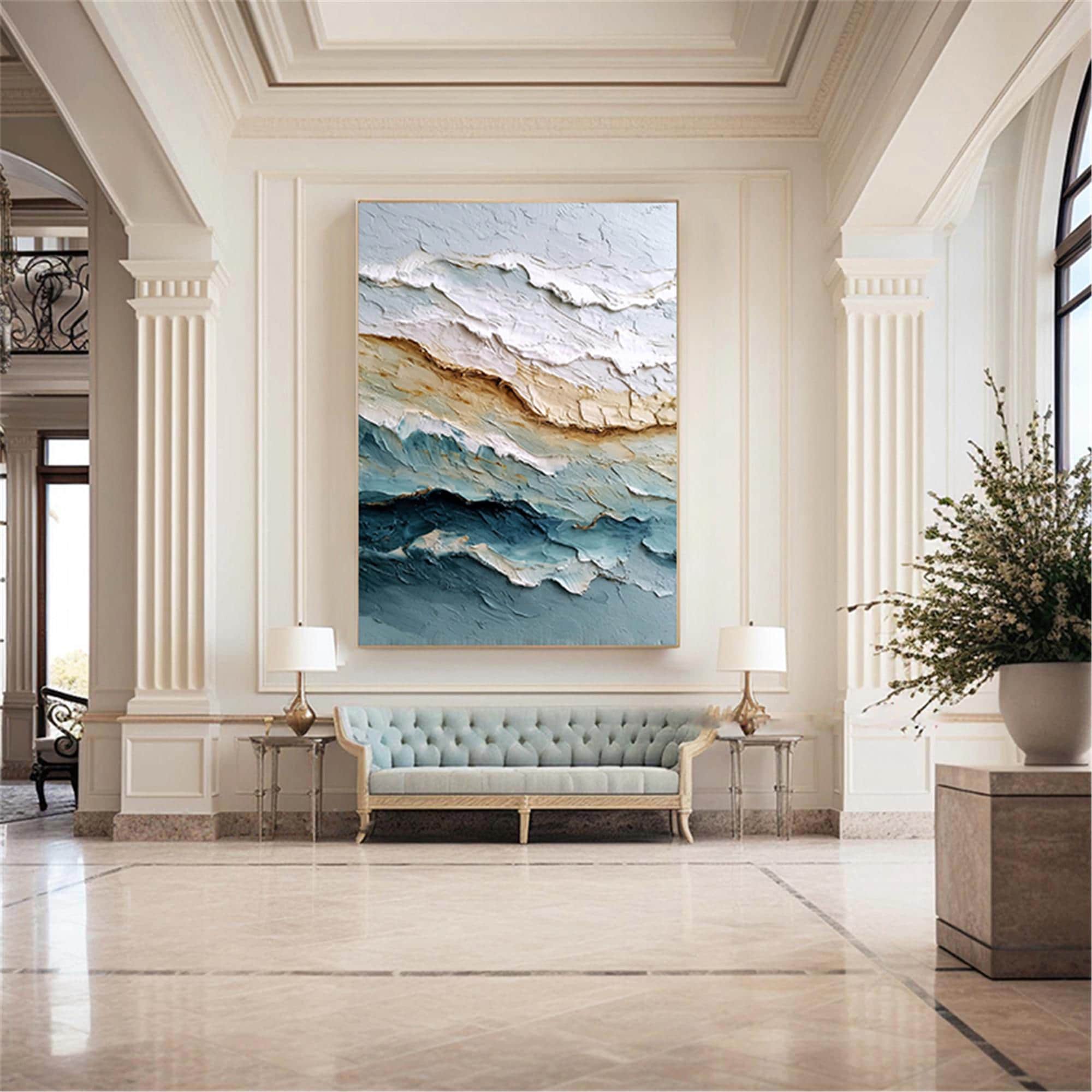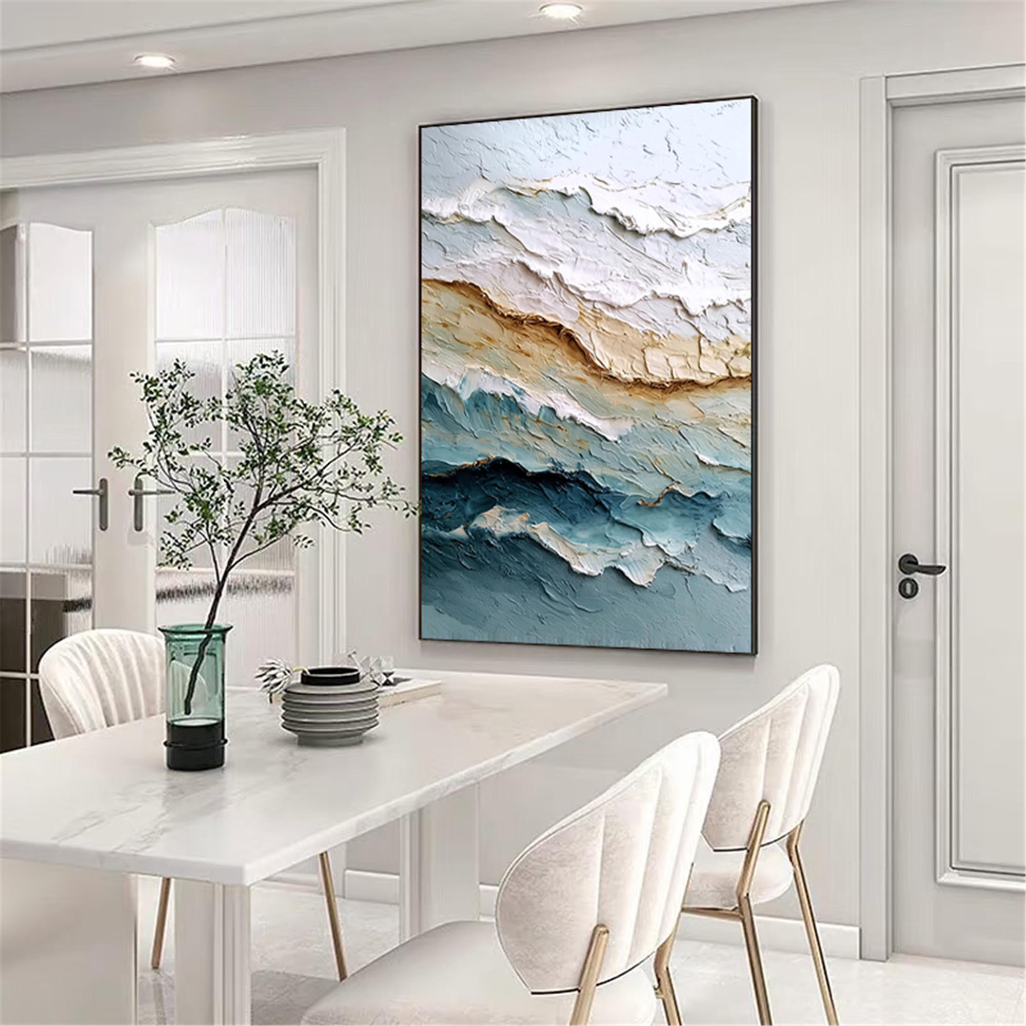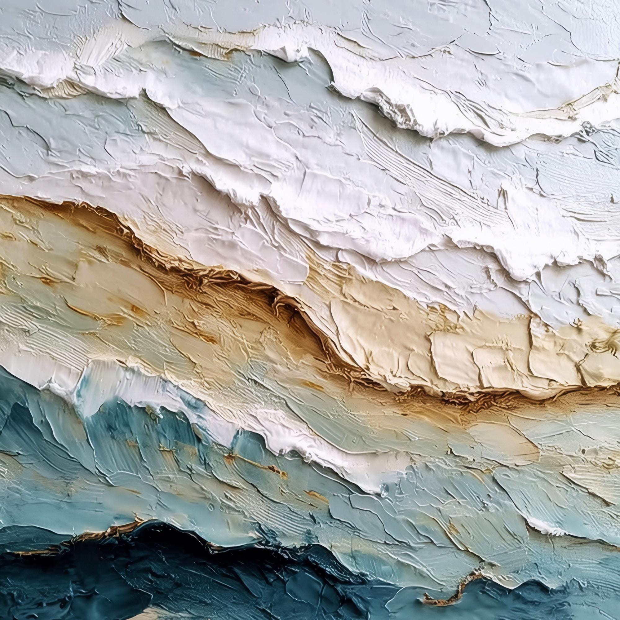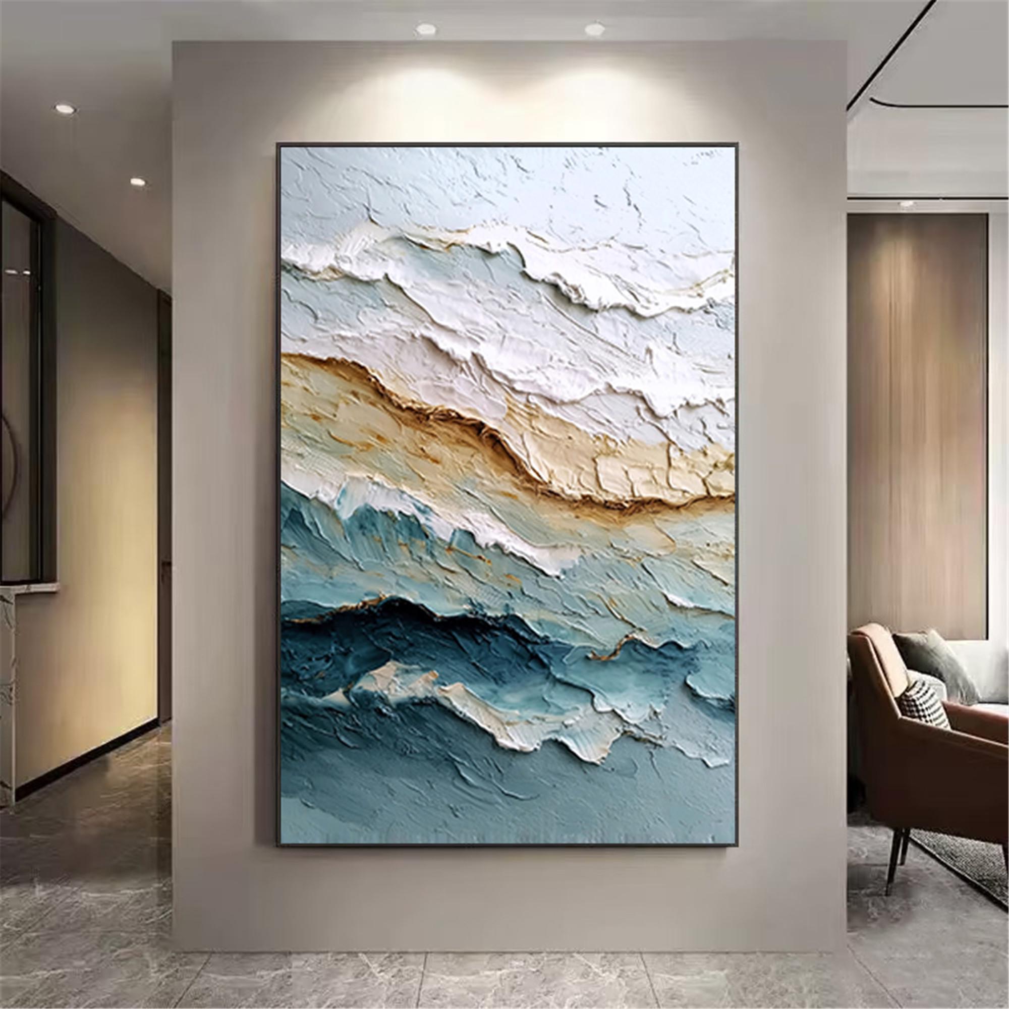 3d textured Ocean Wall Art Original abstract canvas painting Beach Painting Earth Tone Wave art for wall Decor Living Room home decor office