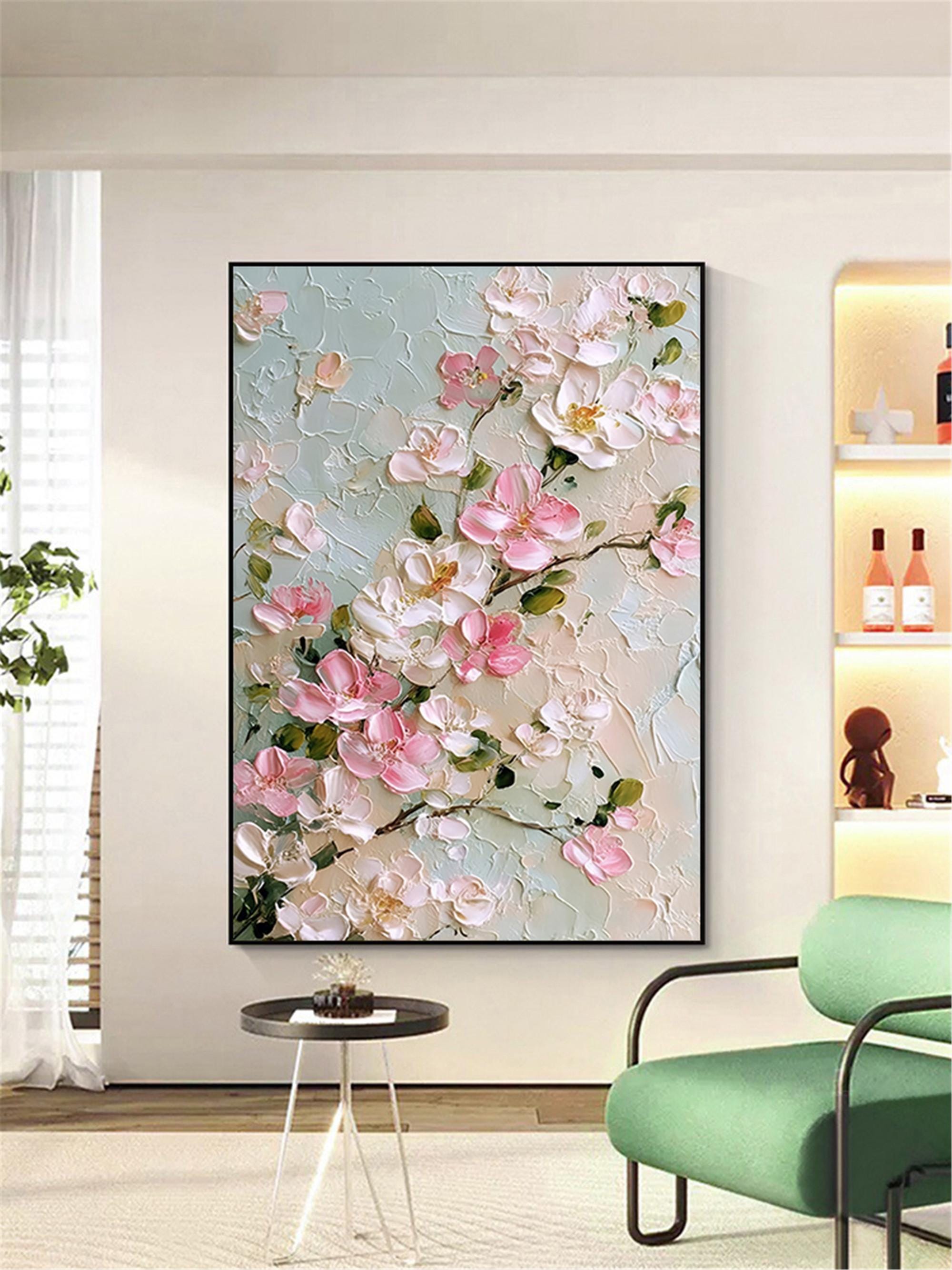 Abstract Floral Oil Painting,Cherry Blossom Painting on Canvas,Botanical Artwork for Living Room
