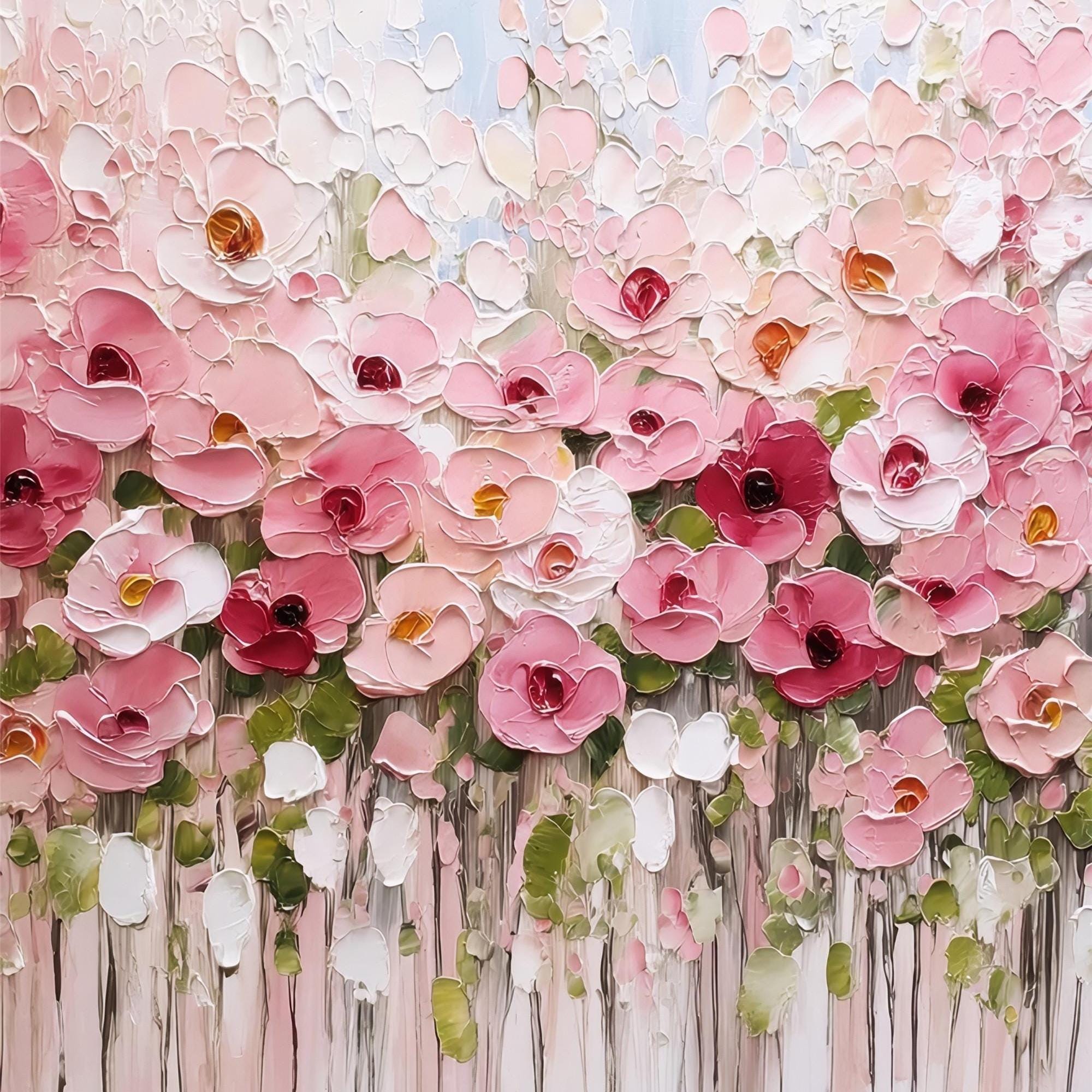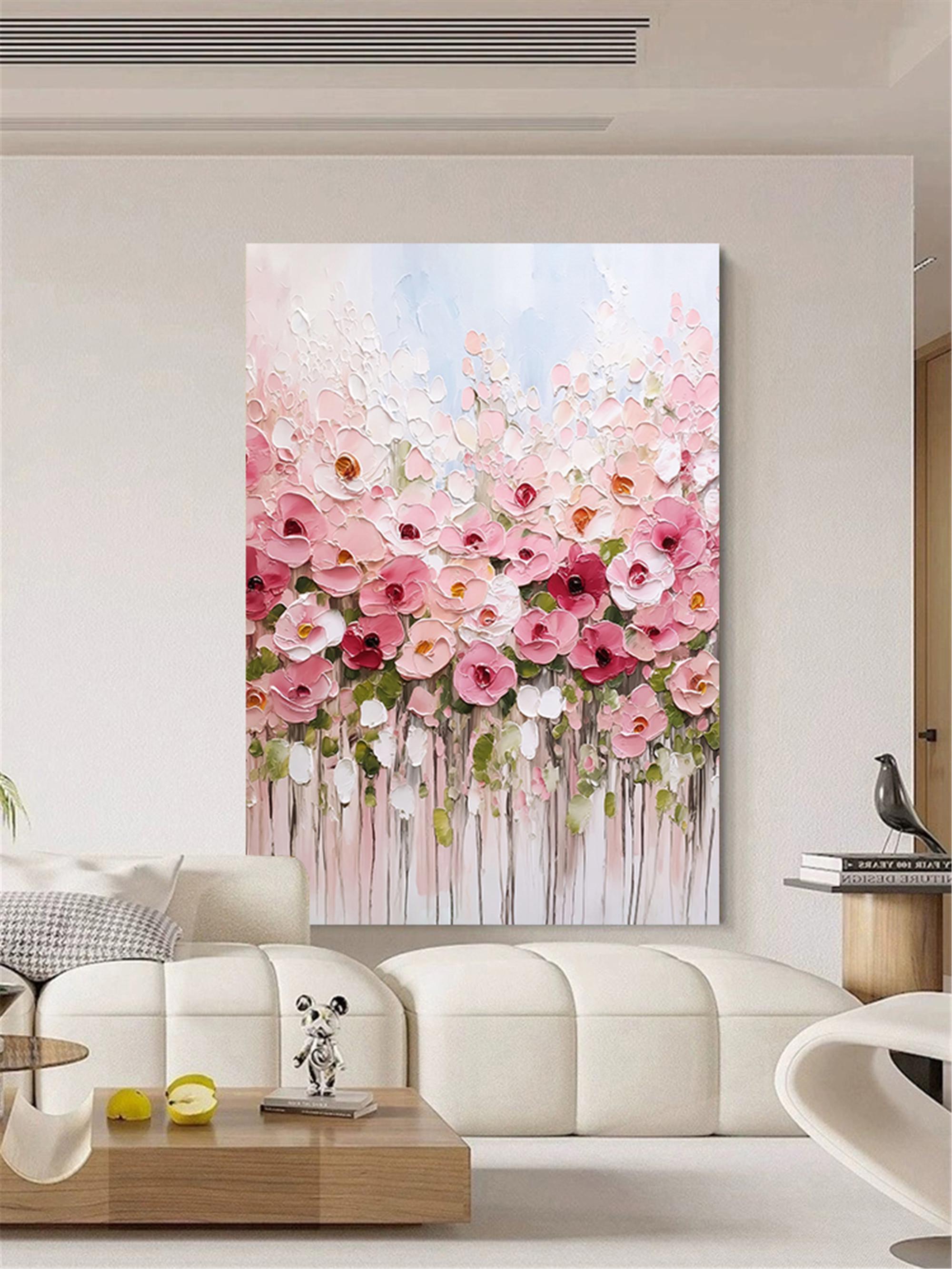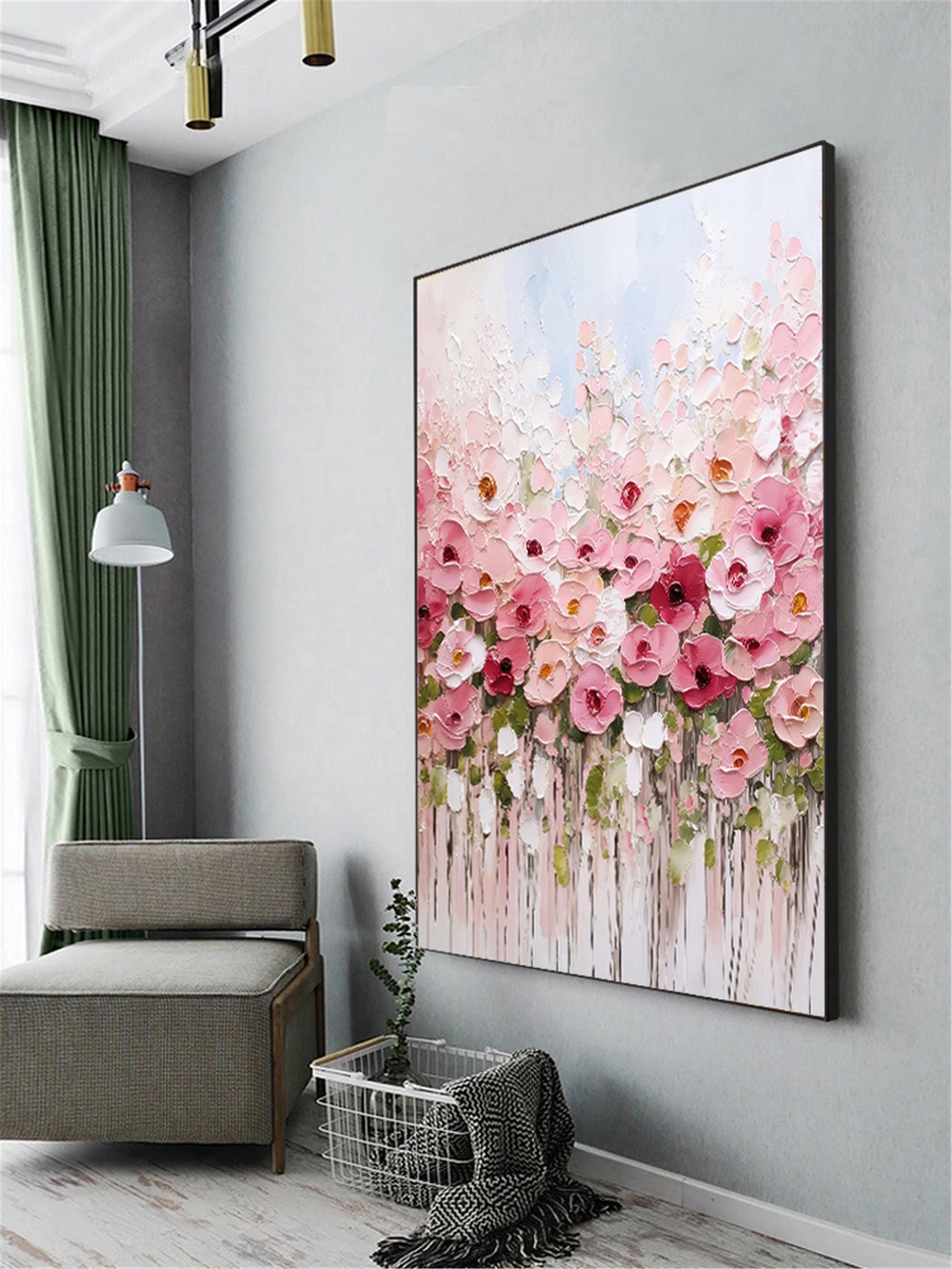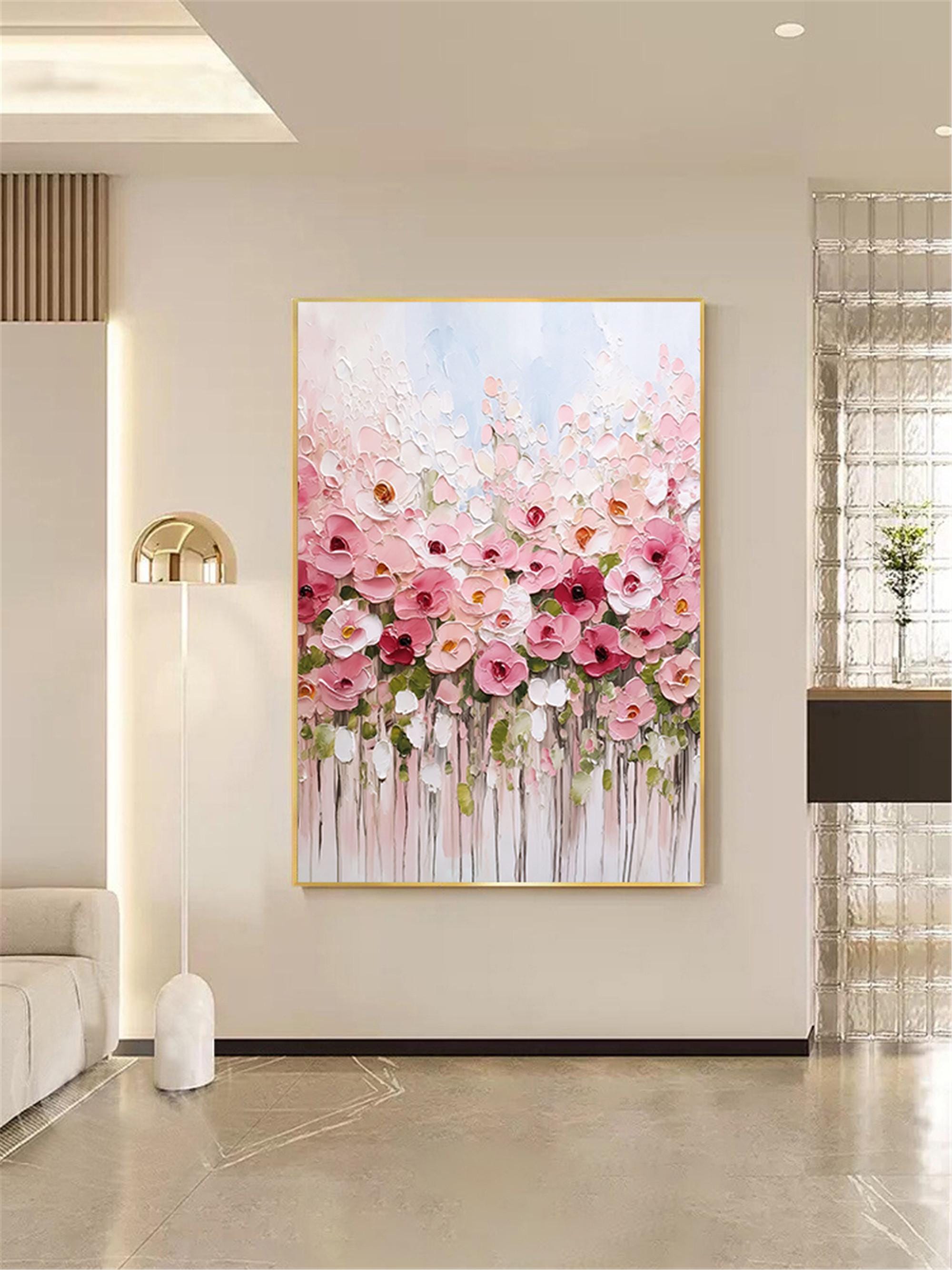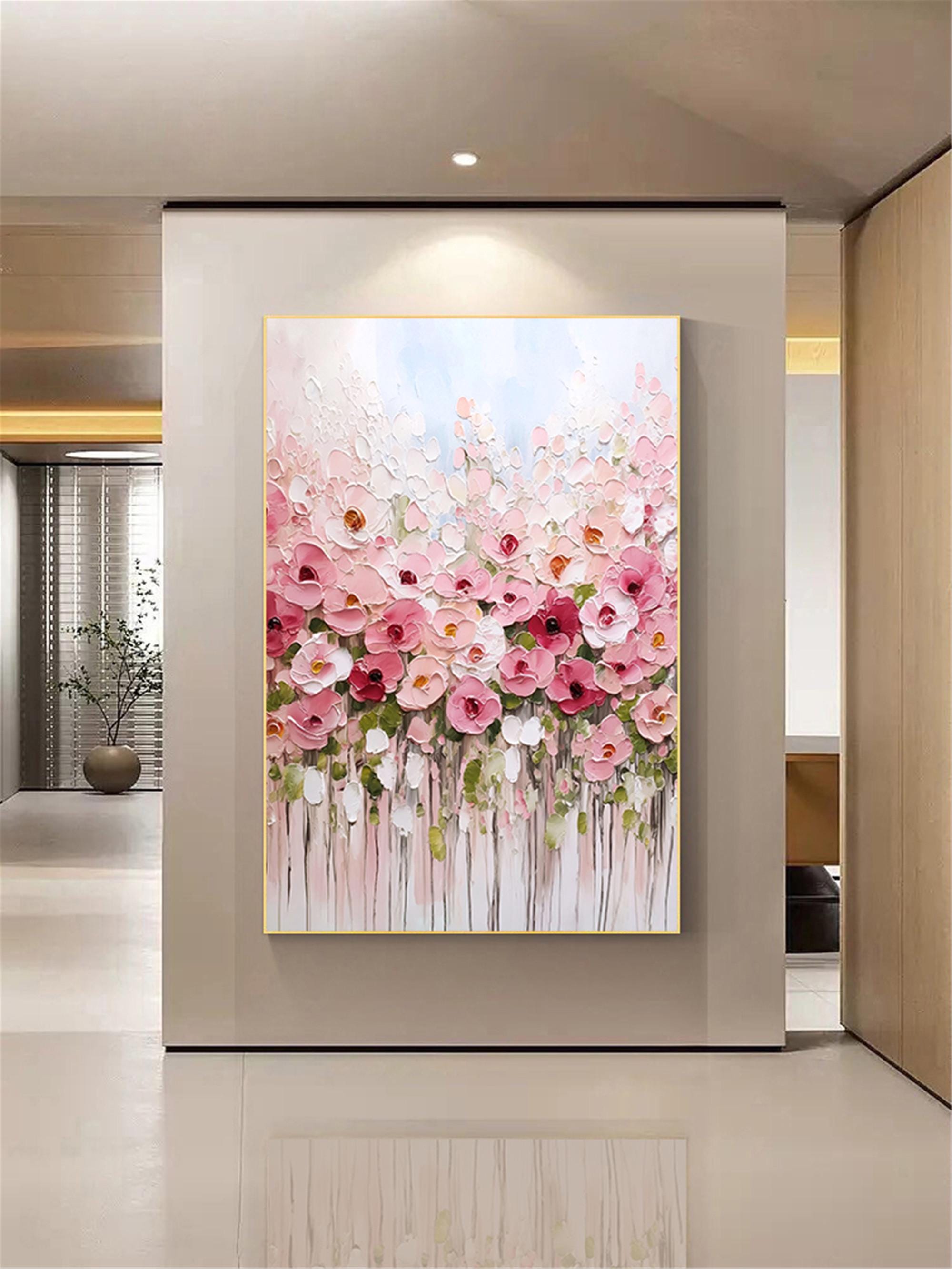 3d Textured Floral Canvas Painting, acrylic Pink Flower wall Art home living room decor