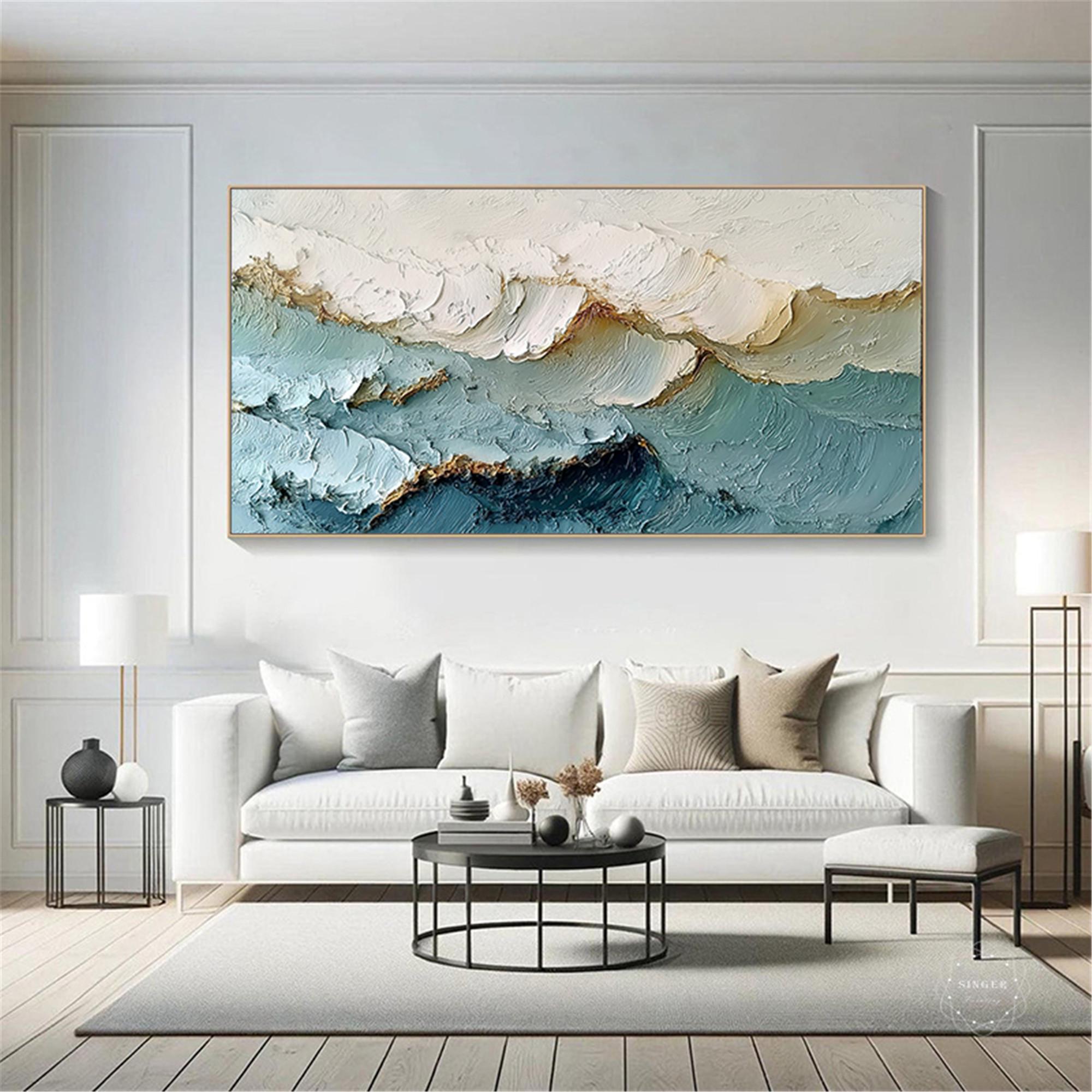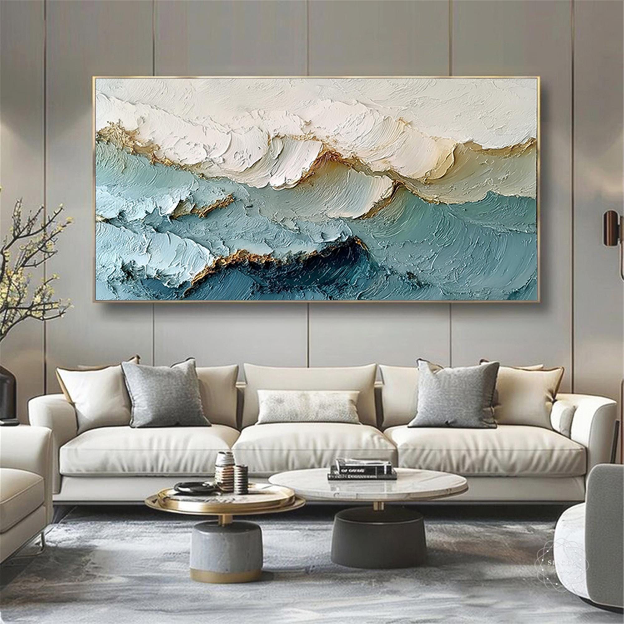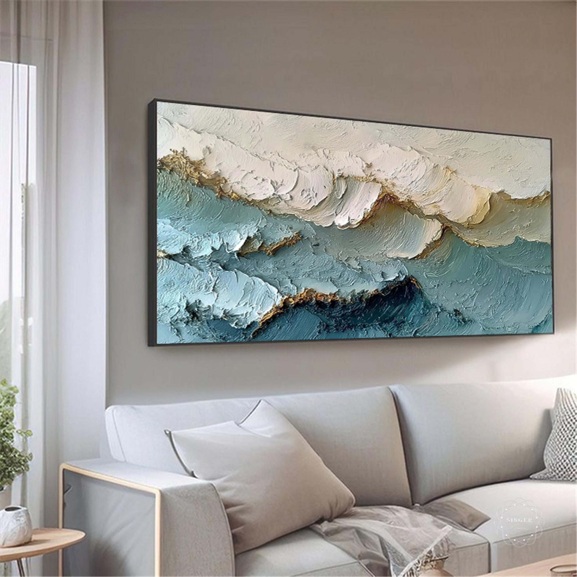 3DTextured abstract painting on canvas Large Ocean Wall Art Beach Painting Earth Tone Wave wall Decor Wabi-sabi Living Room wall painting