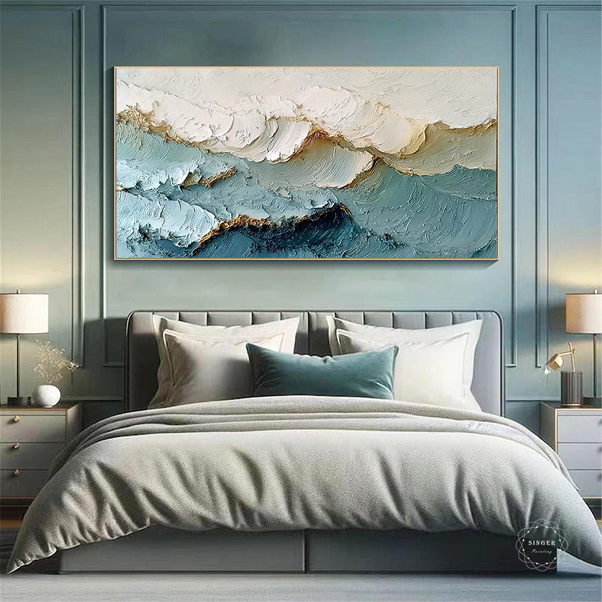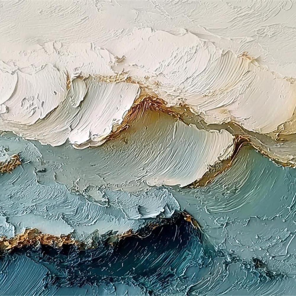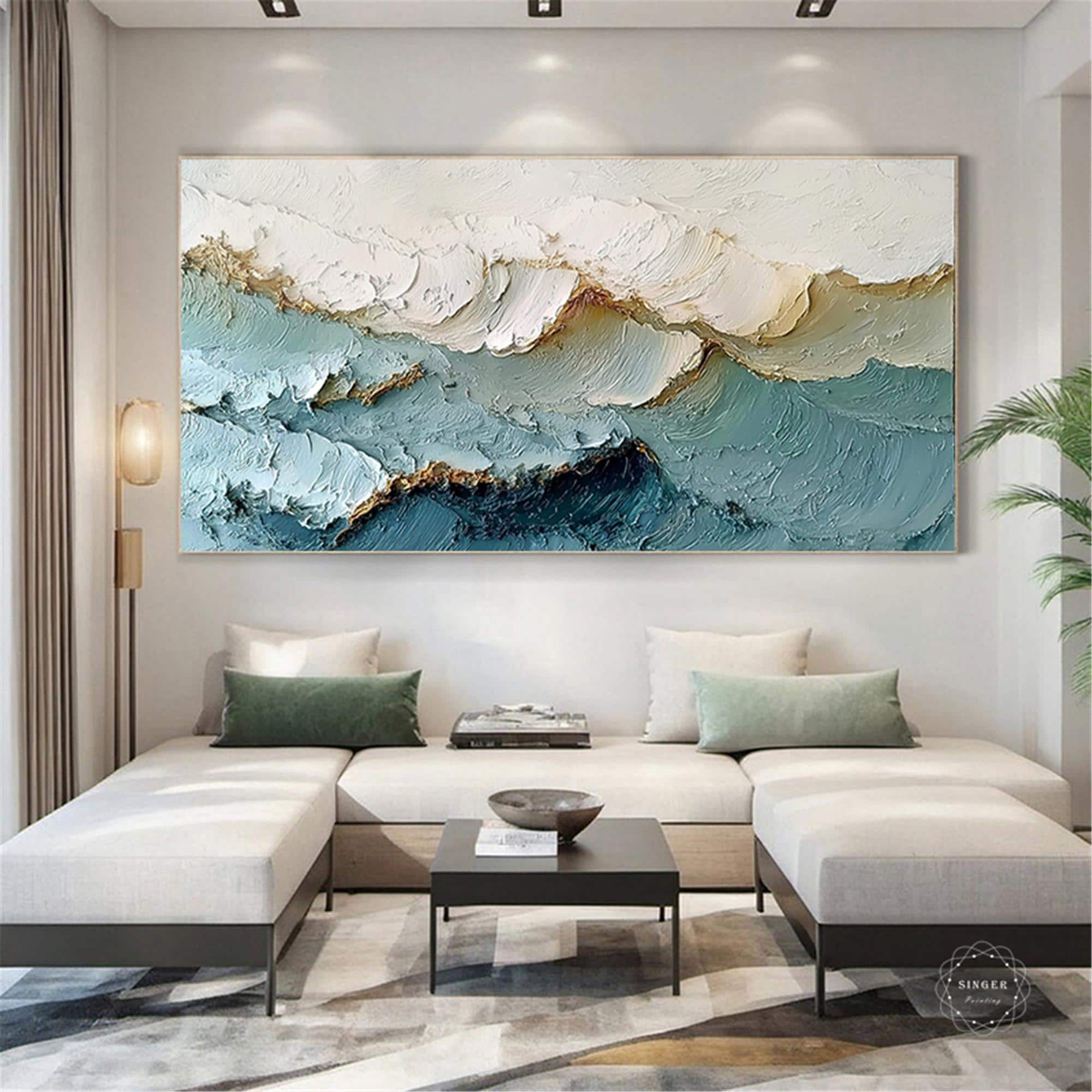 3DTextured abstract painting on canvas Large Ocean Wall Art Beach Painting Earth Tone Wave wall Decor Wabi-sabi Living Room wall painting
