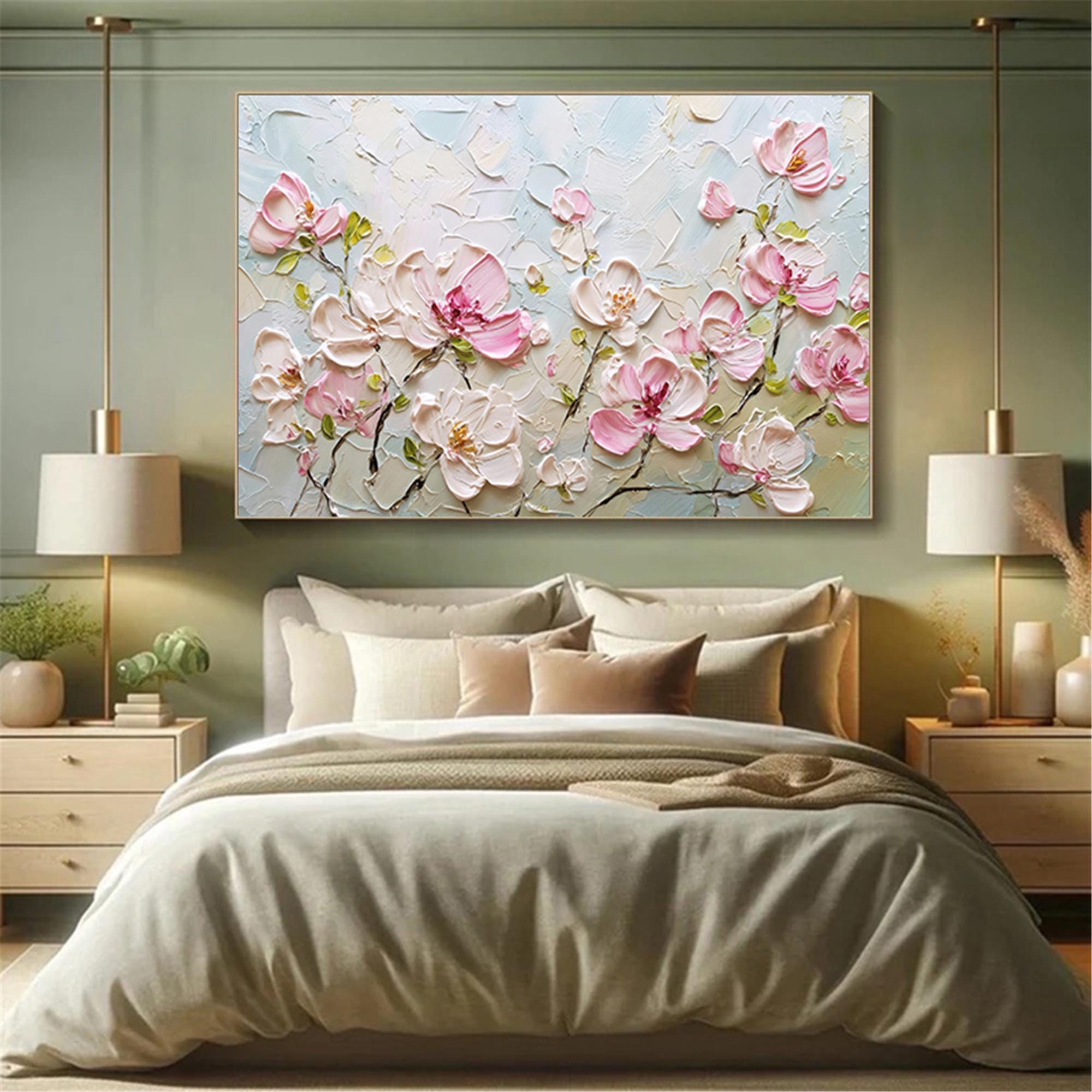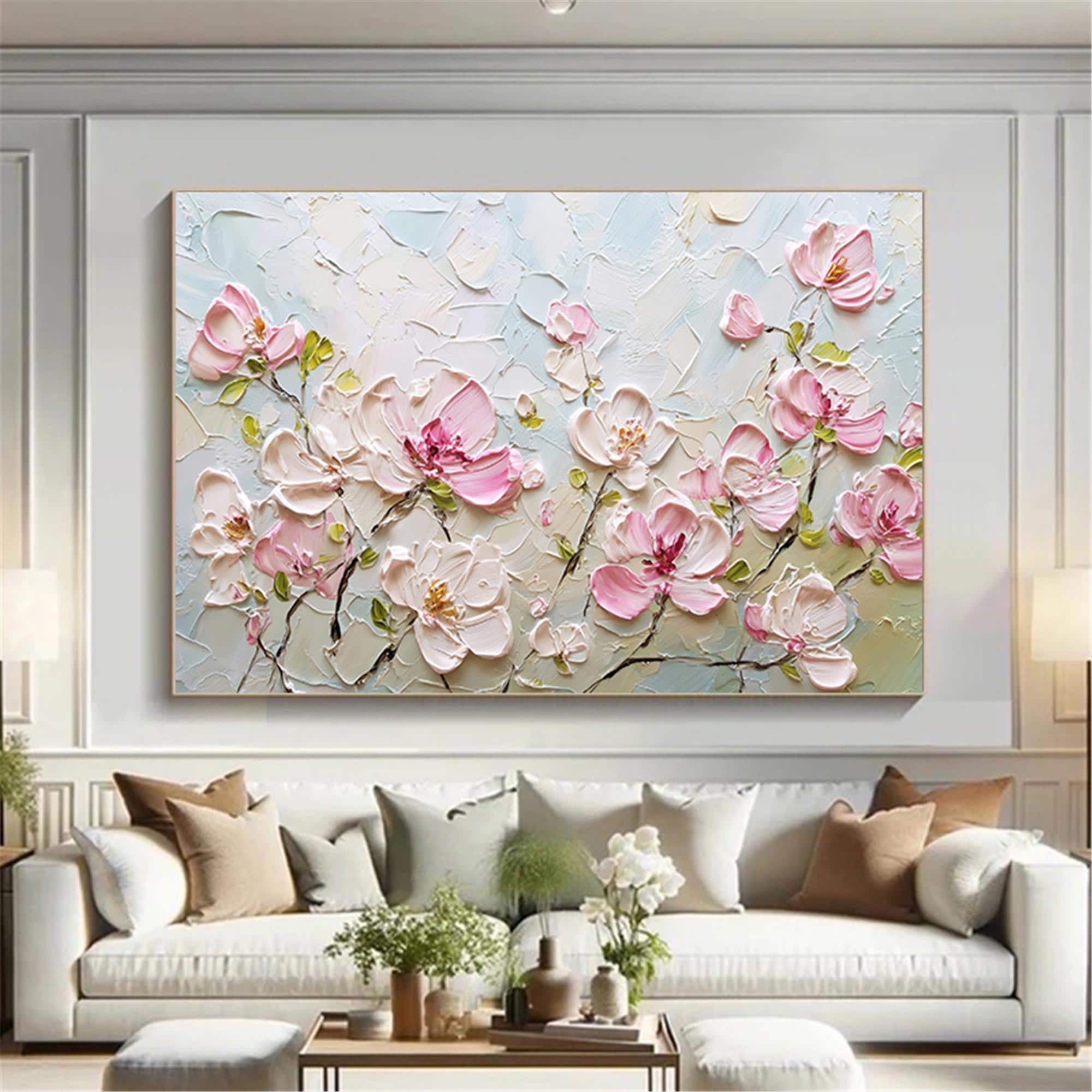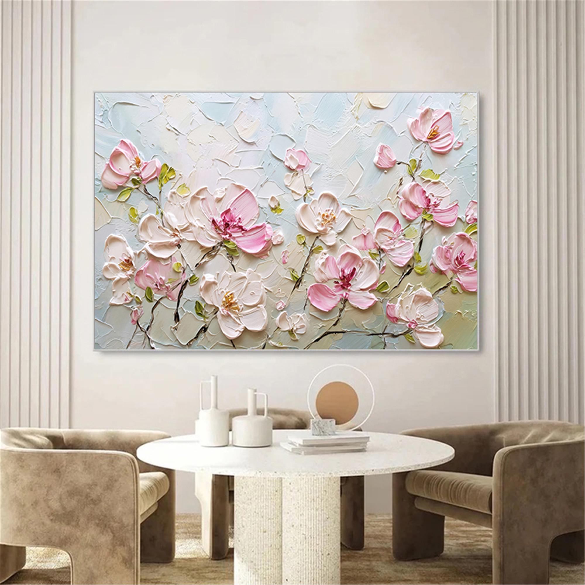 Original Canvas Painting 3DTextured Floral Wall Art,pink oriental cherry painting for Living Room home decor personalized gifts Fancy Art