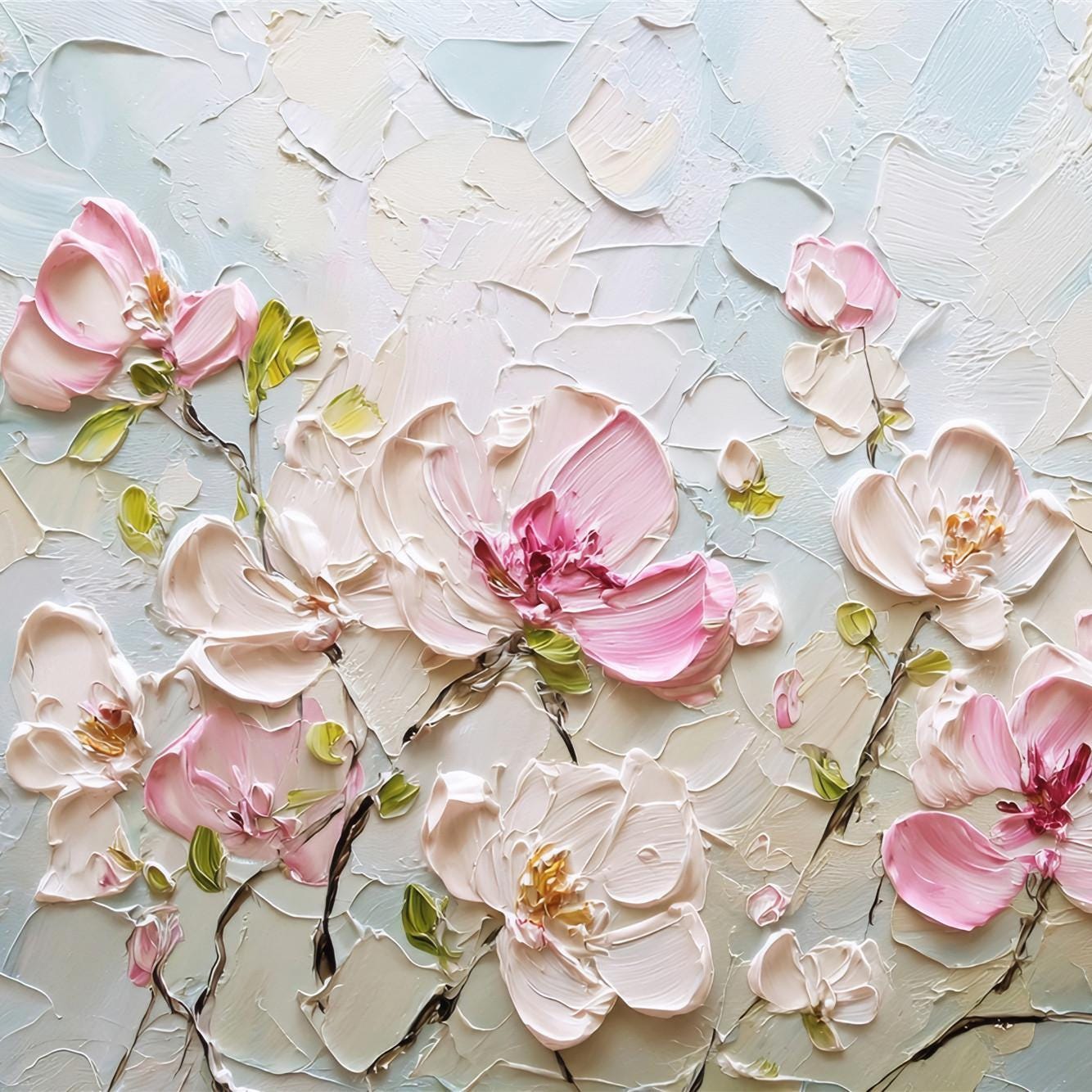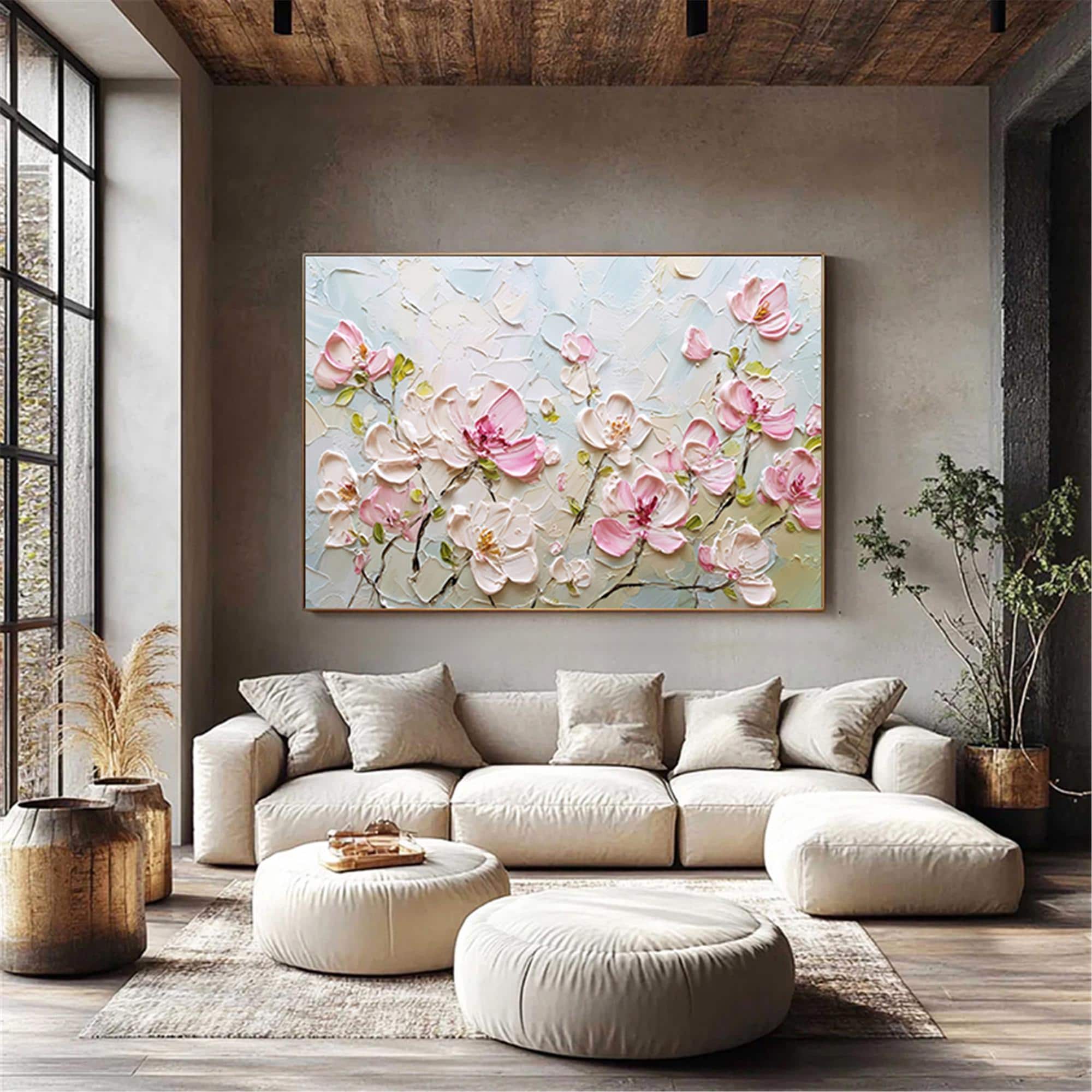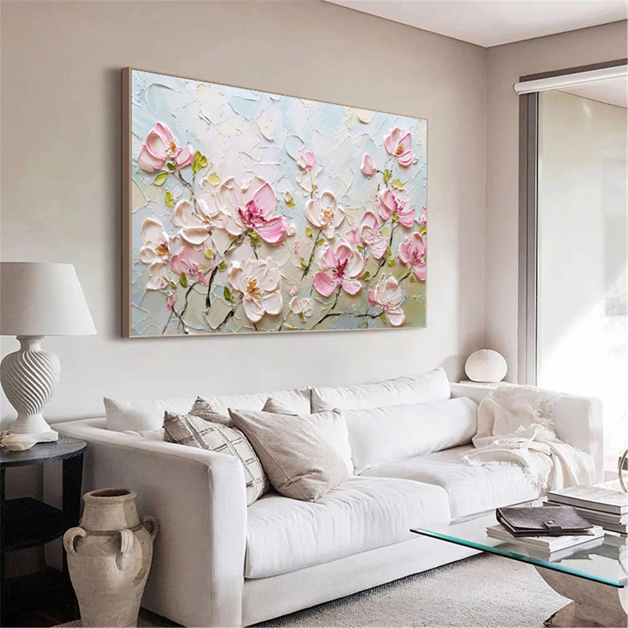 Original Canvas Painting 3DTextured Floral Wall Art,pink oriental cherry painting for Living Room home decor personalized gifts Fancy Art