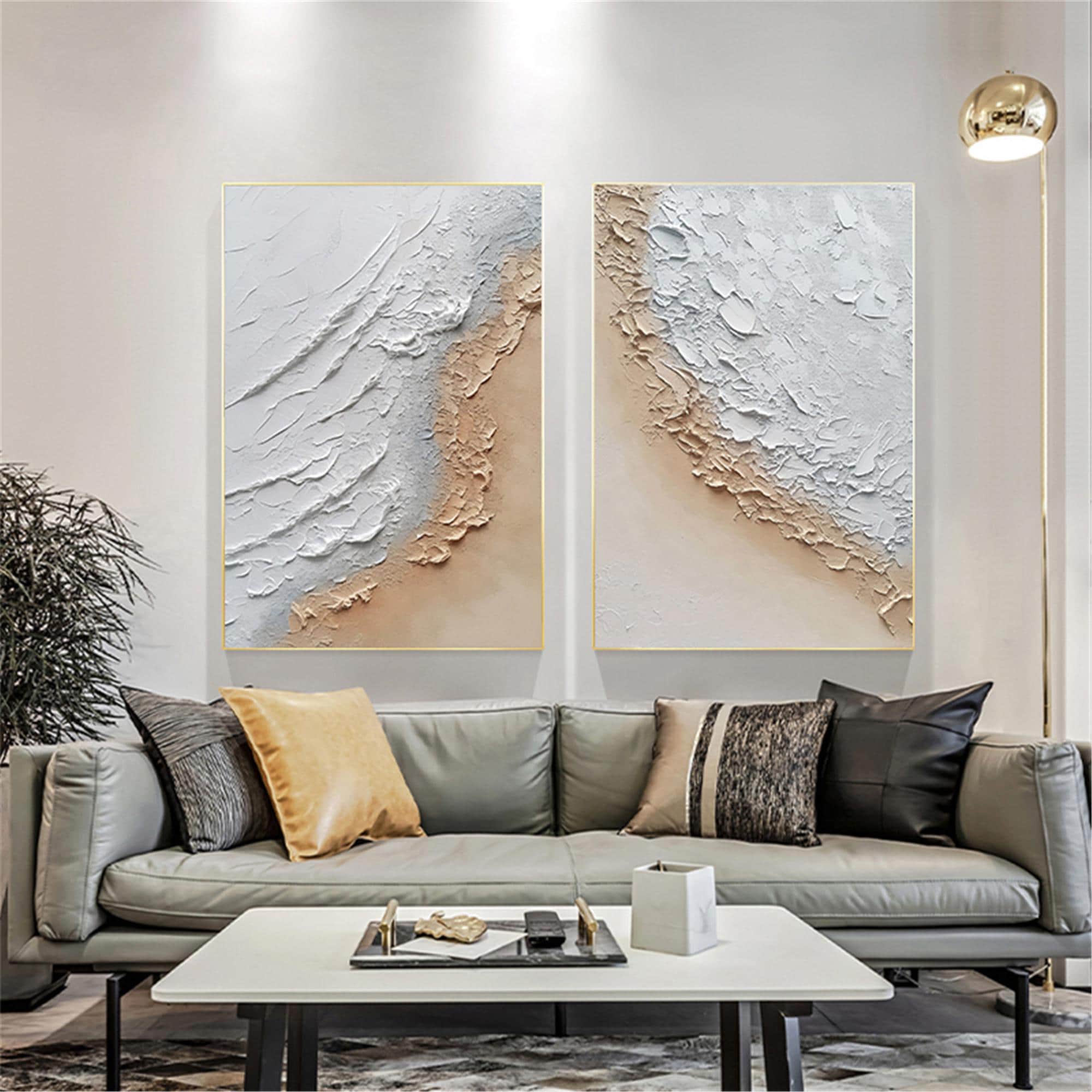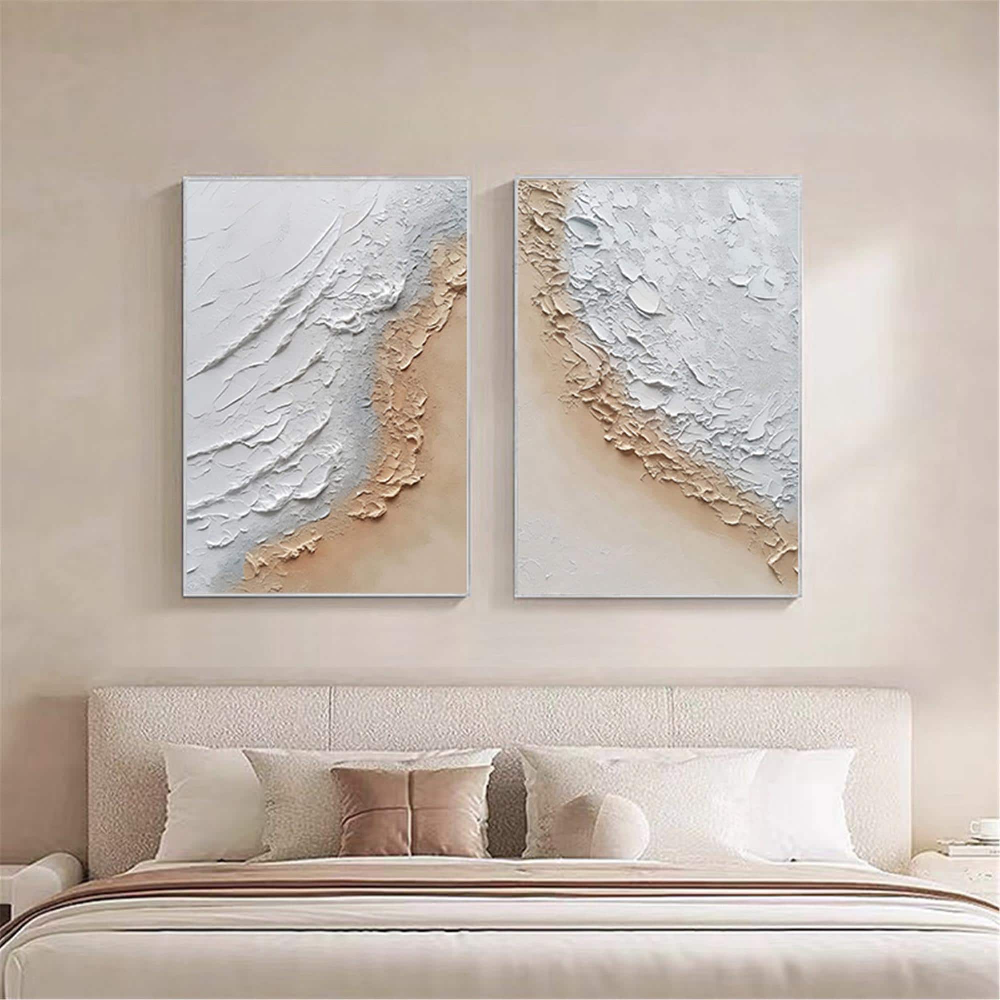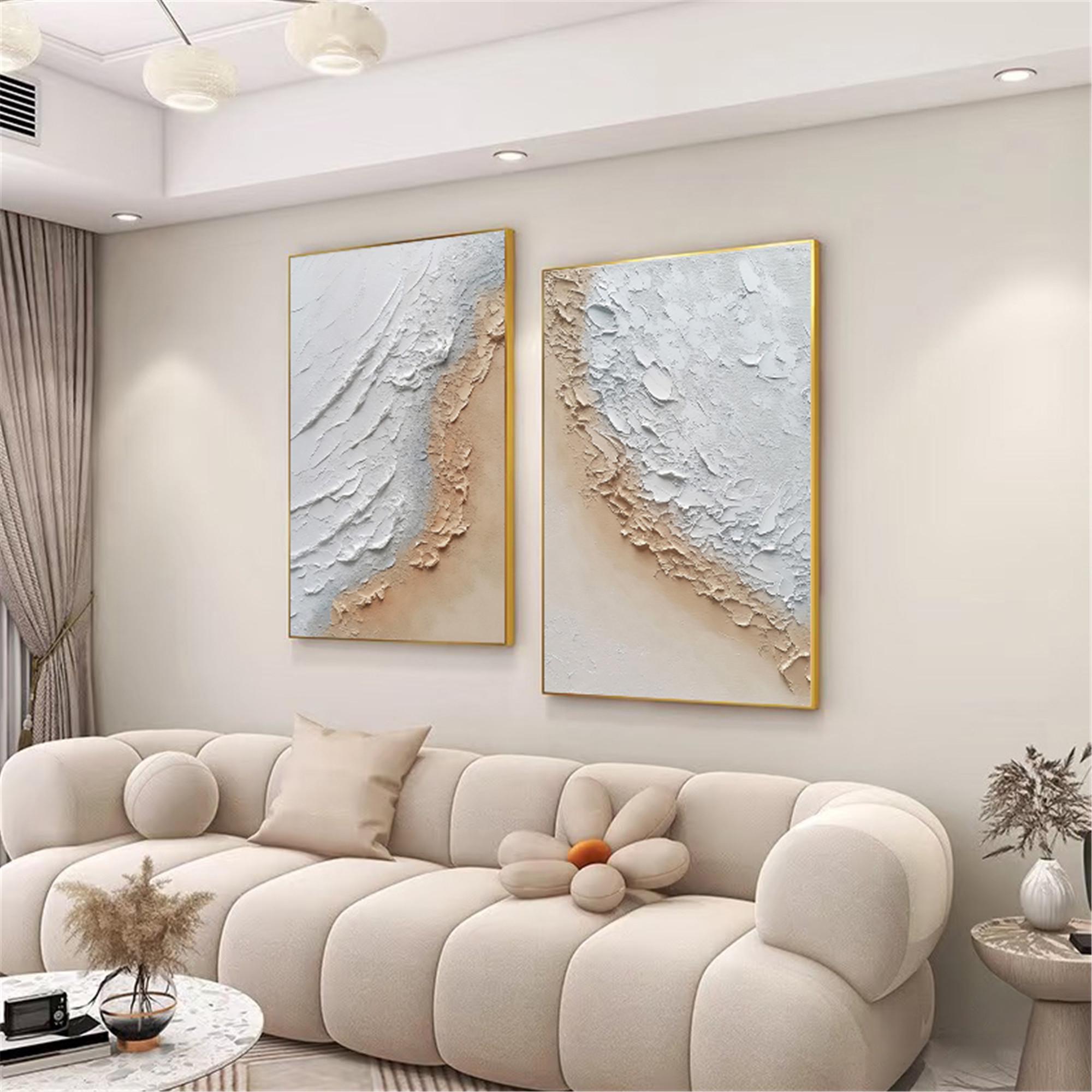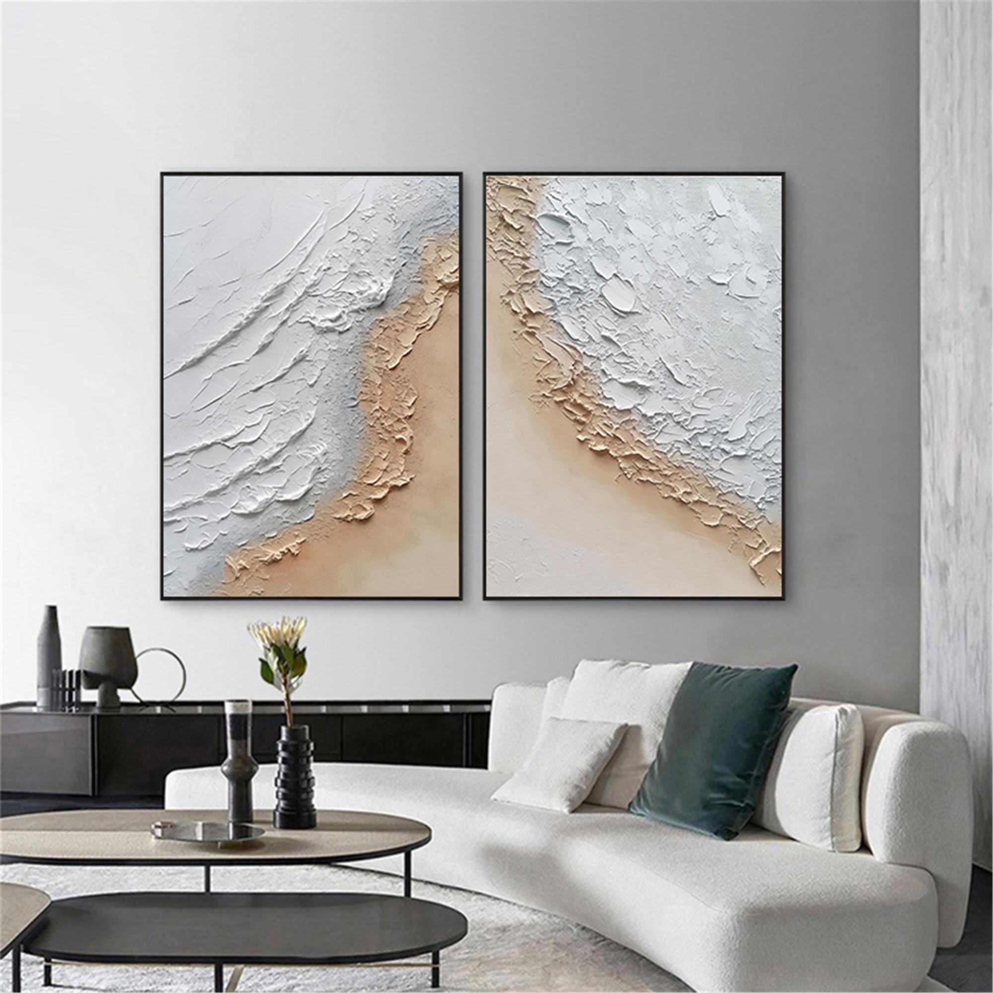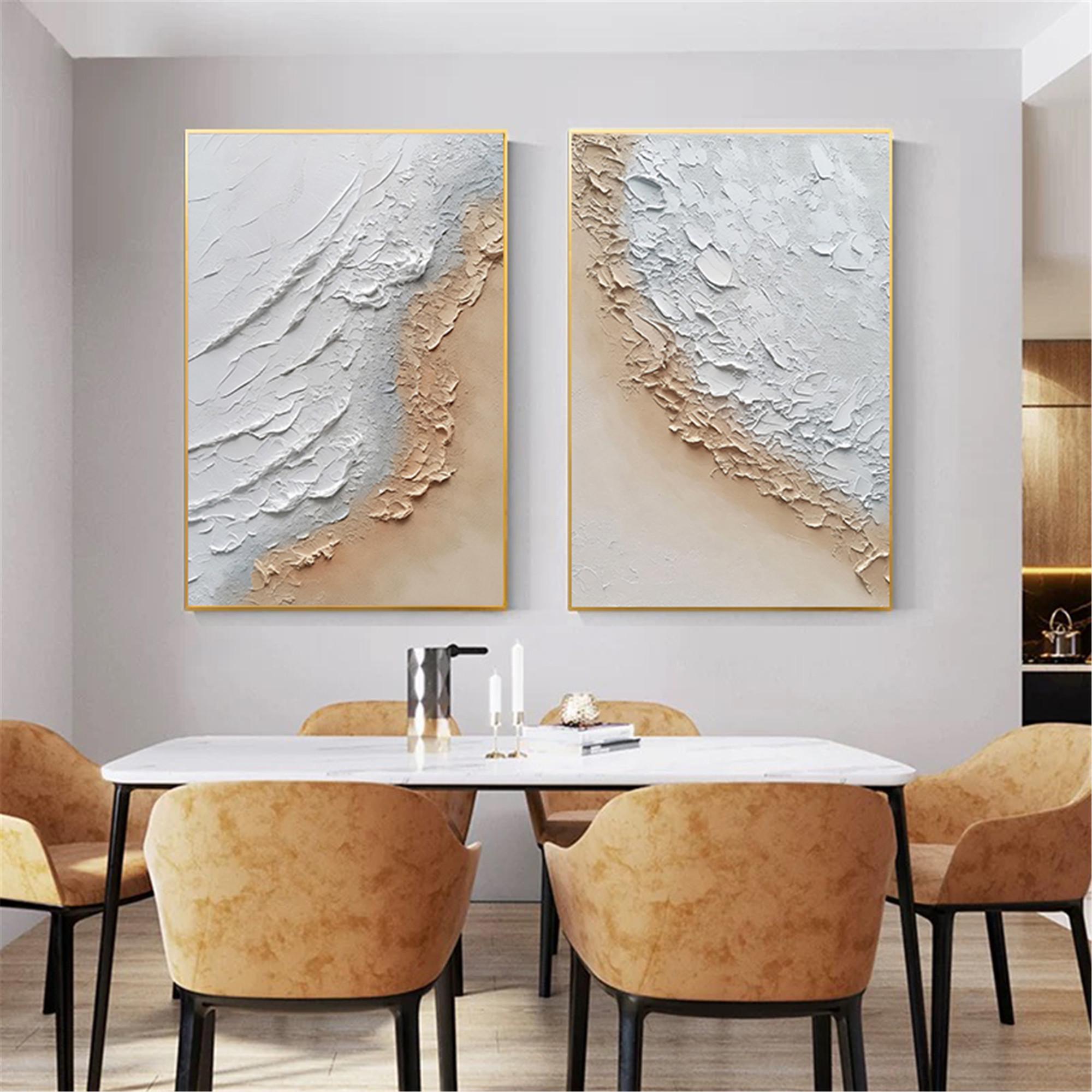 2 pieces original acrylic painting,abstract canvas painting 3d textured ocean Wall Art for living room wall home decor, Personalized gifts