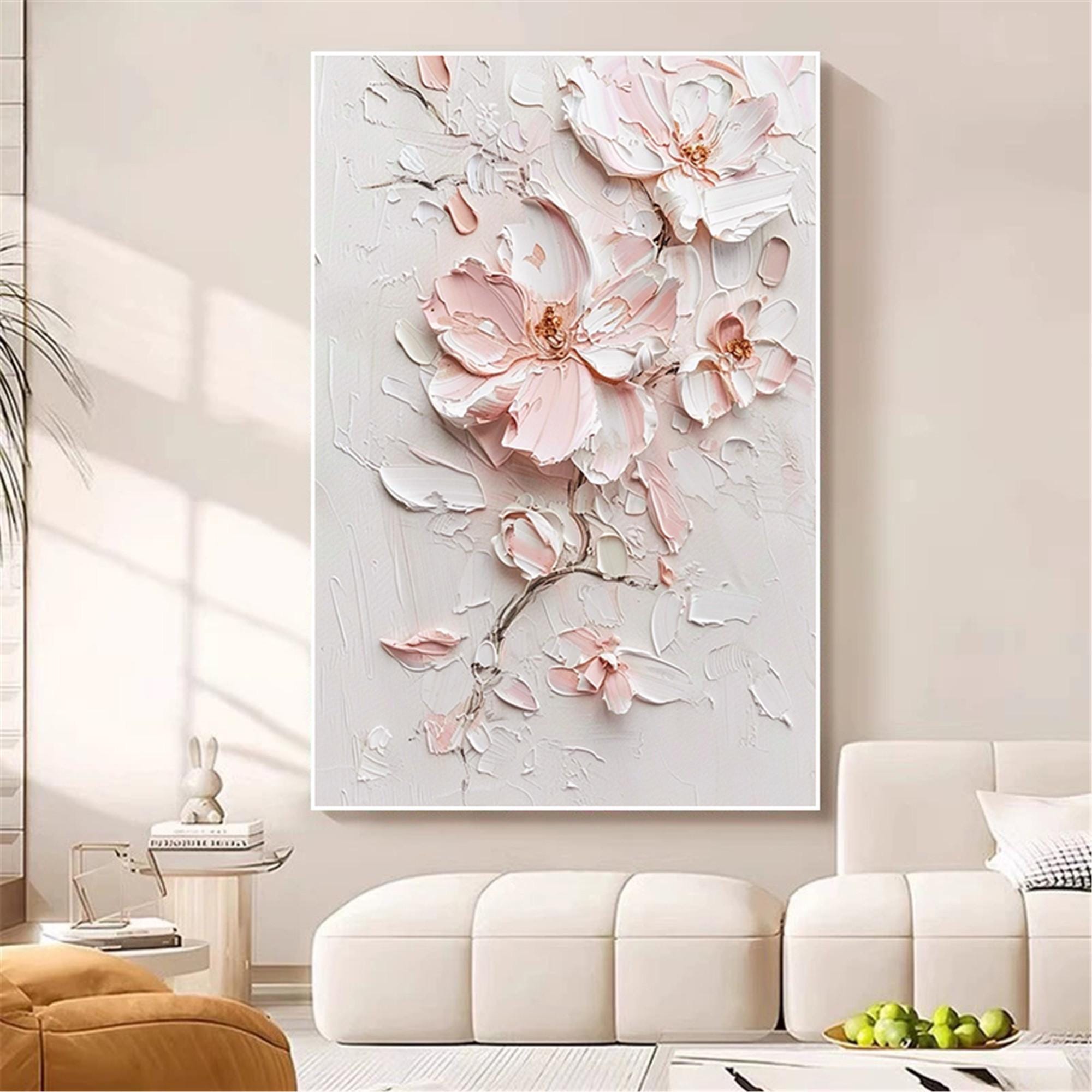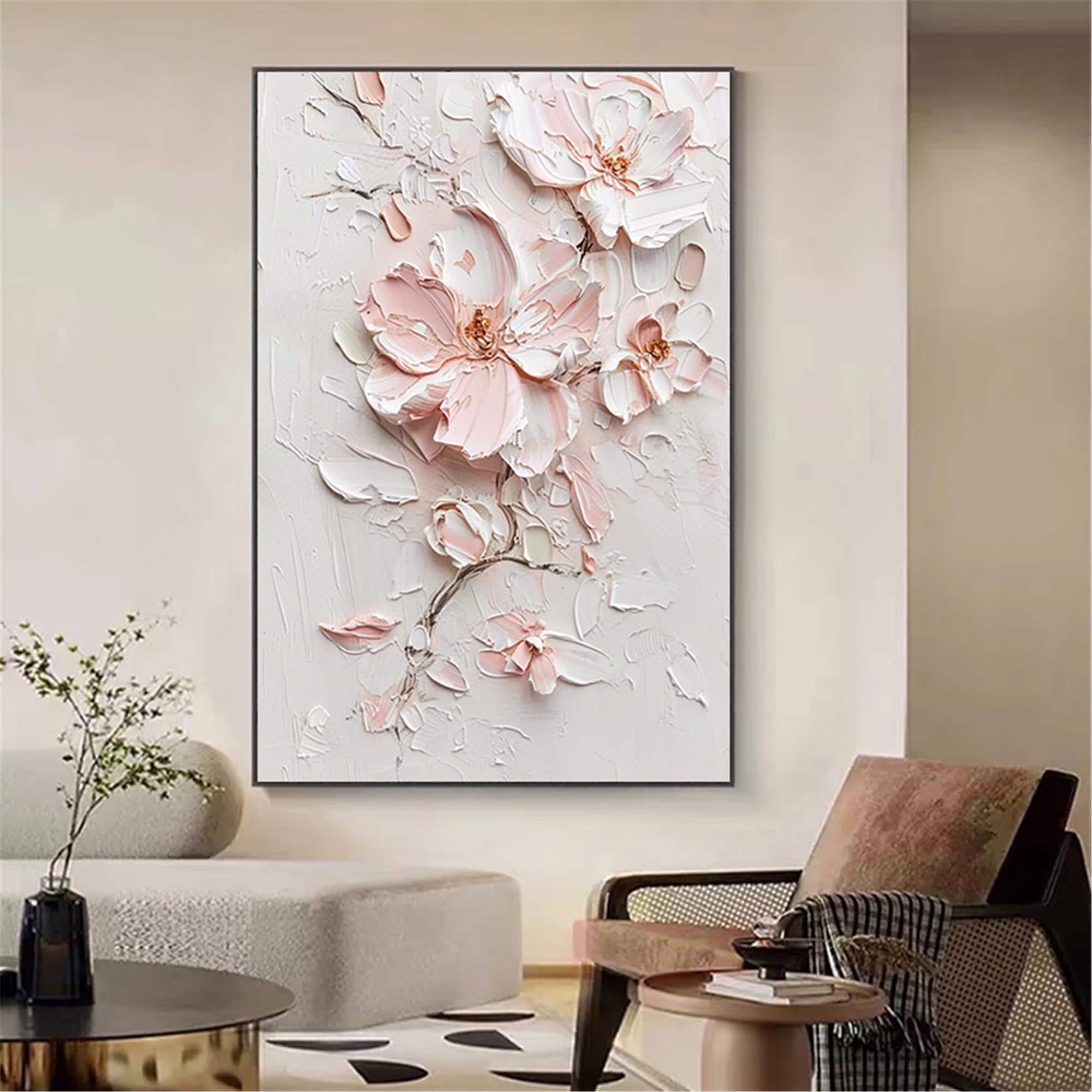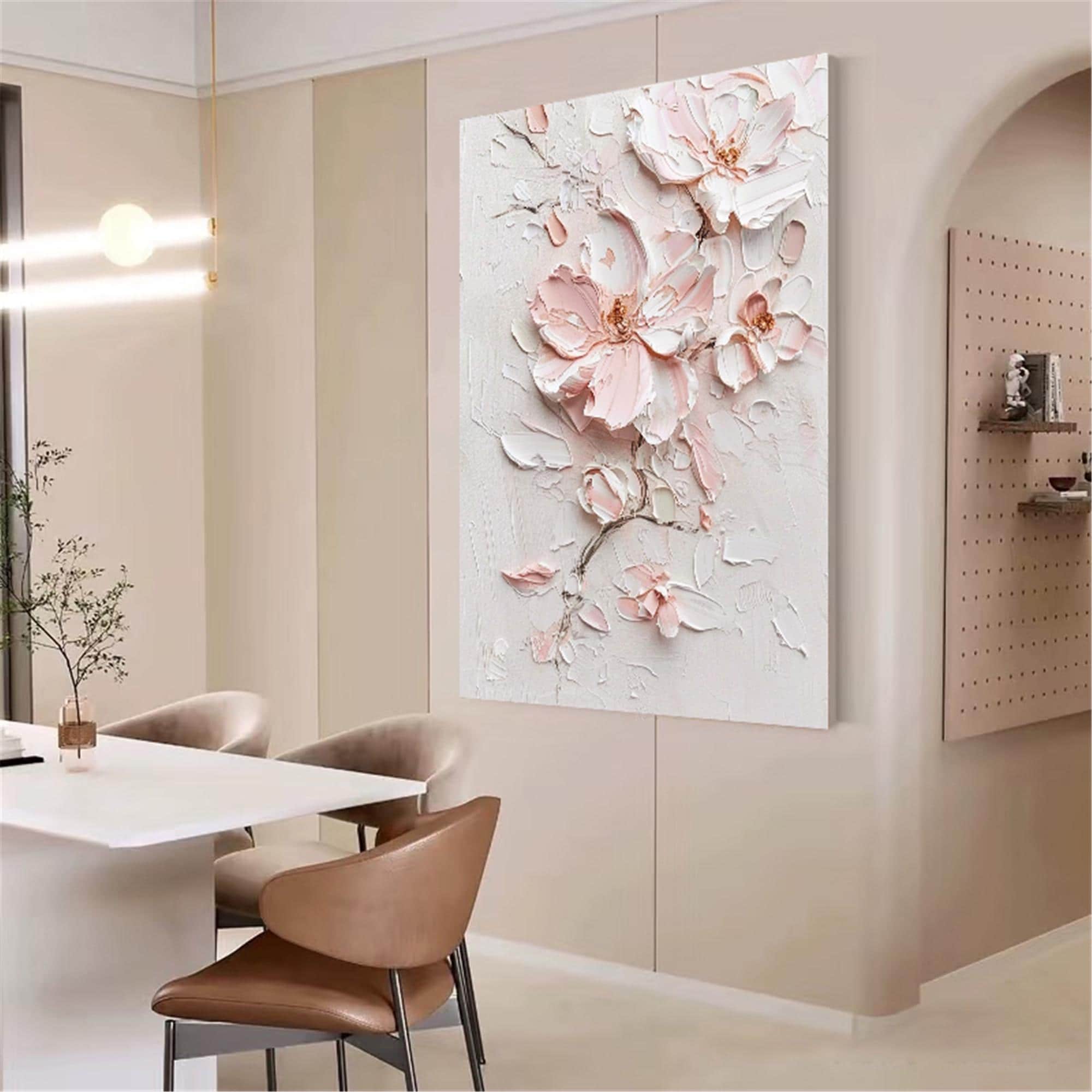 Soft Floral Oil Painting,Botanical Canvas Wall Art,Neutral Flower Bedroom Artwork,Home Decor