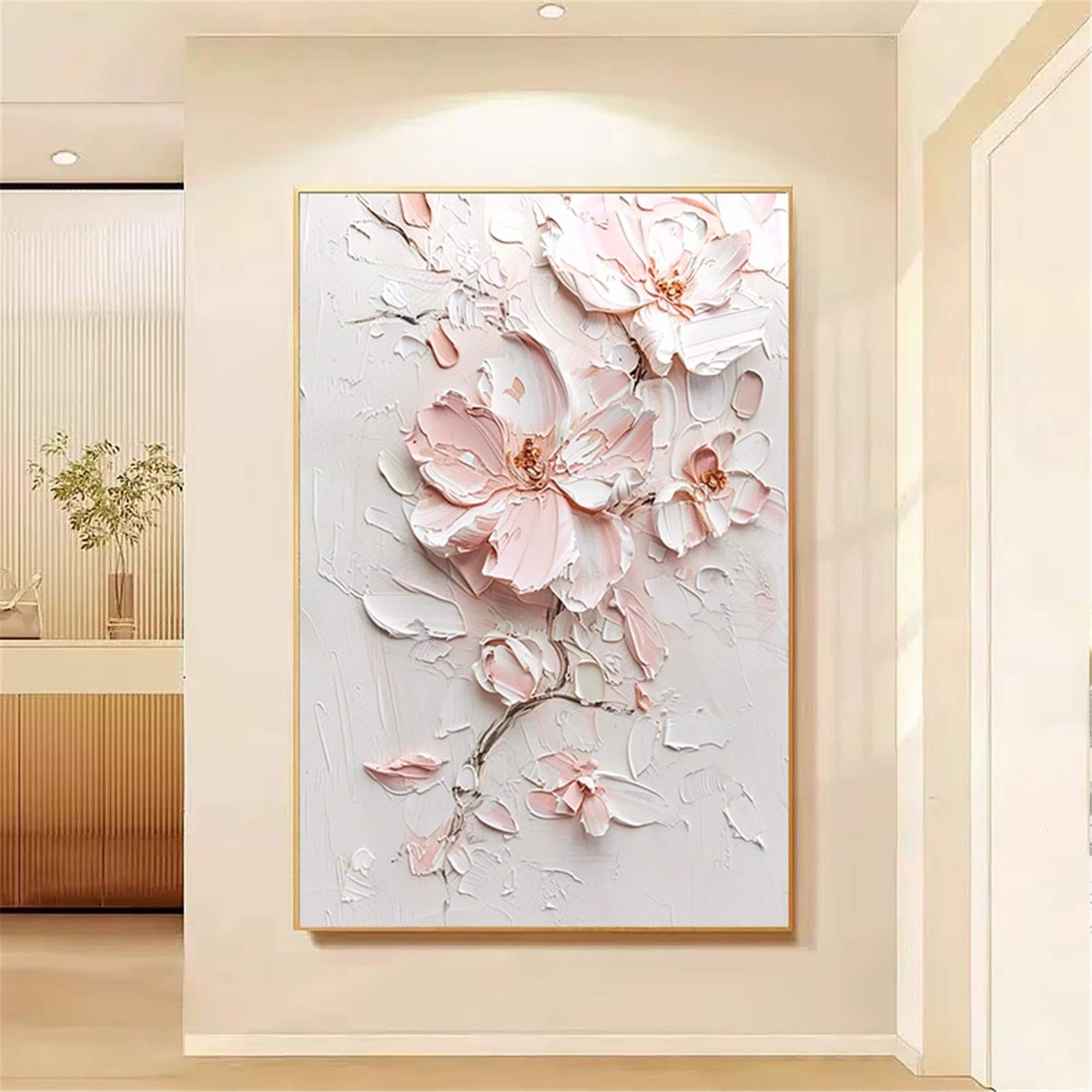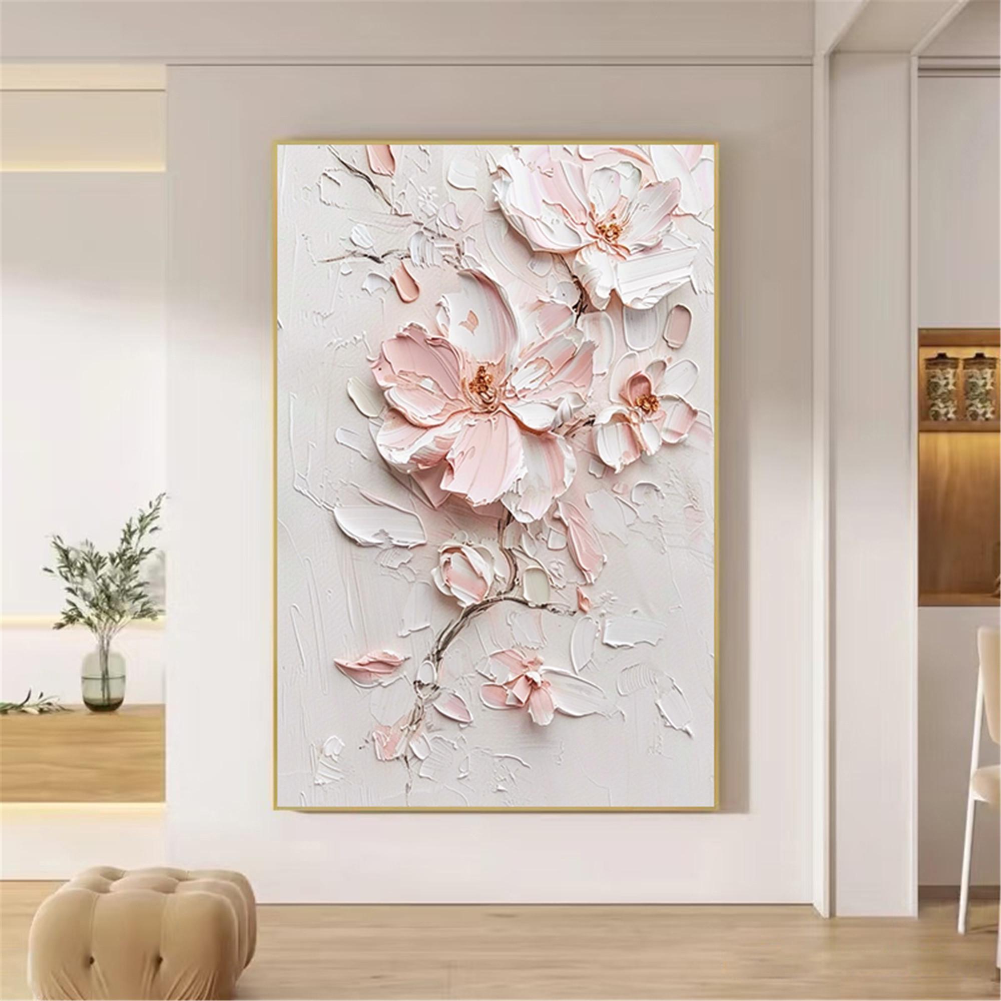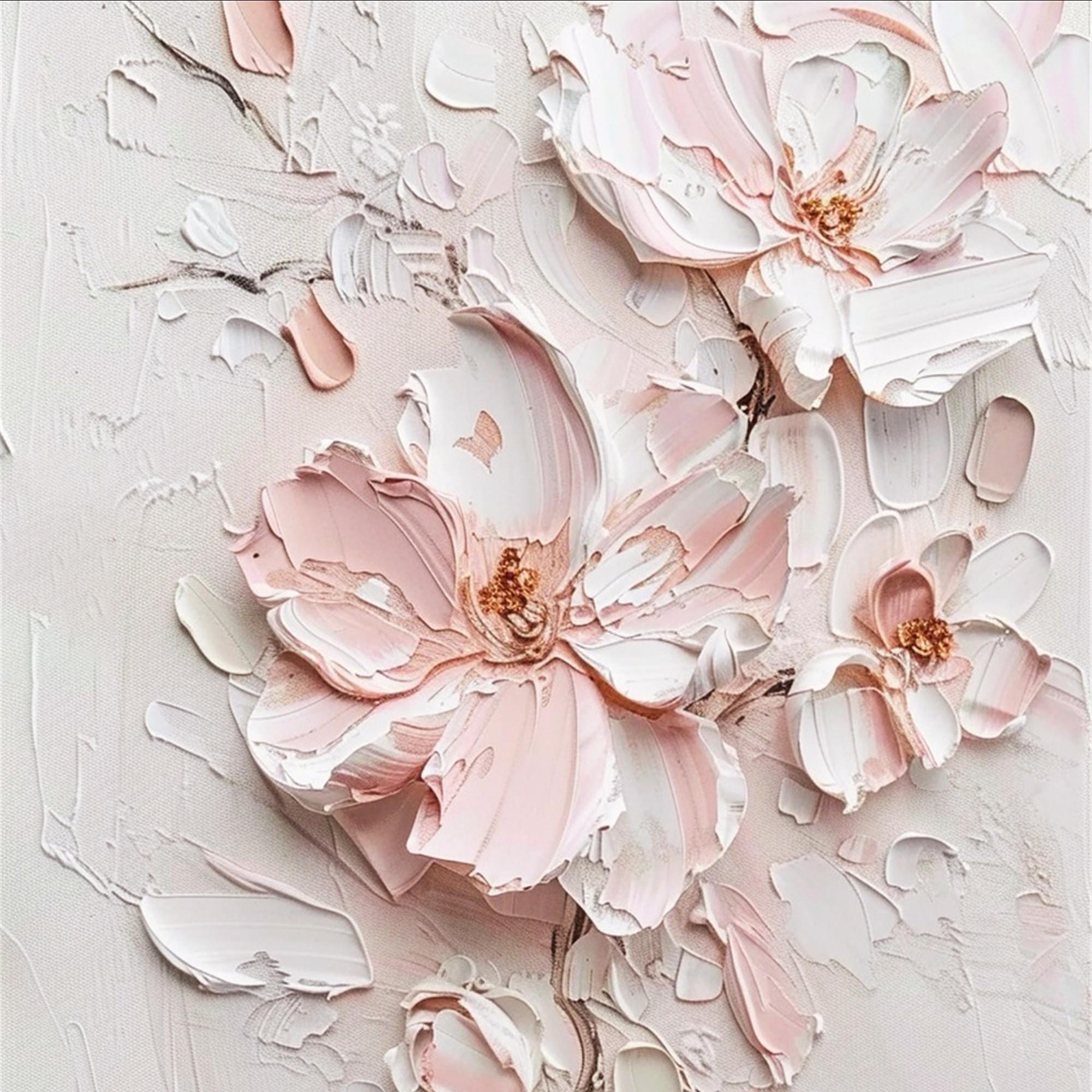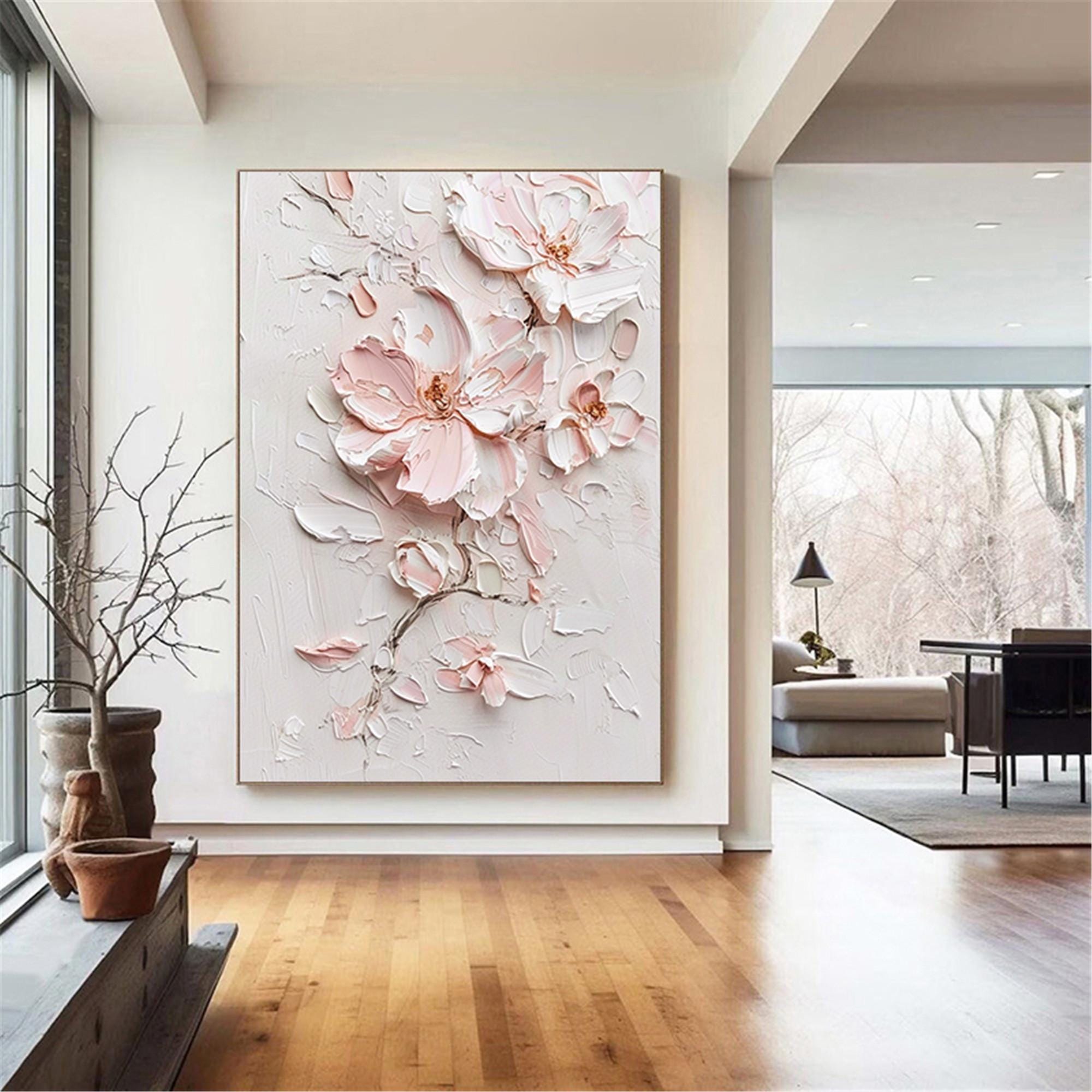 Soft Floral Oil Painting,Botanical Canvas Wall Art,Neutral Flower Bedroom Artwork,Home Decor