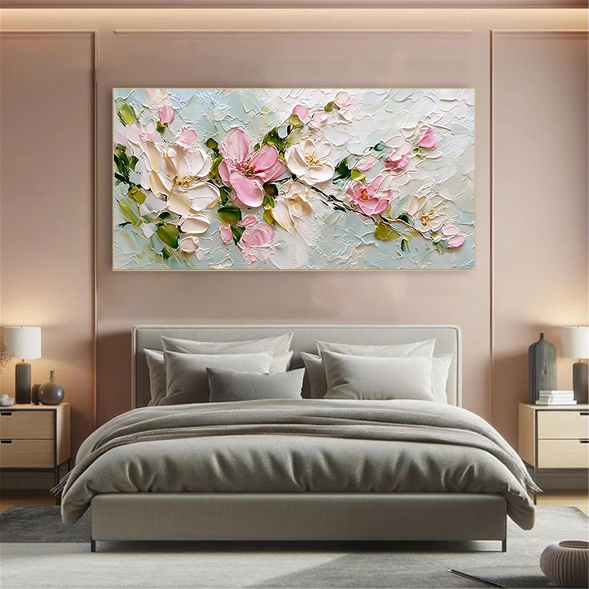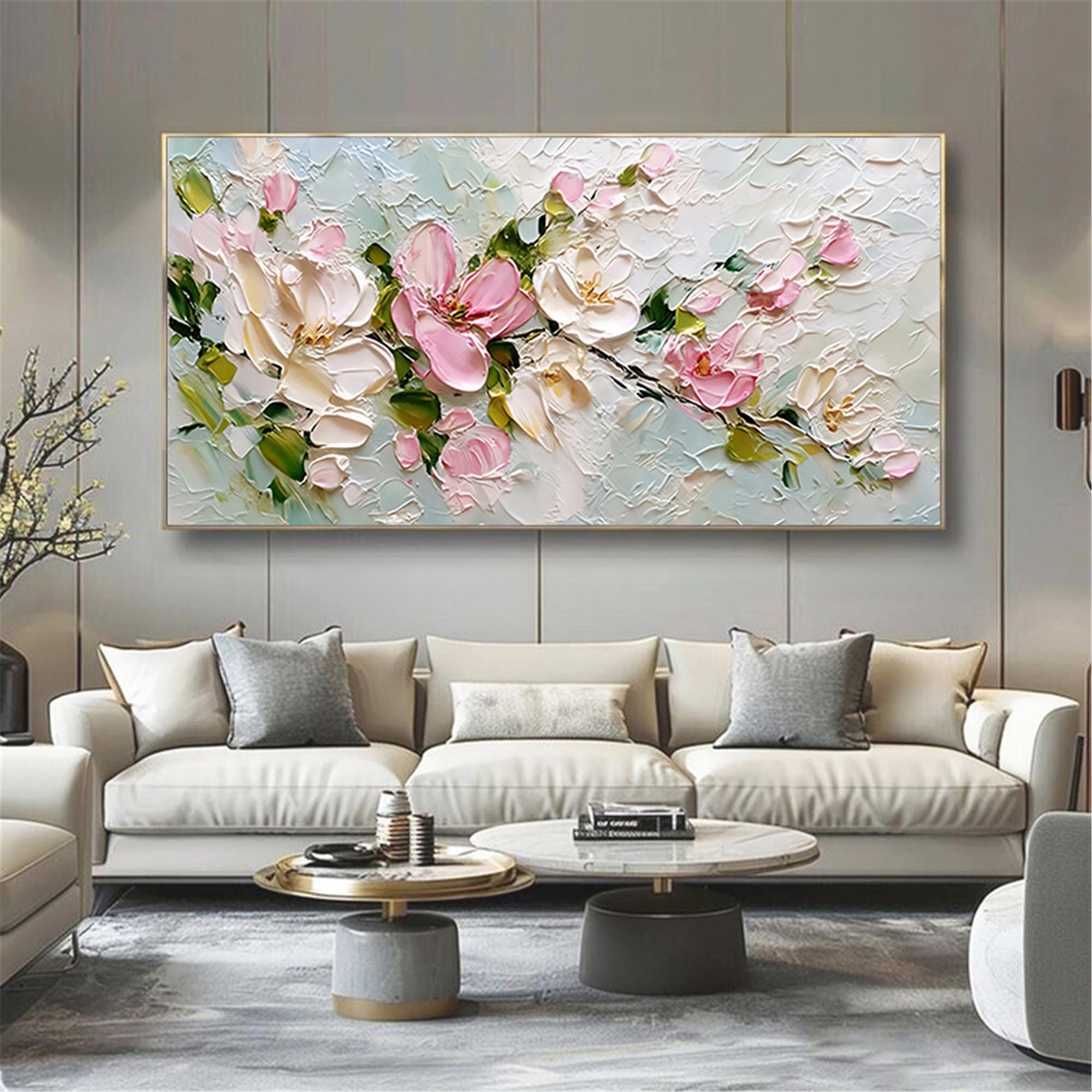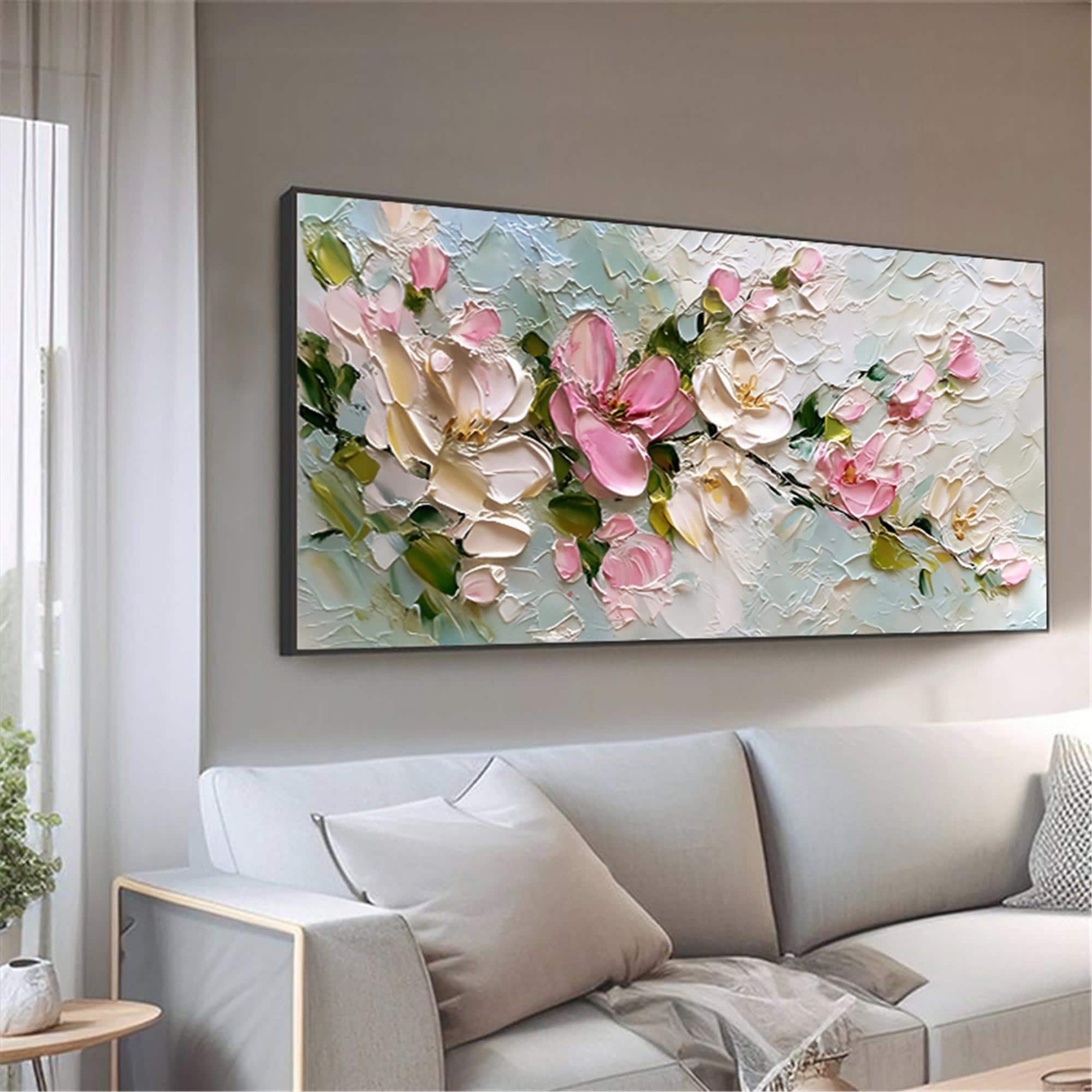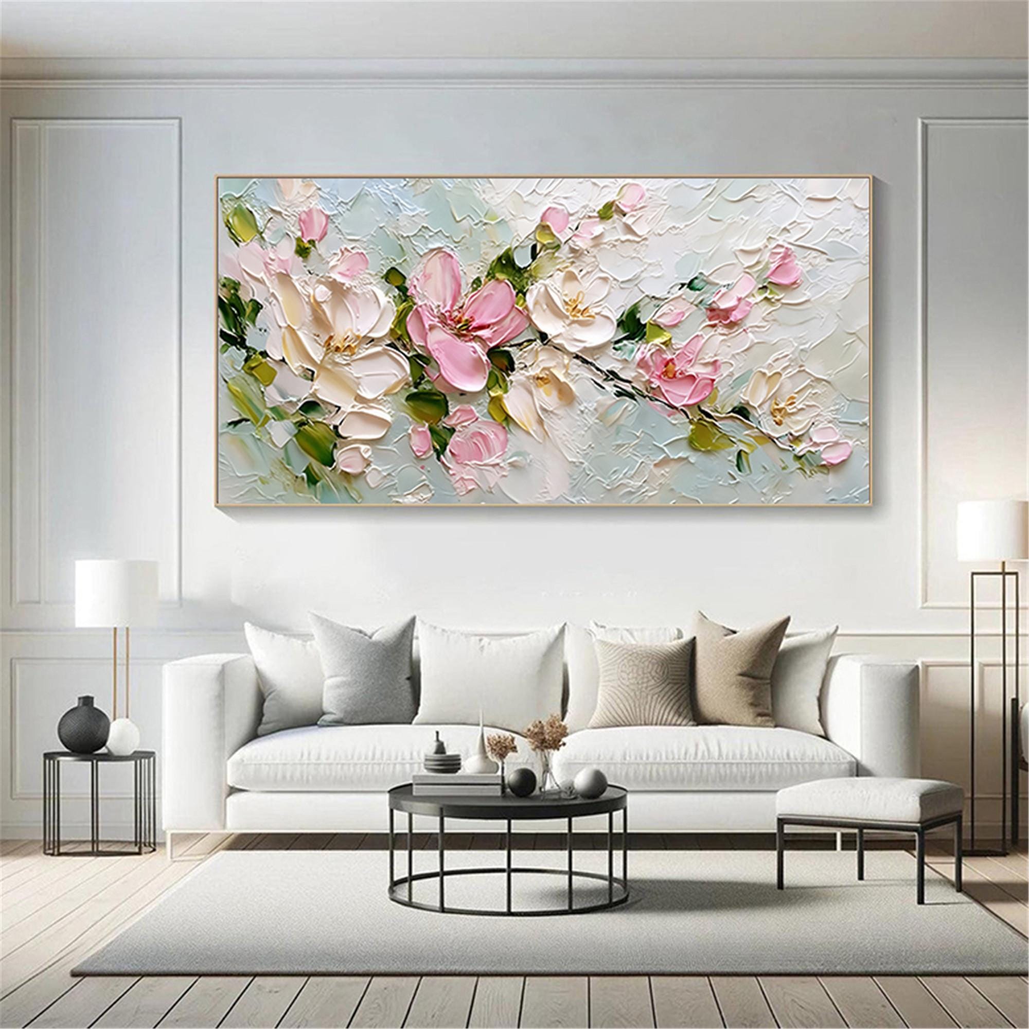 3DTextured Floral Painting,Spring Pastel Flower Living Room Wall Art,Palette Knife Canvas decor