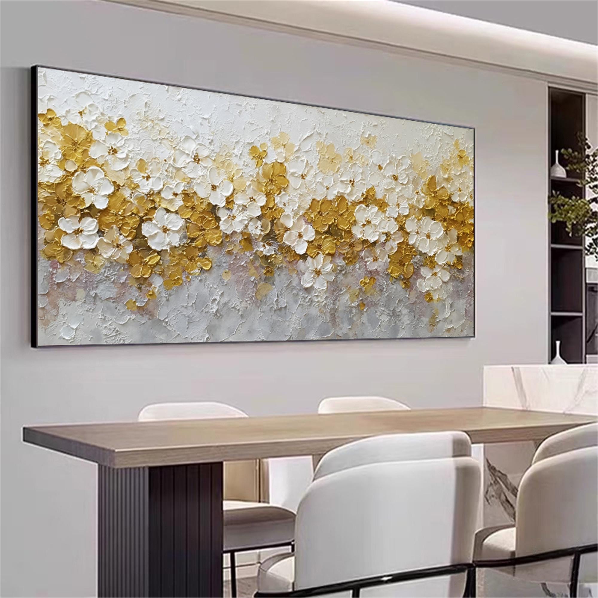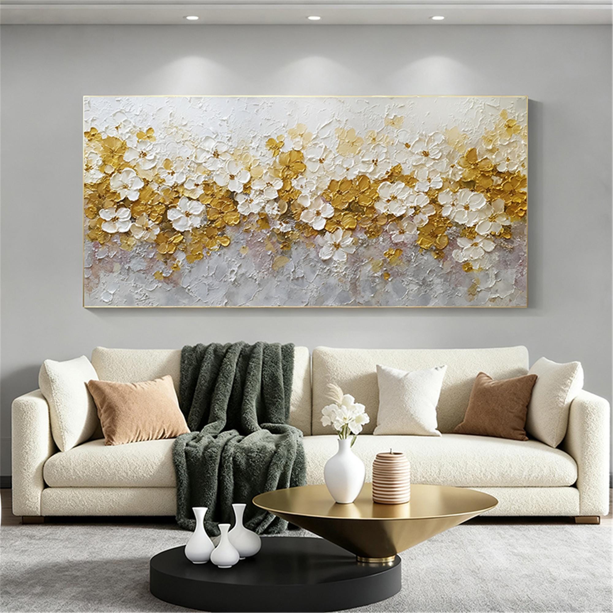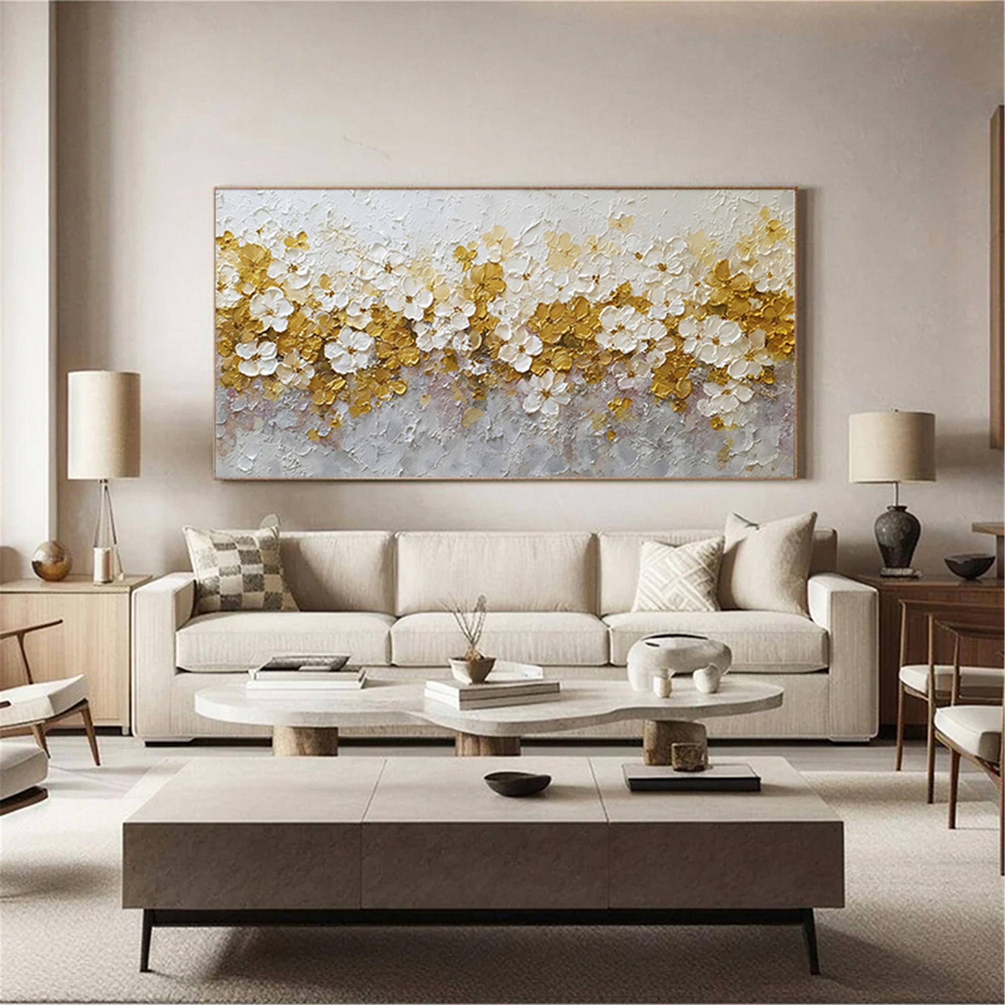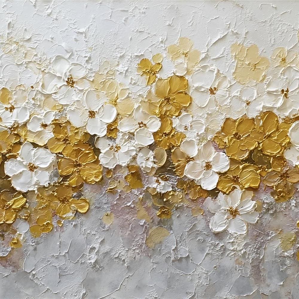 Neutral Spring Floral Wall Art, Handmade Textured Flower Canvas, Beige gold Palette Knife Painting