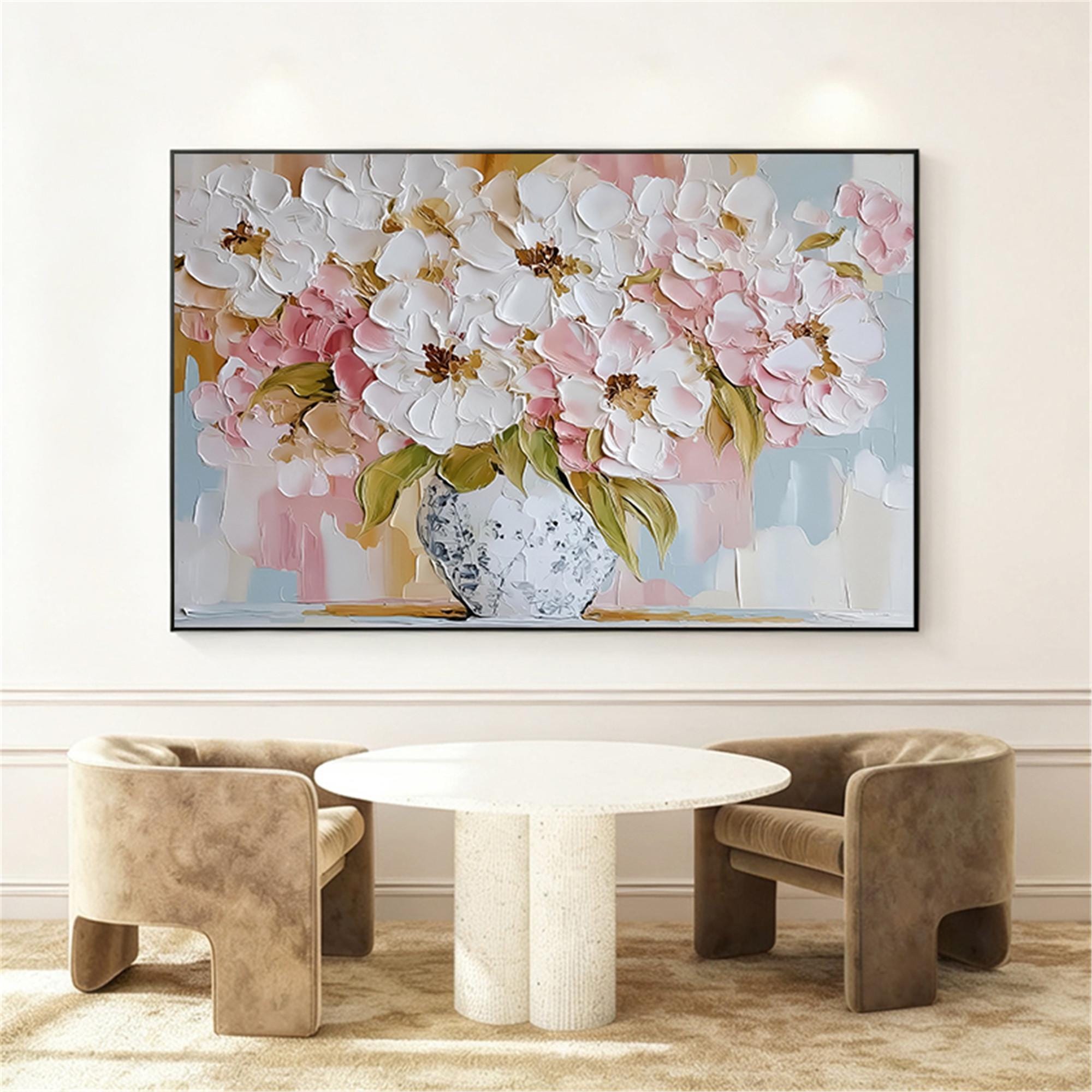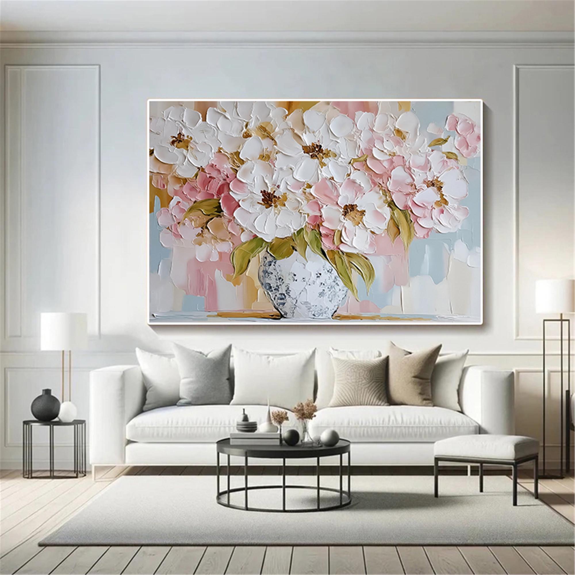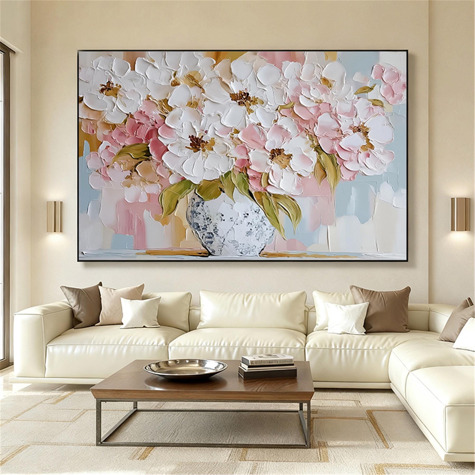 Abstract pink Flower wall art acrylic Painting on canvas Blossom Floral Painting for wall decor home office living room personalized gifts