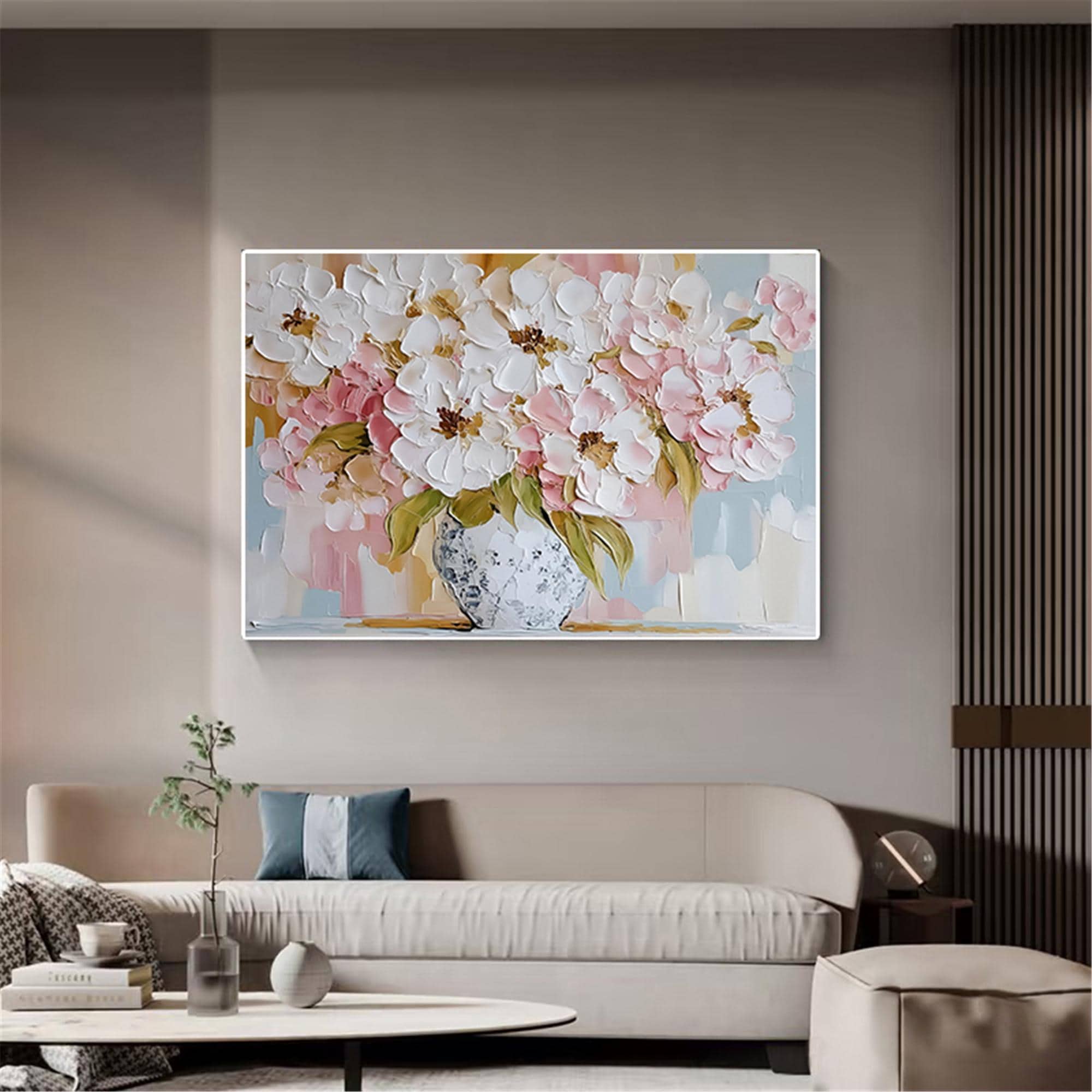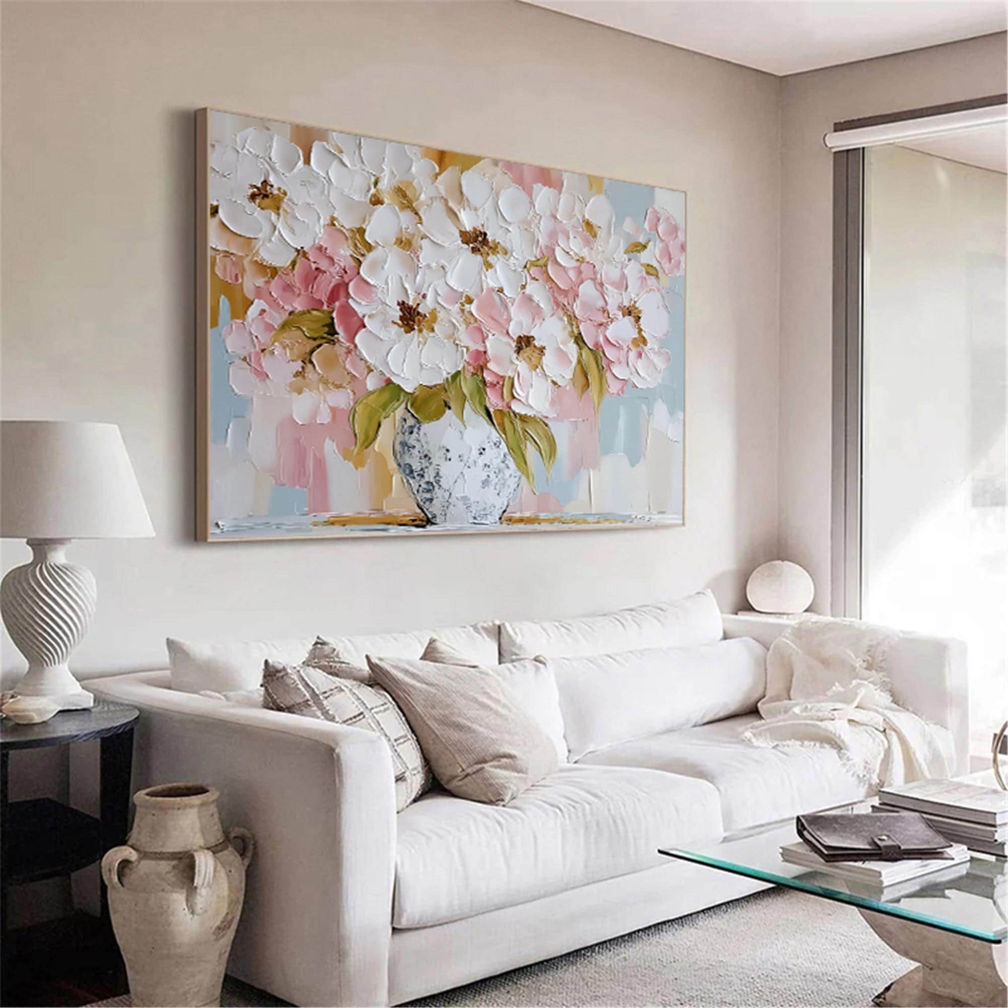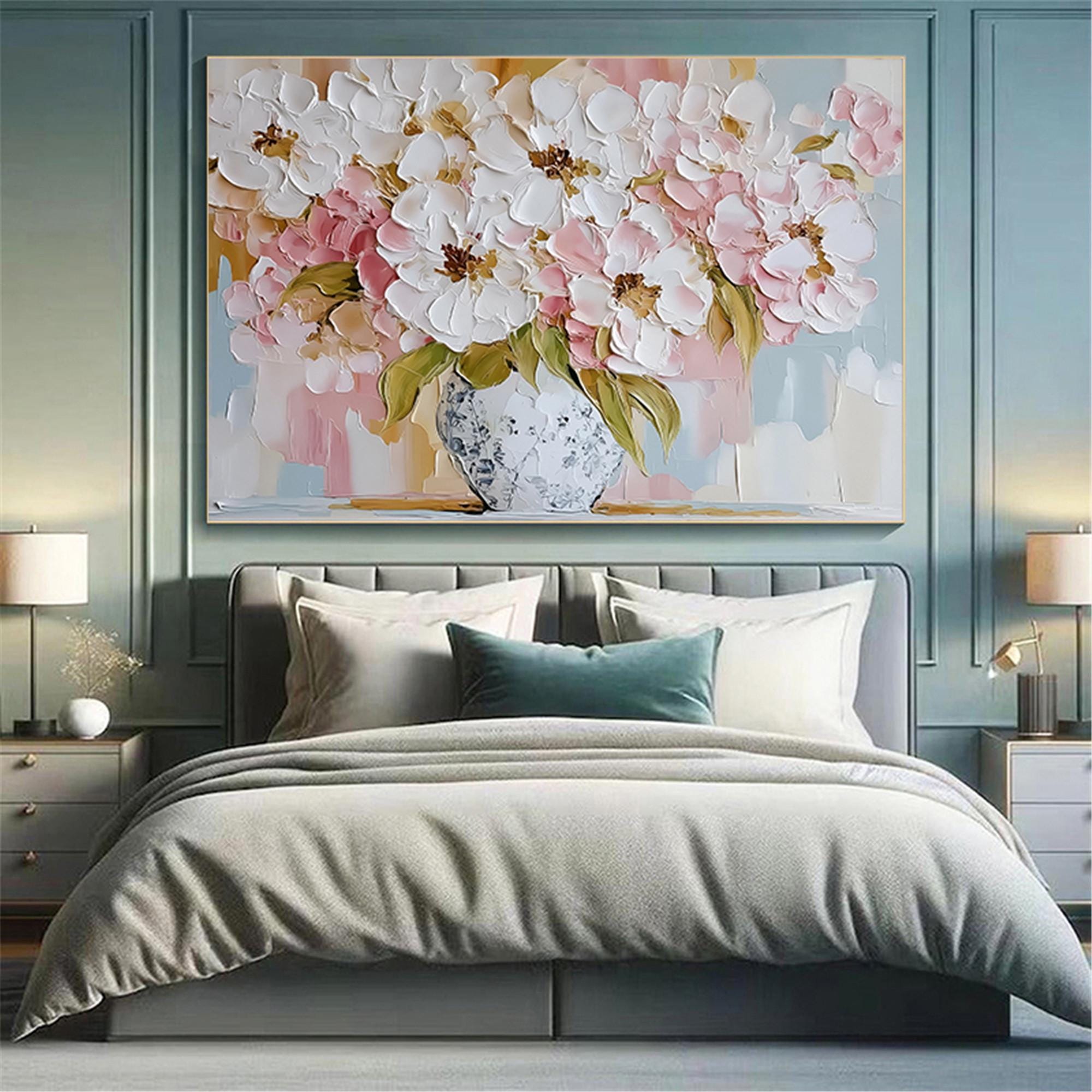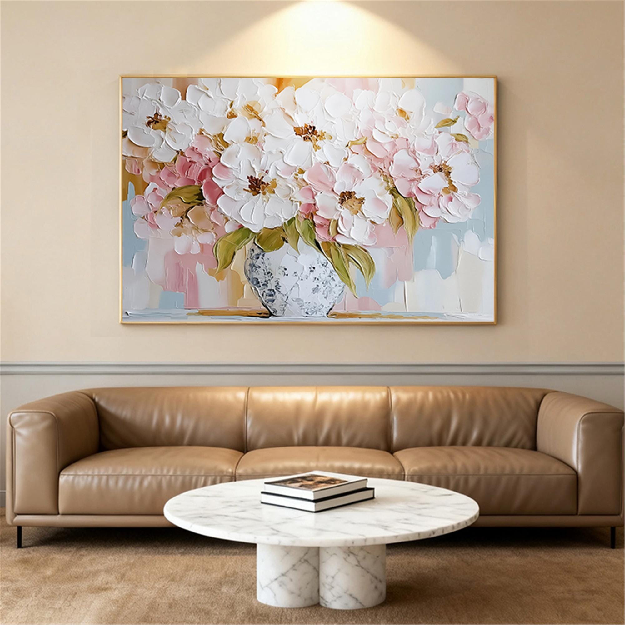 Abstract pink Flower wall art acrylic Painting on canvas Blossom Floral Painting for wall decor home office living room personalized gifts