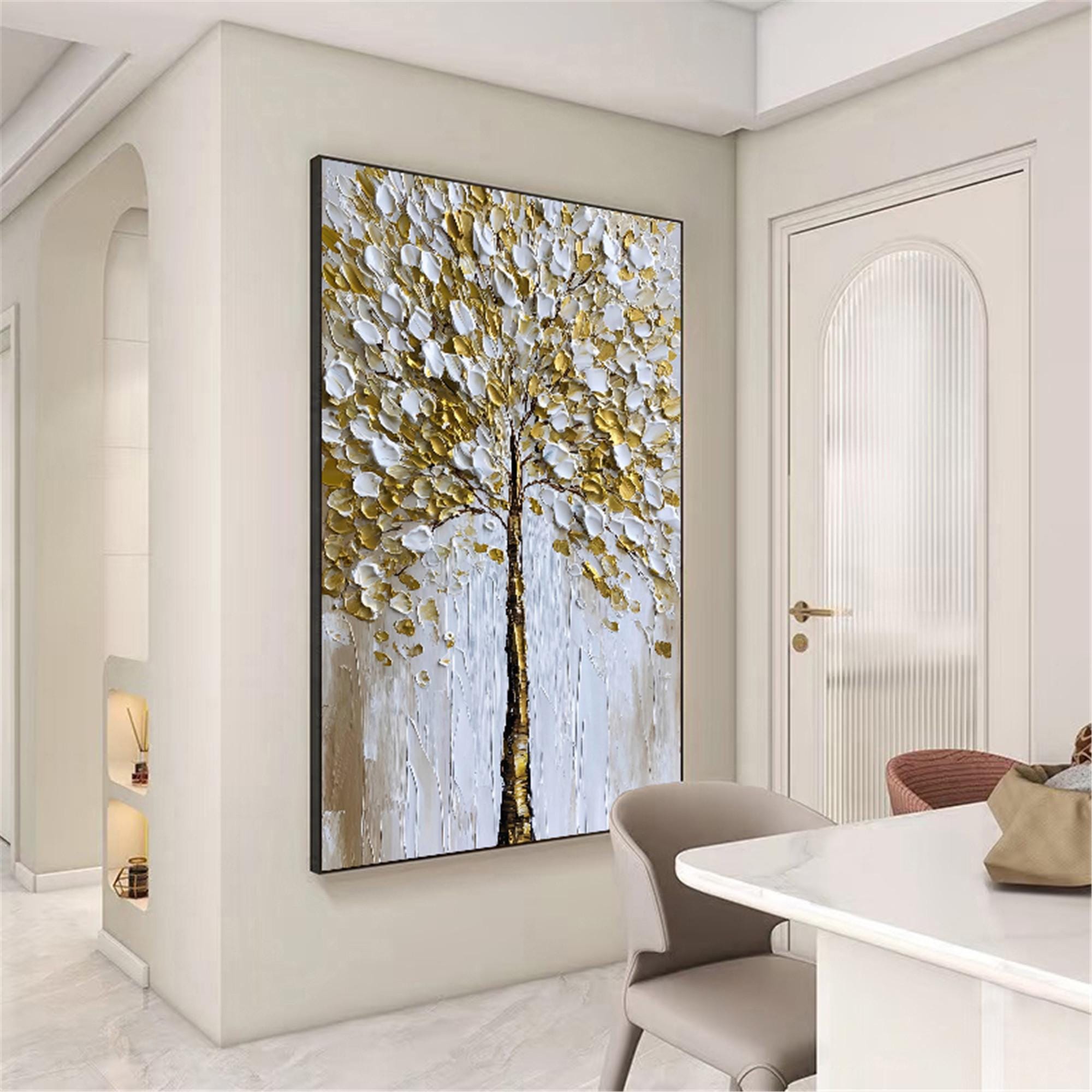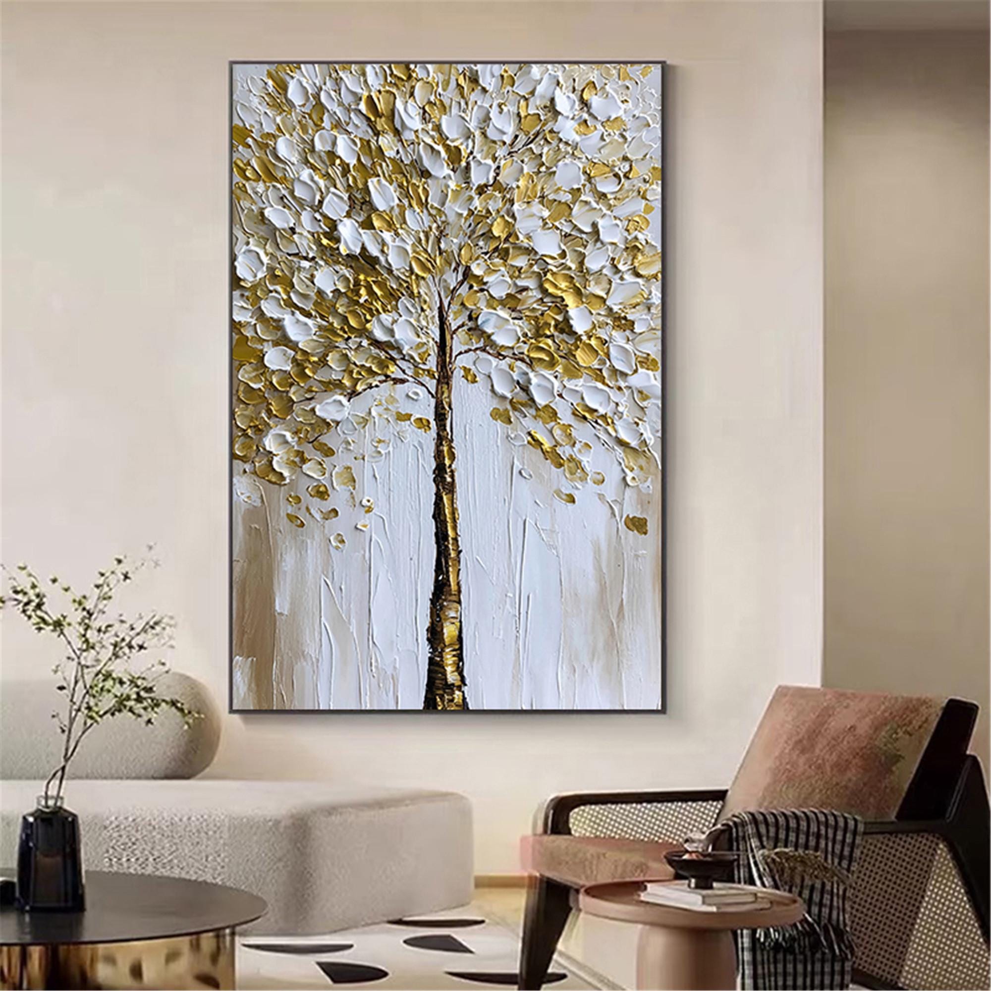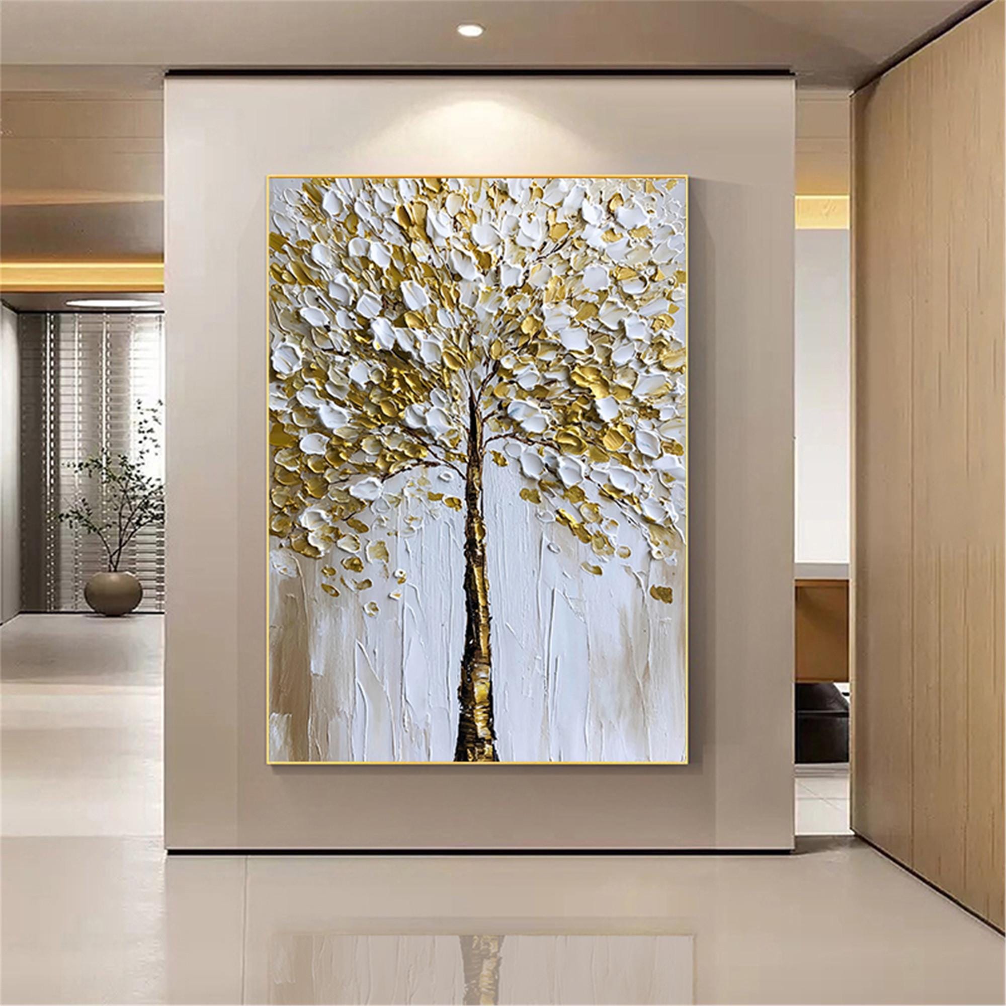 Original Gold tree Painting on canvas,3DTextured Abstract acrylic Wall Art home office decor
