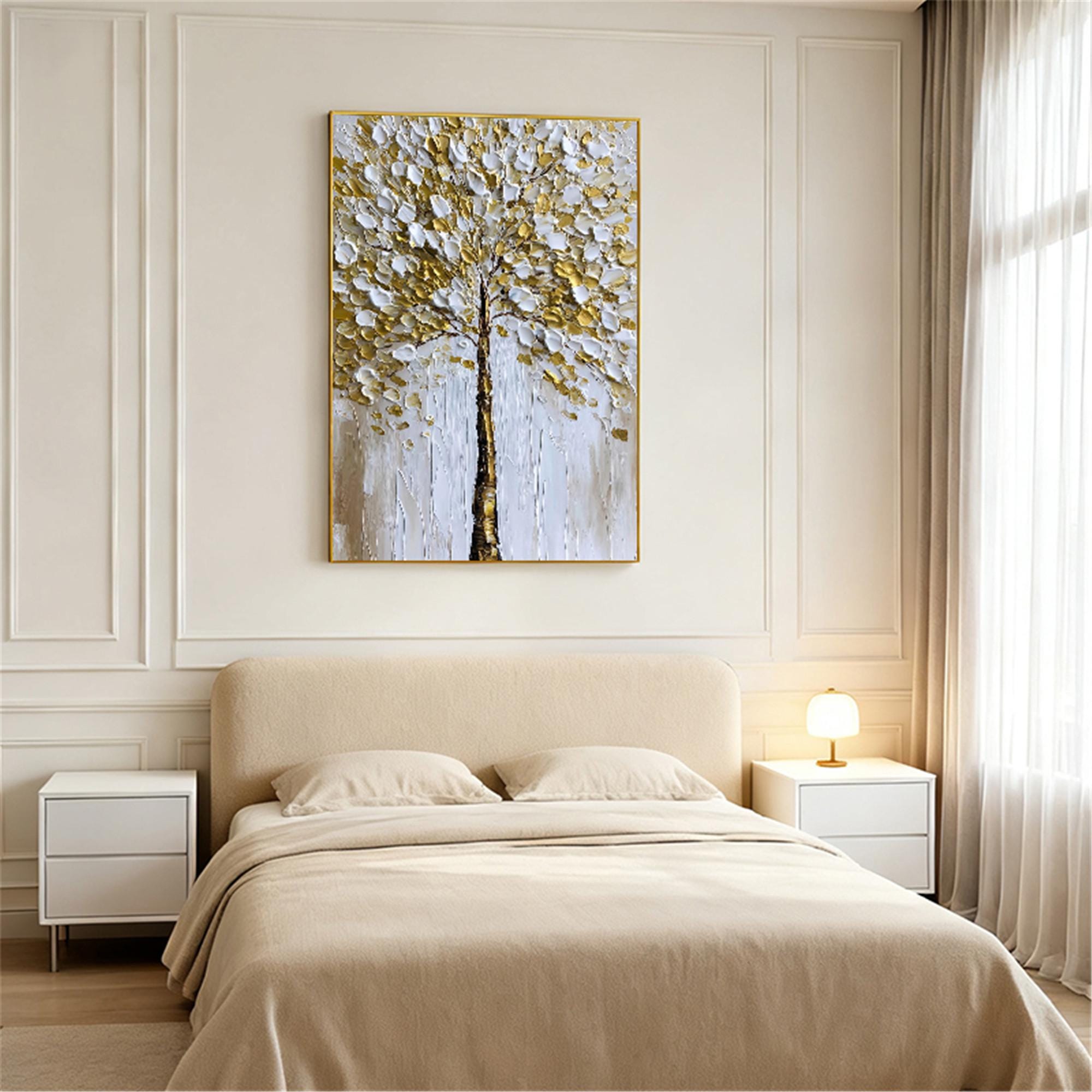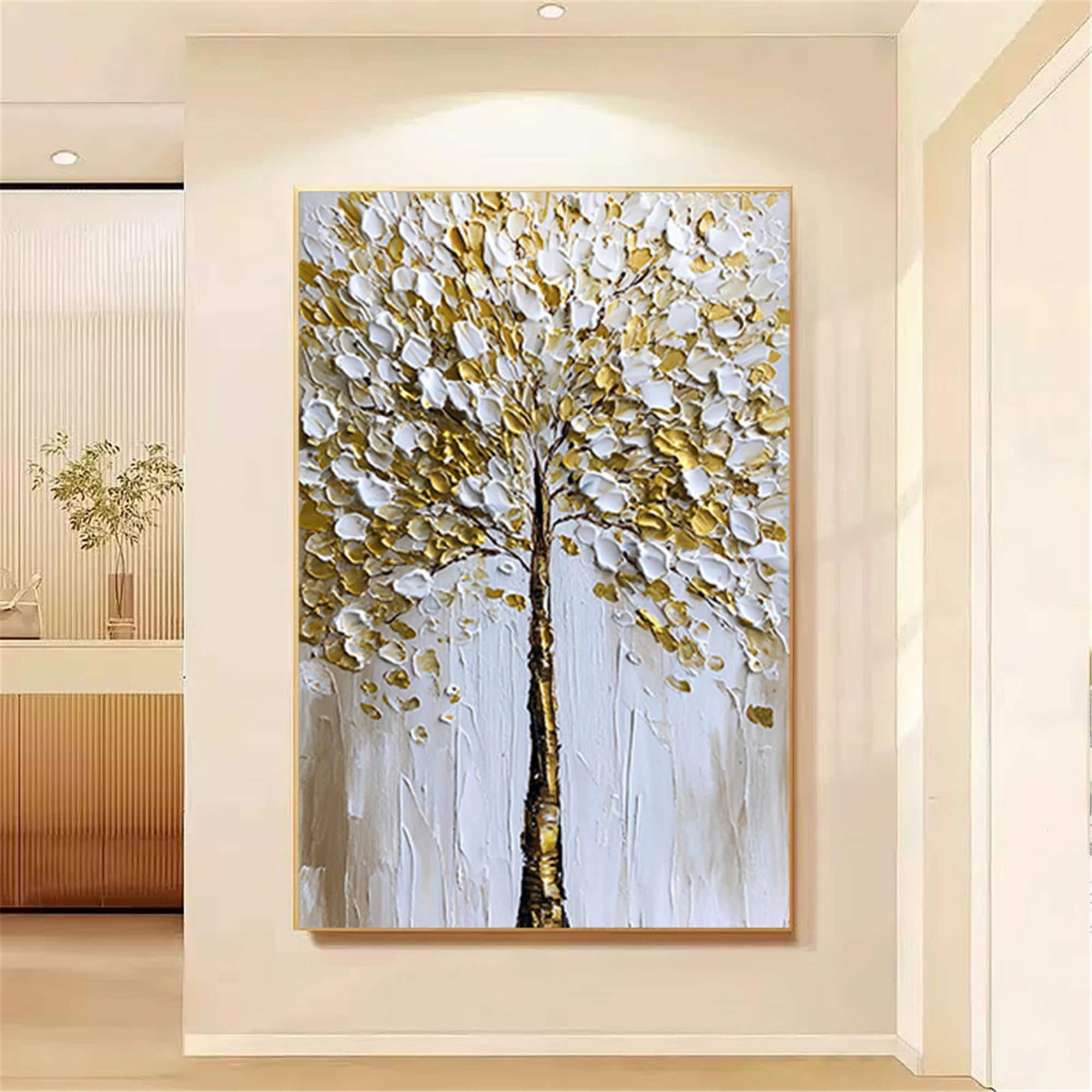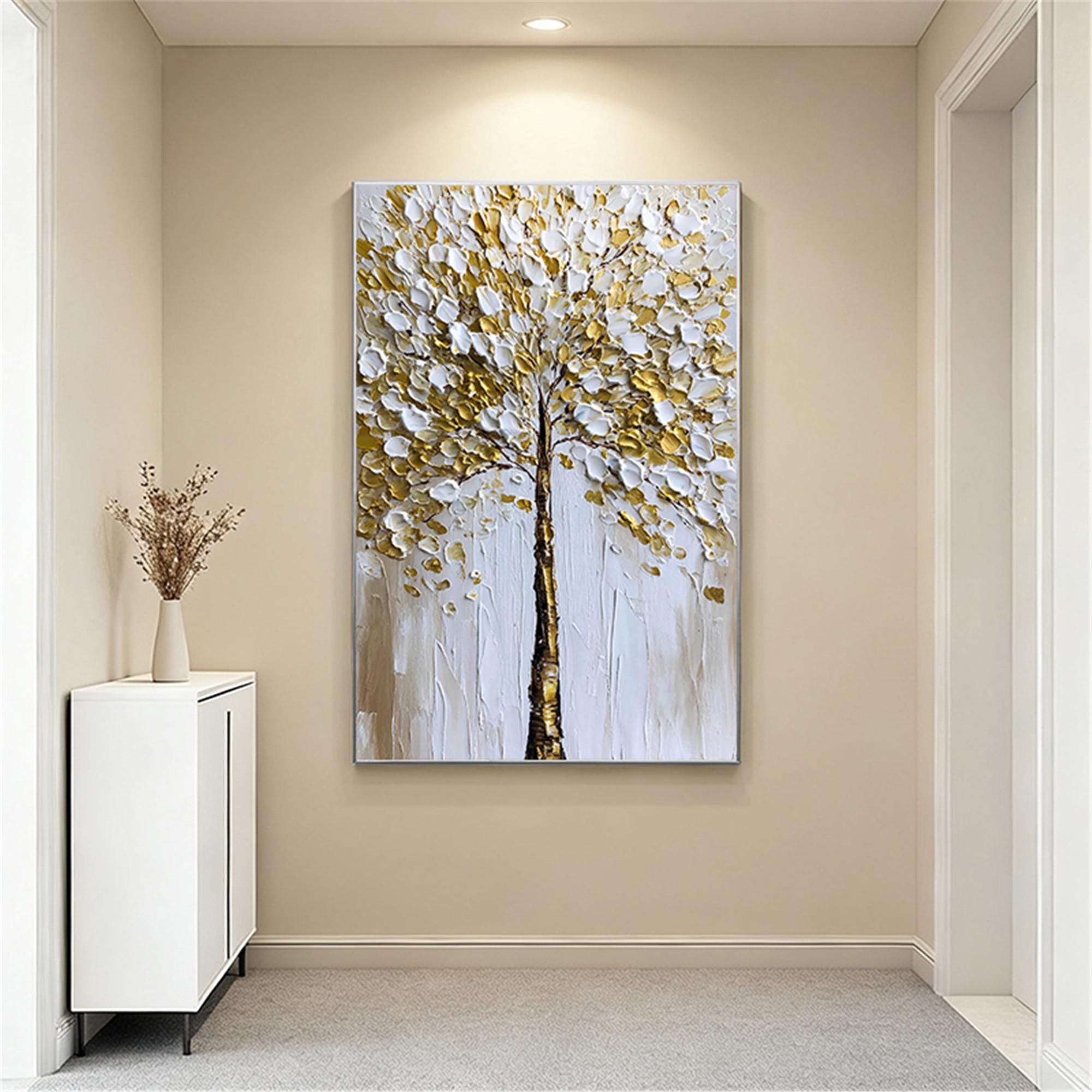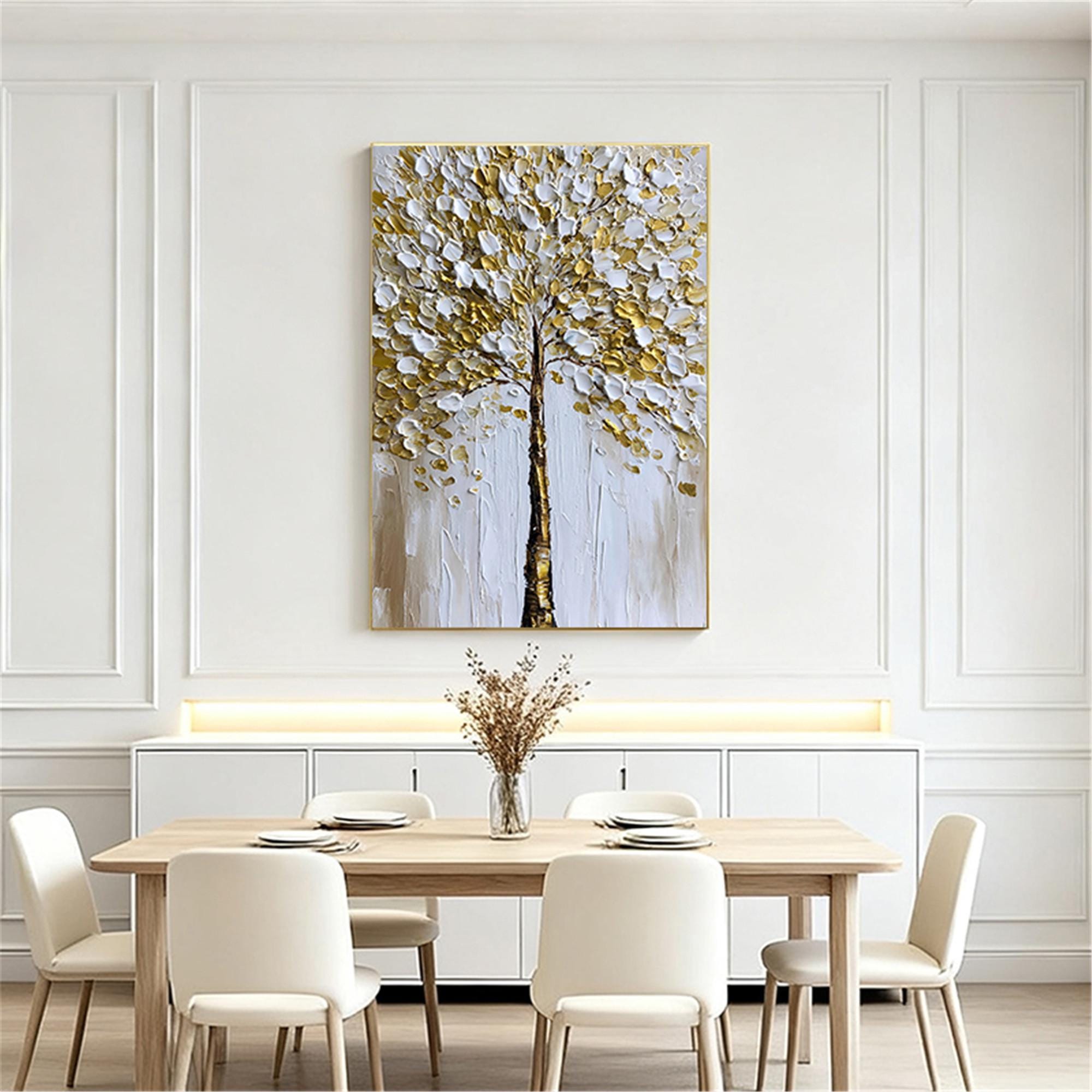 Original Gold tree Painting on canvas,3DTextured Abstract acrylic Wall Art home office decor