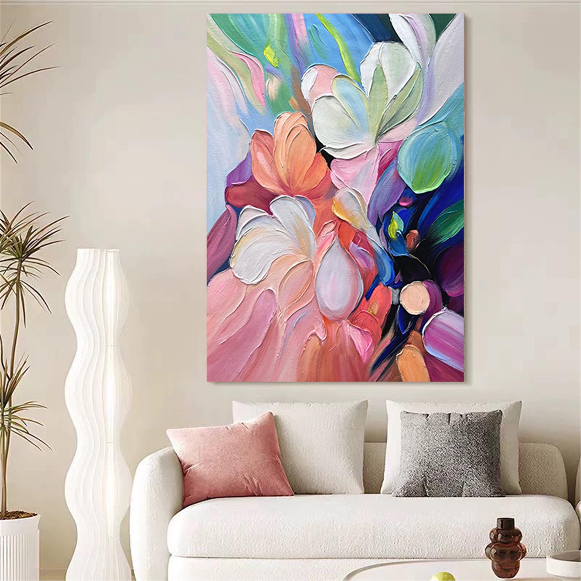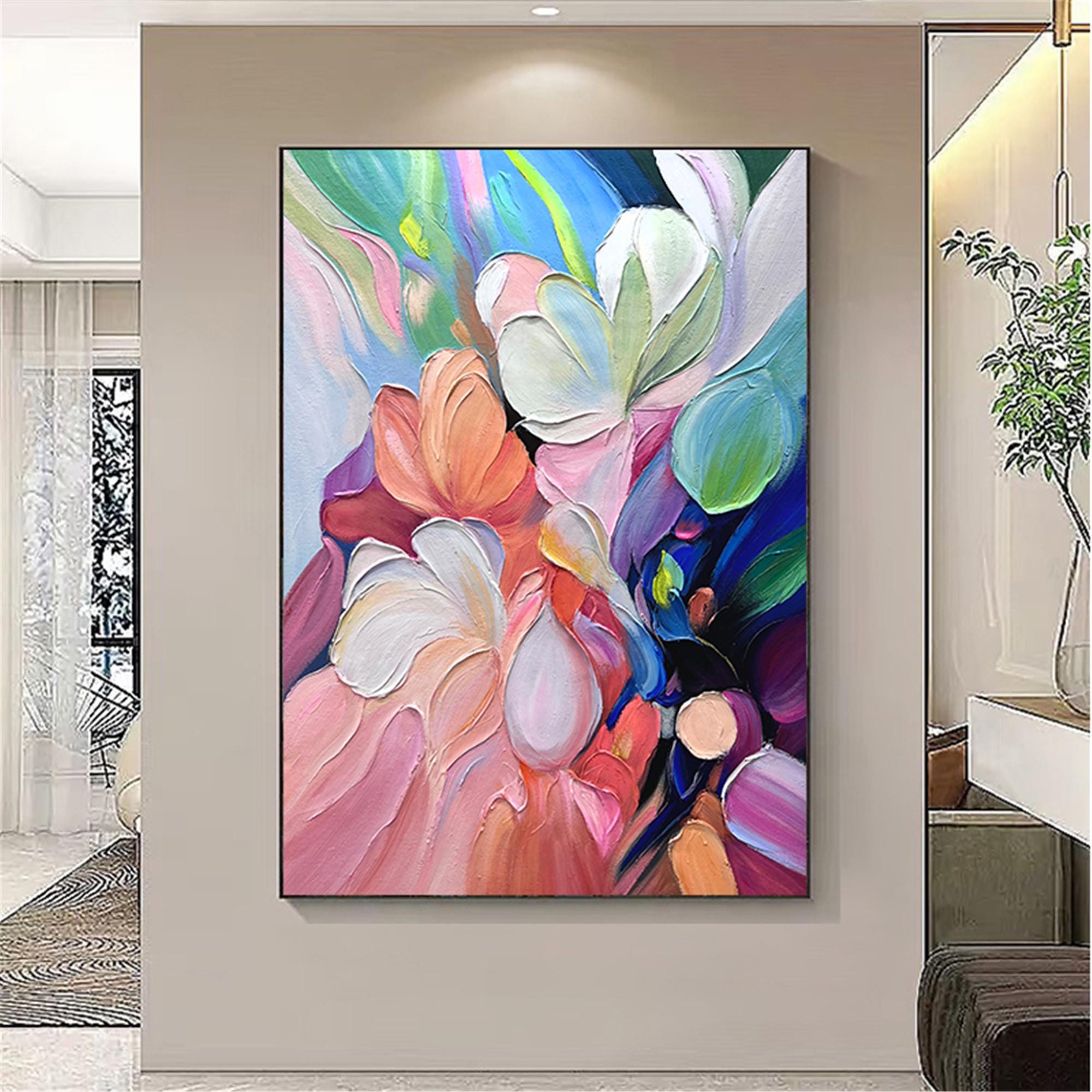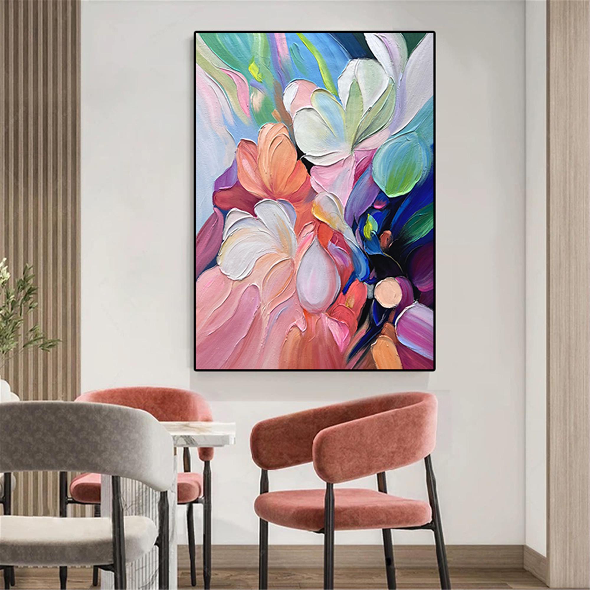 Textured wall art abstract Painting on Canvas, acrylic pink flower Palette Knife Art