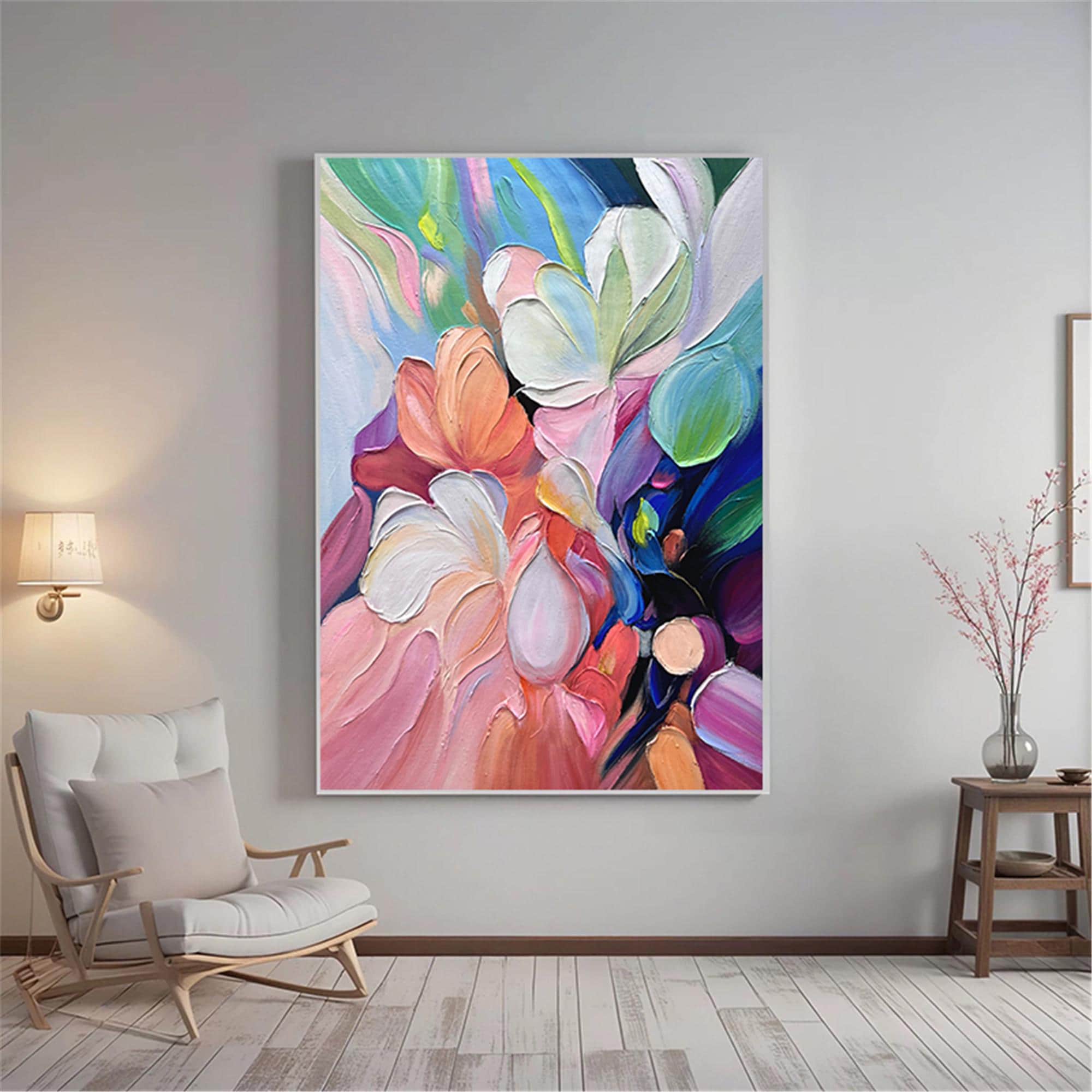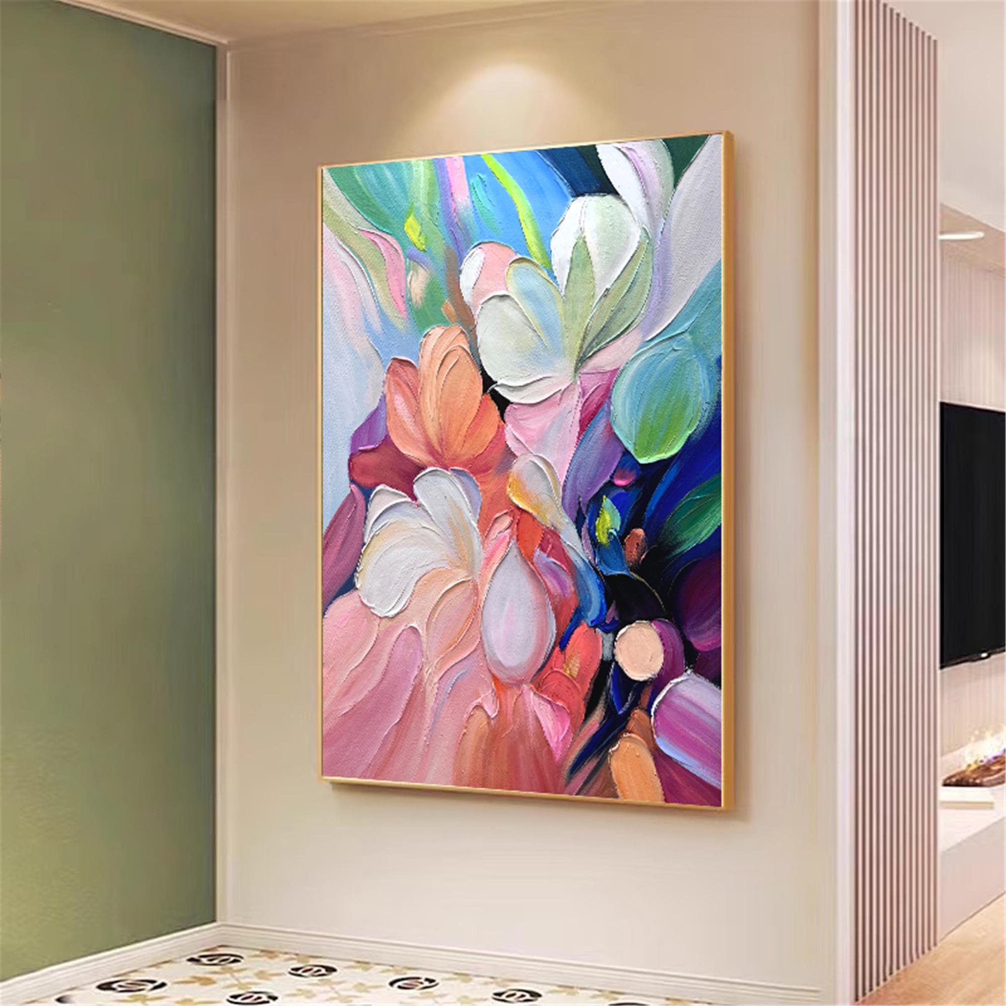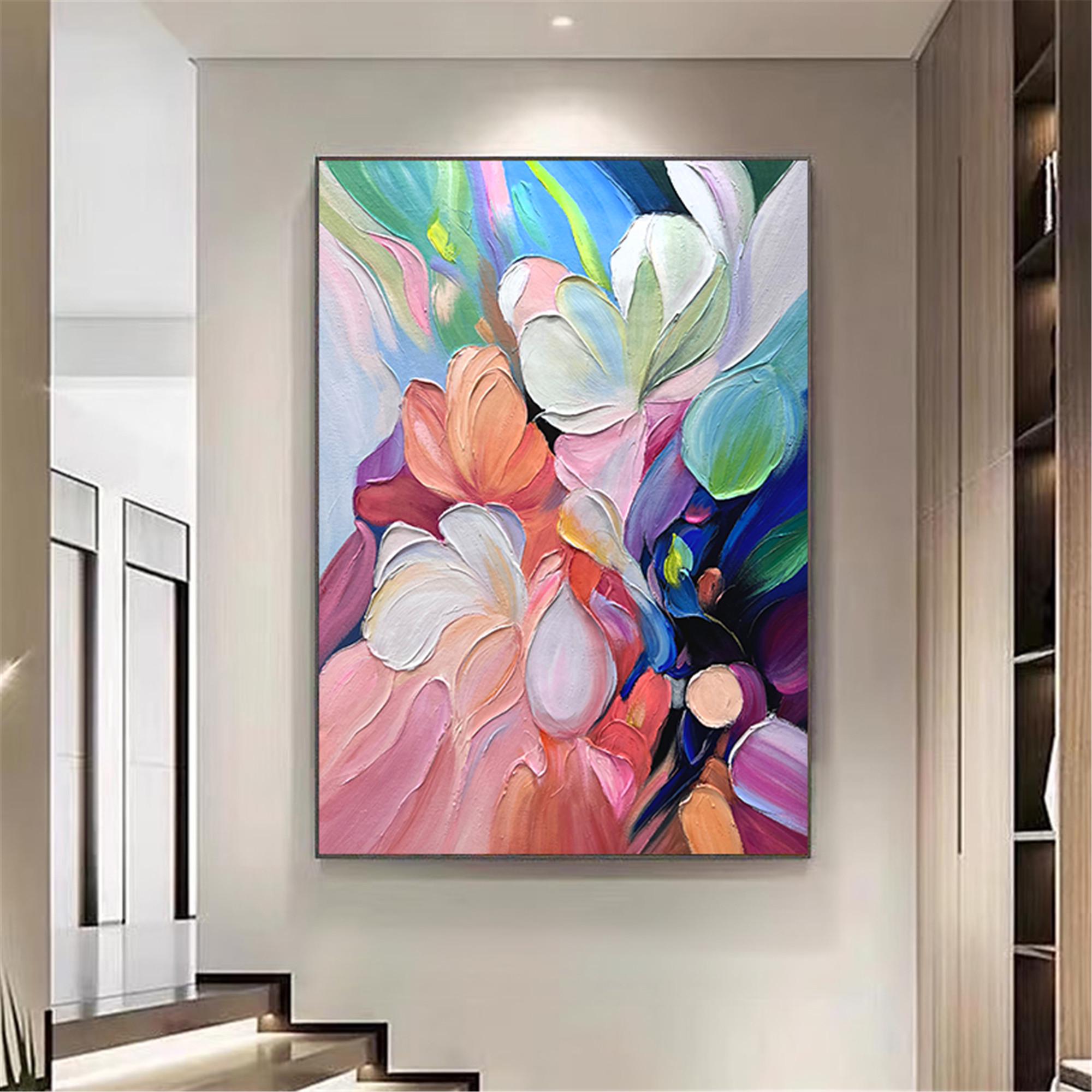 Textured wall art abstract Painting on Canvas, acrylic pink flower Palette Knife Art