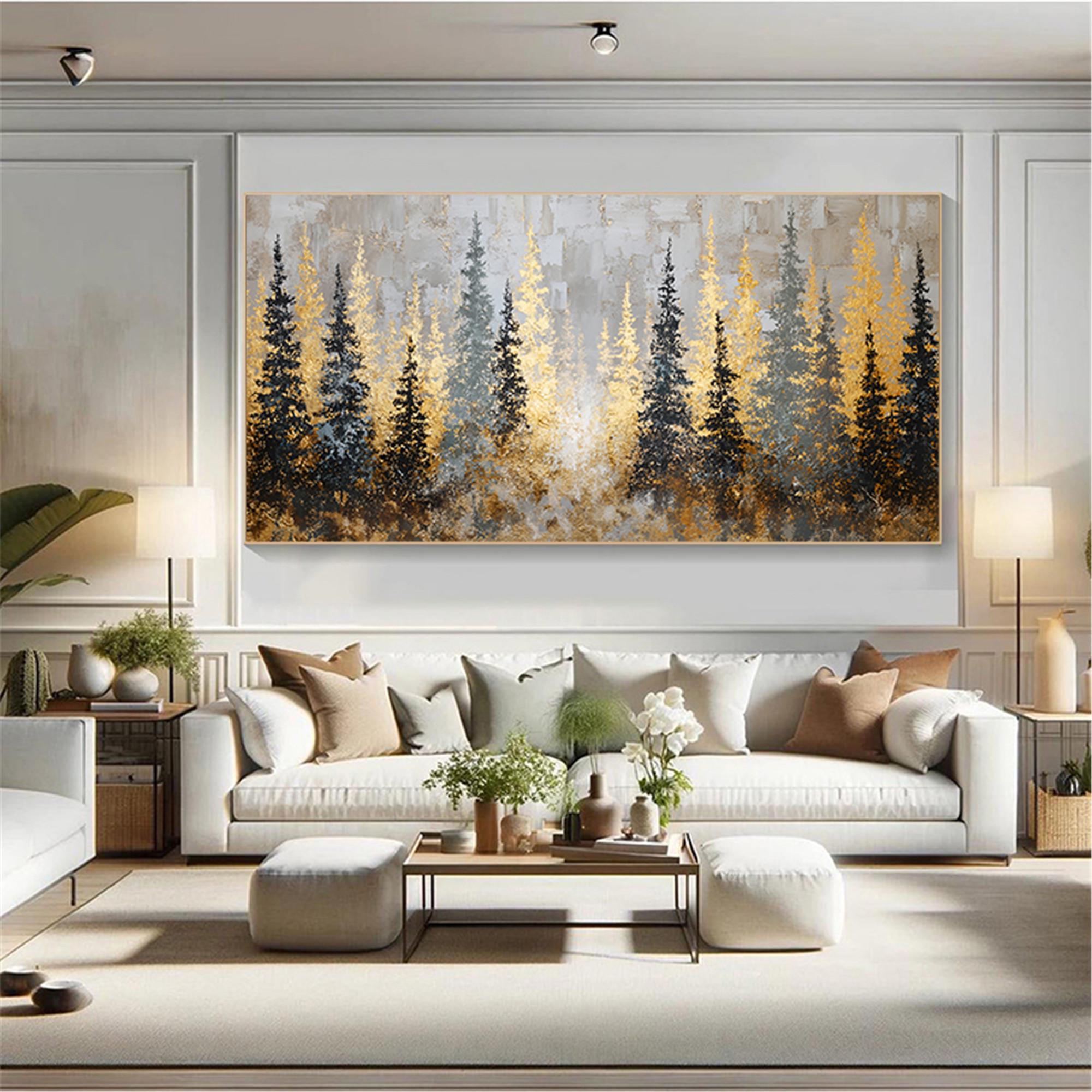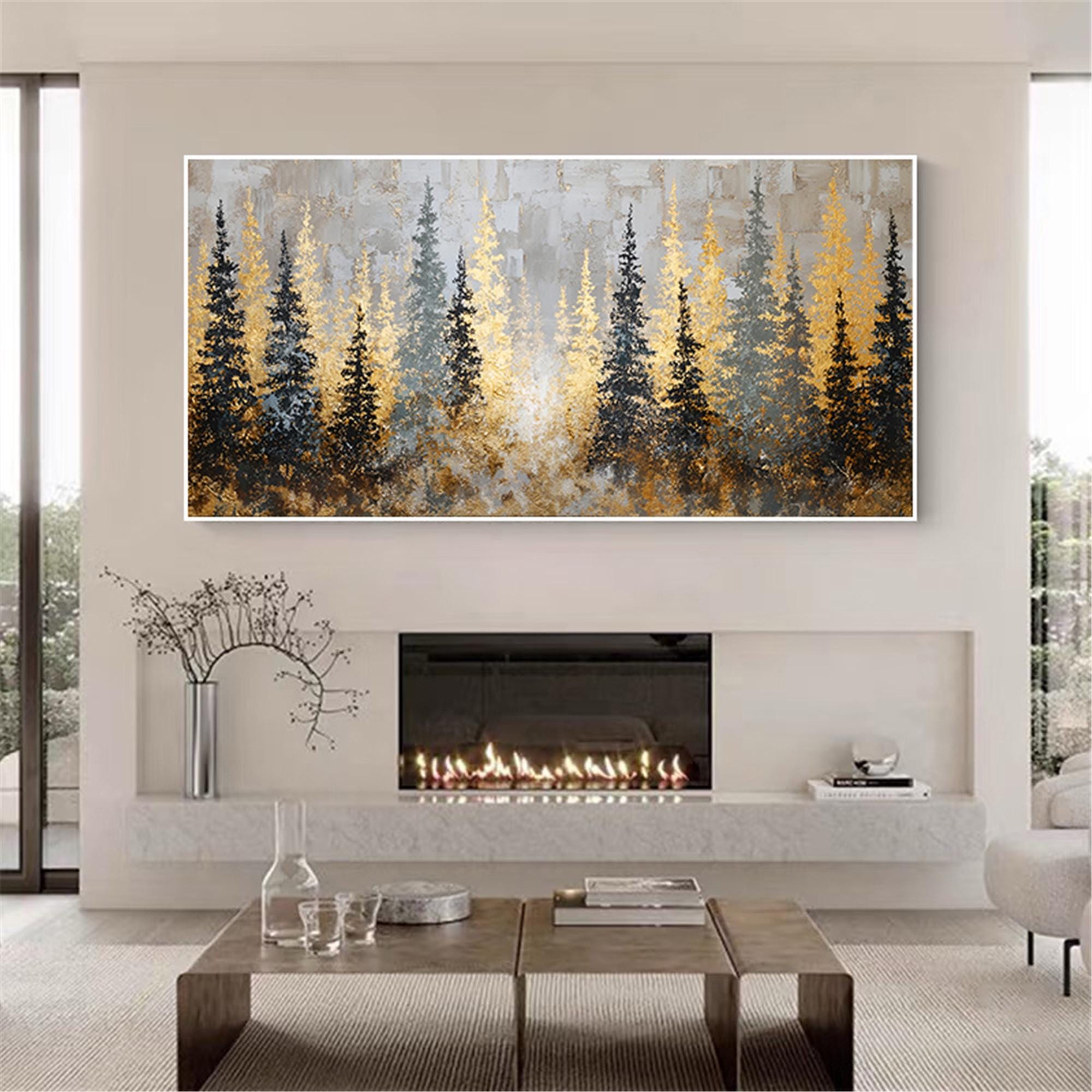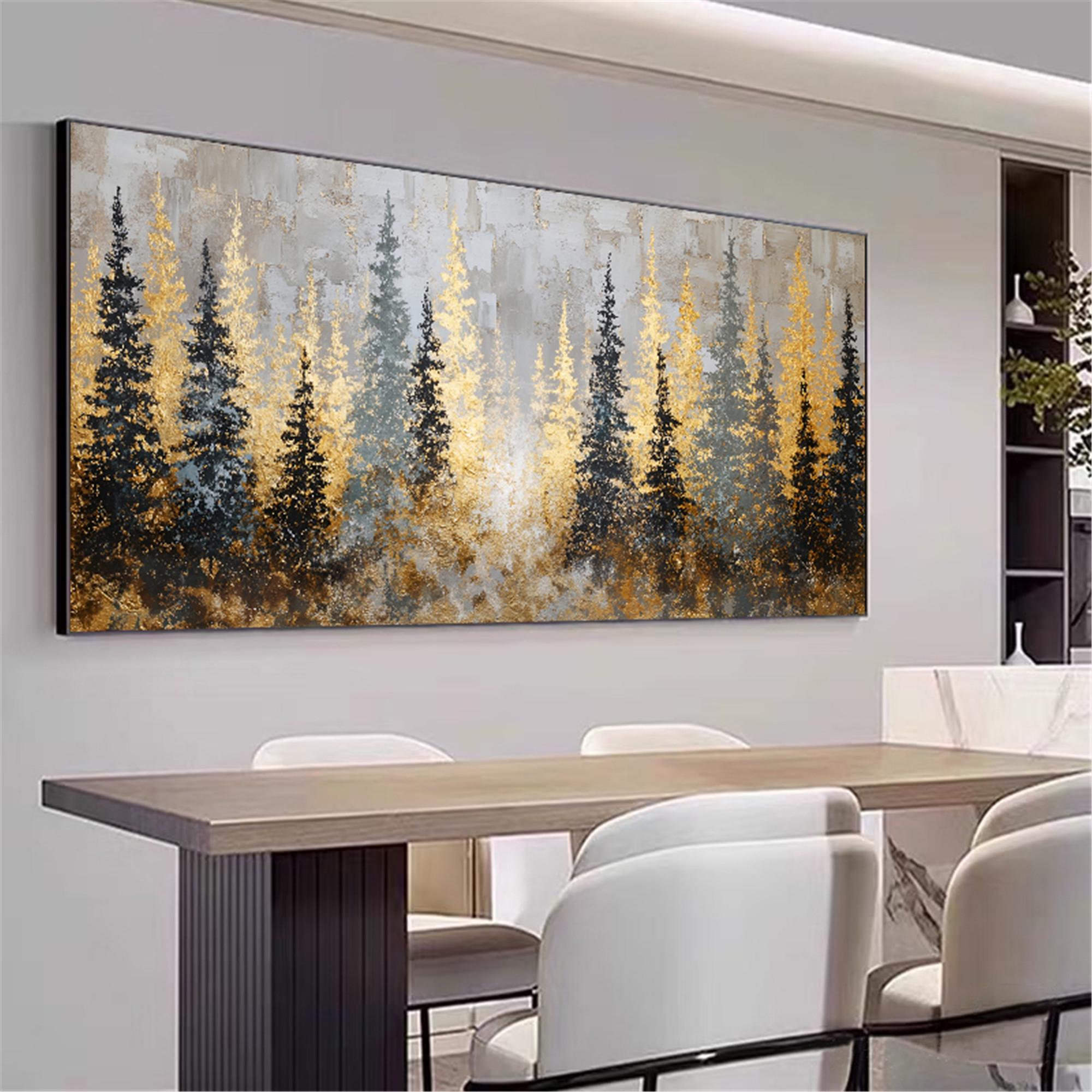 Textured gold art Forest Painting on Canvas,3D living room wall artAbstract mountains Artwork