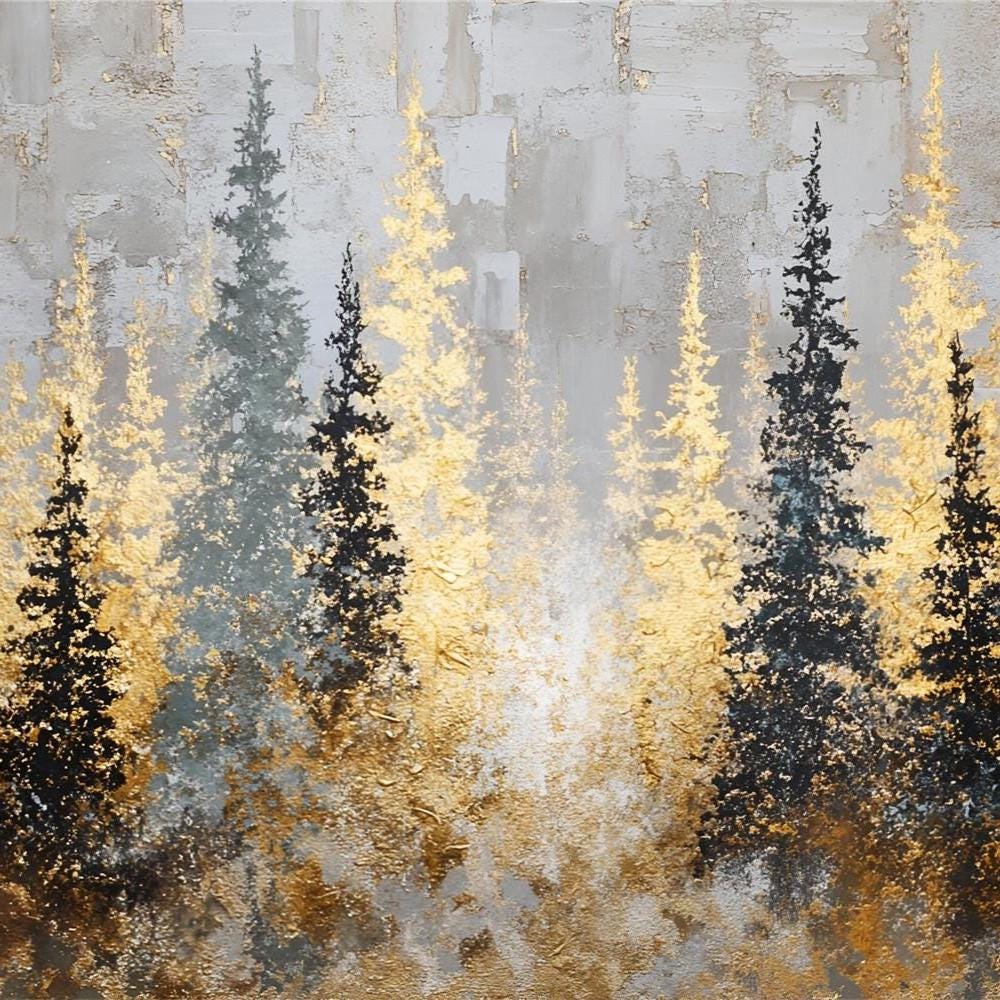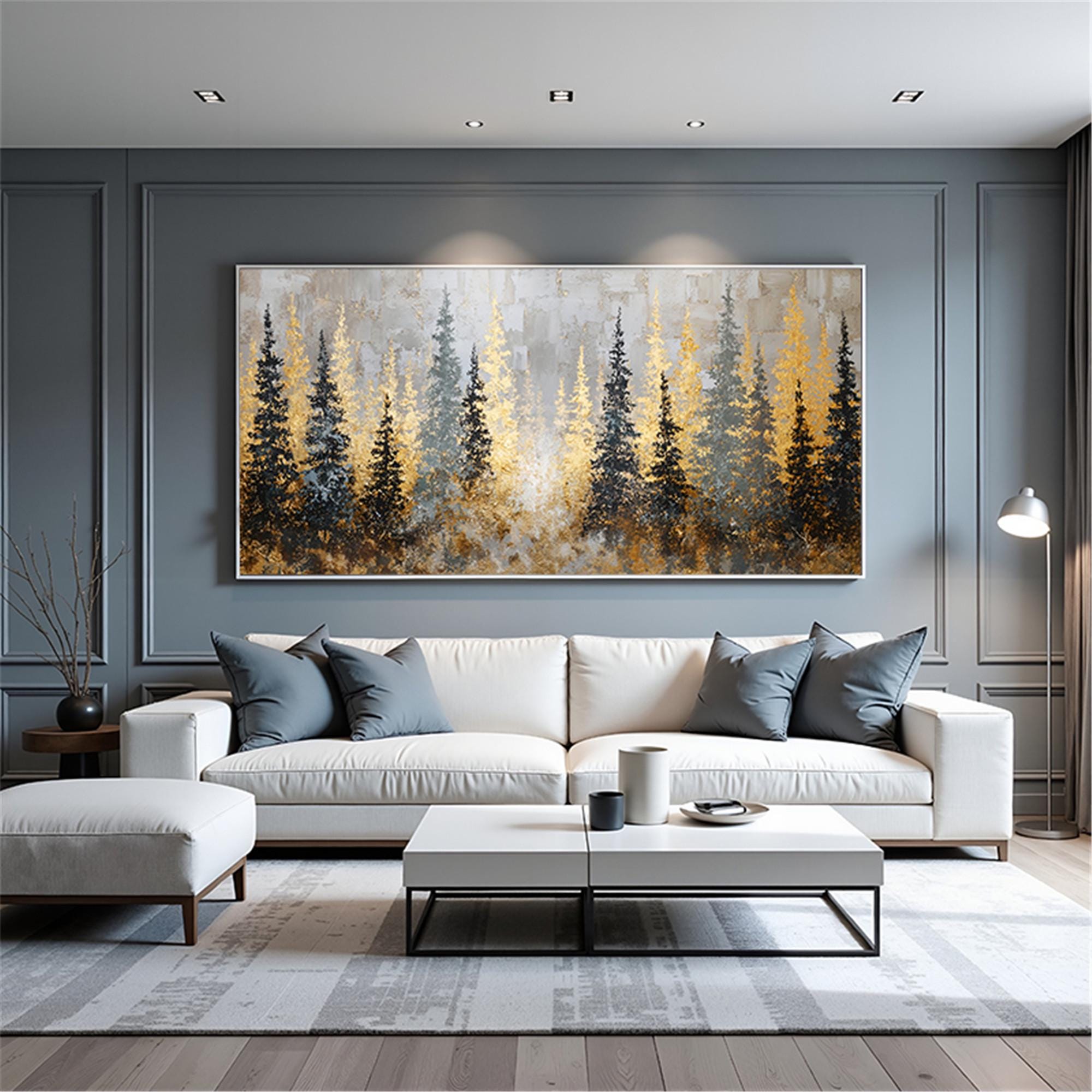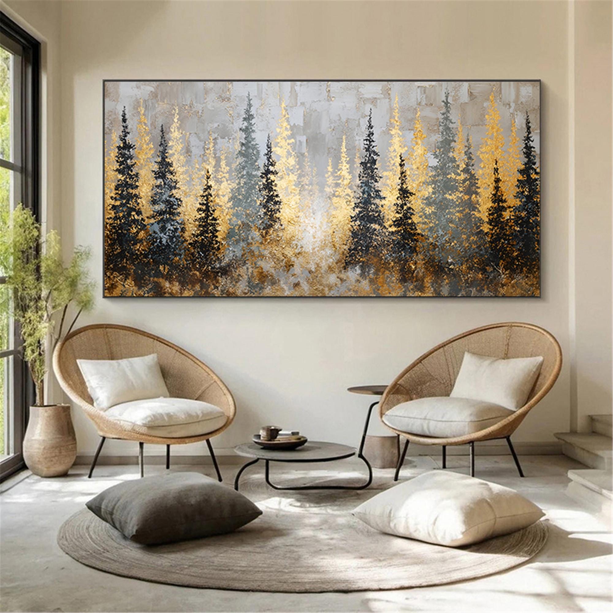 Textured gold art Forest Painting on Canvas,3D living room wall artAbstract mountains Artwork