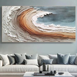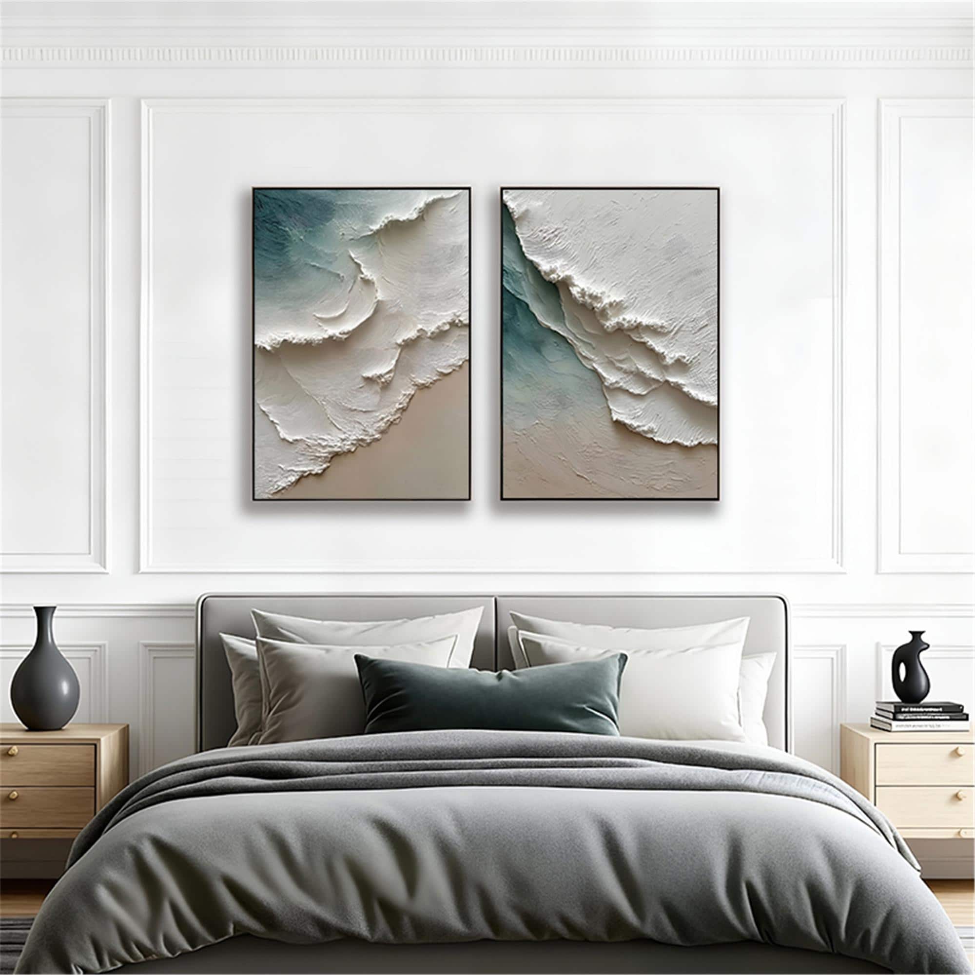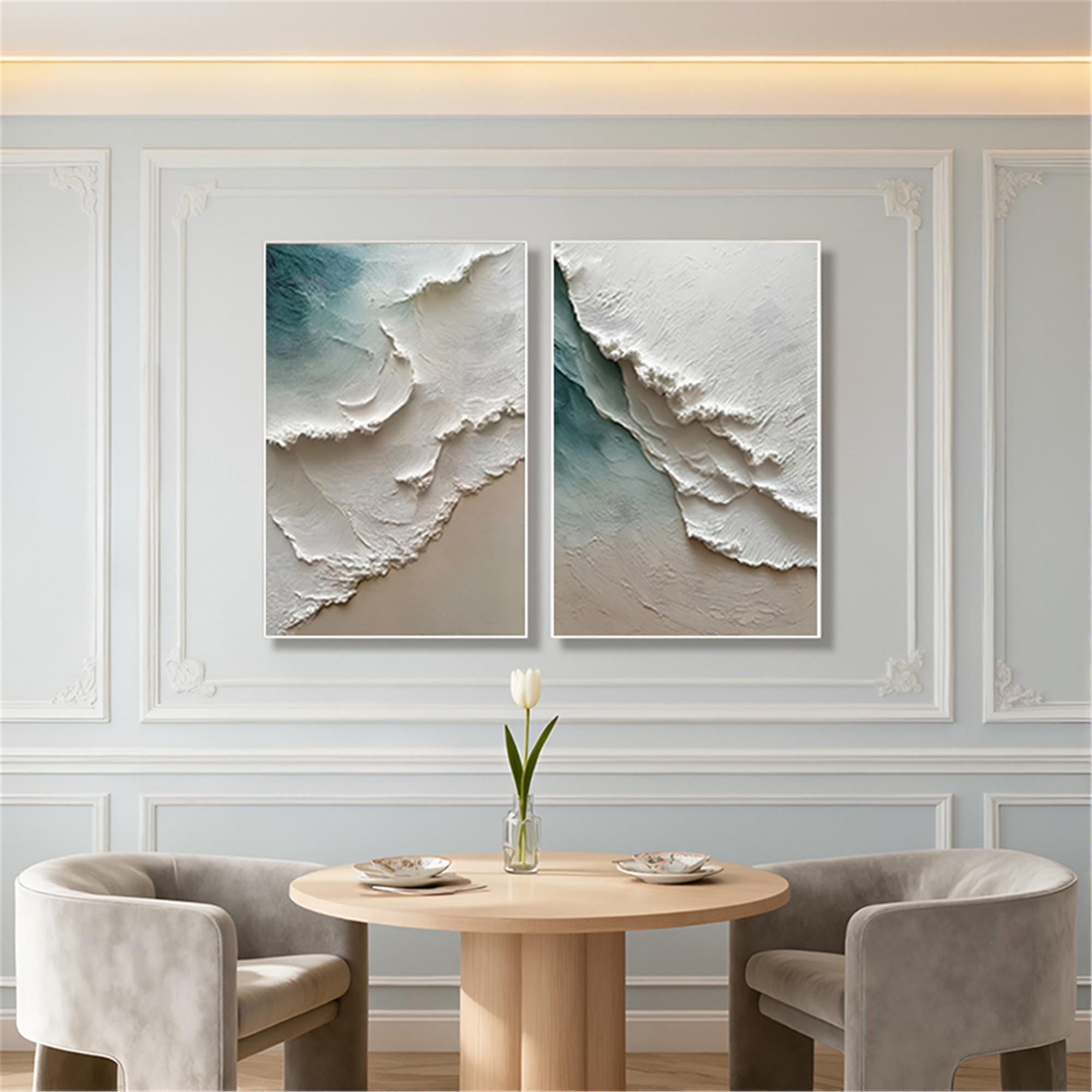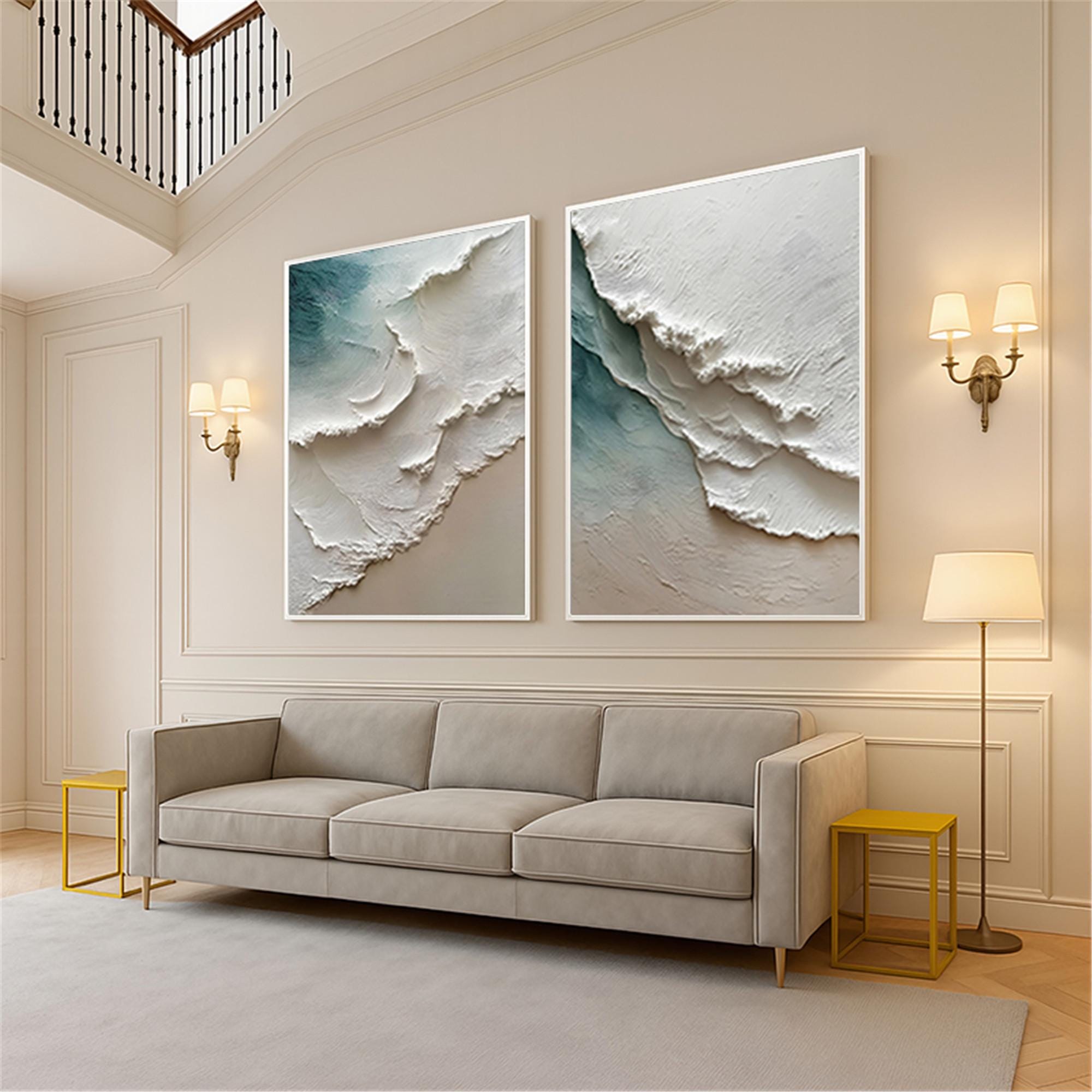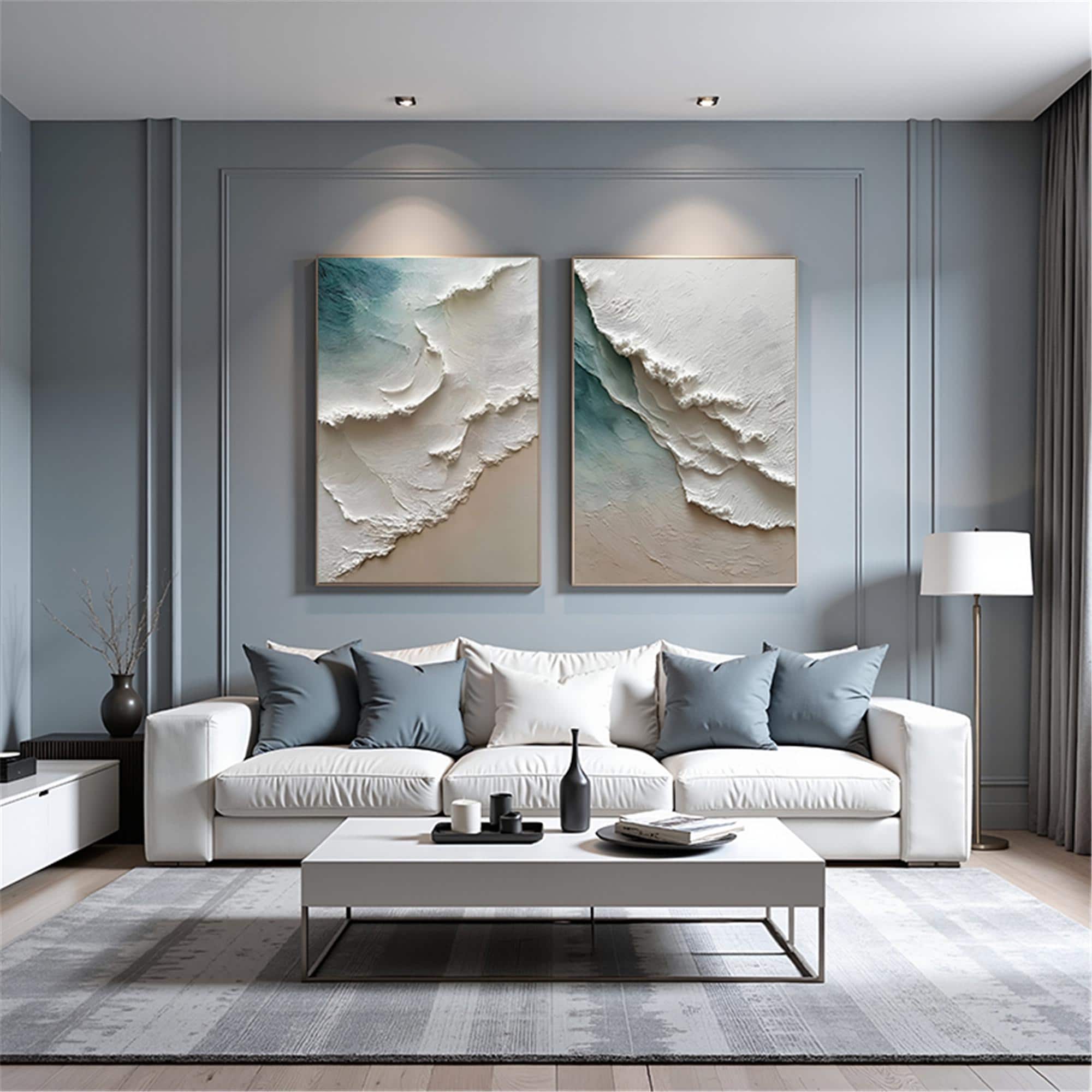 2 sets textured Wall art,living room painting on canvas,abstract ocean wave art