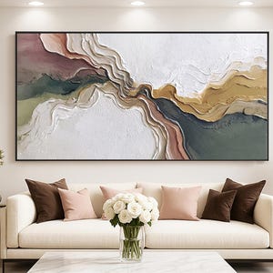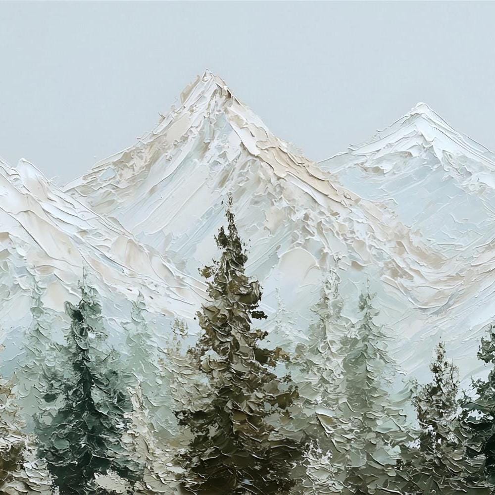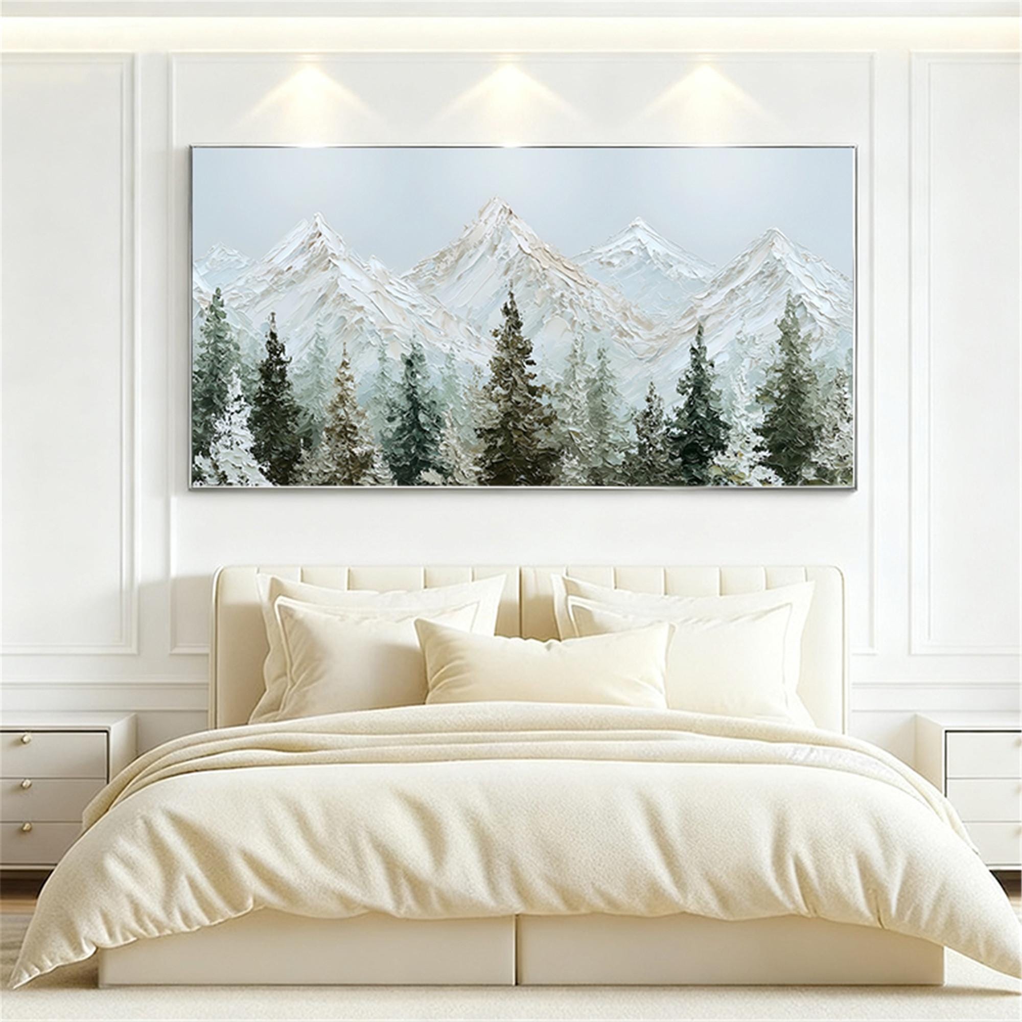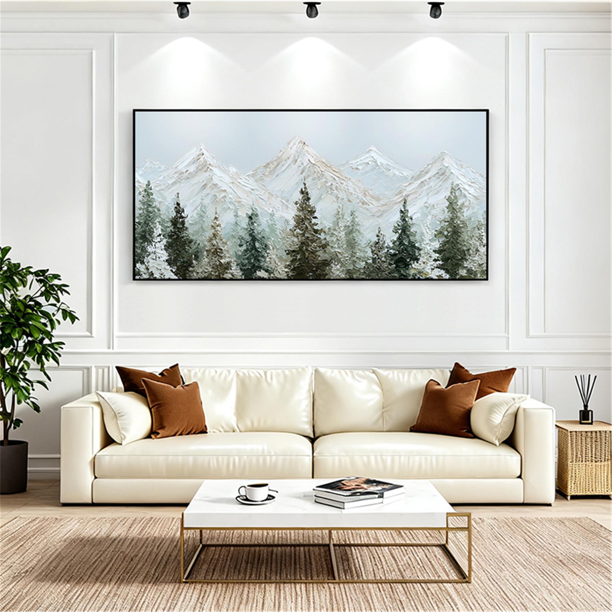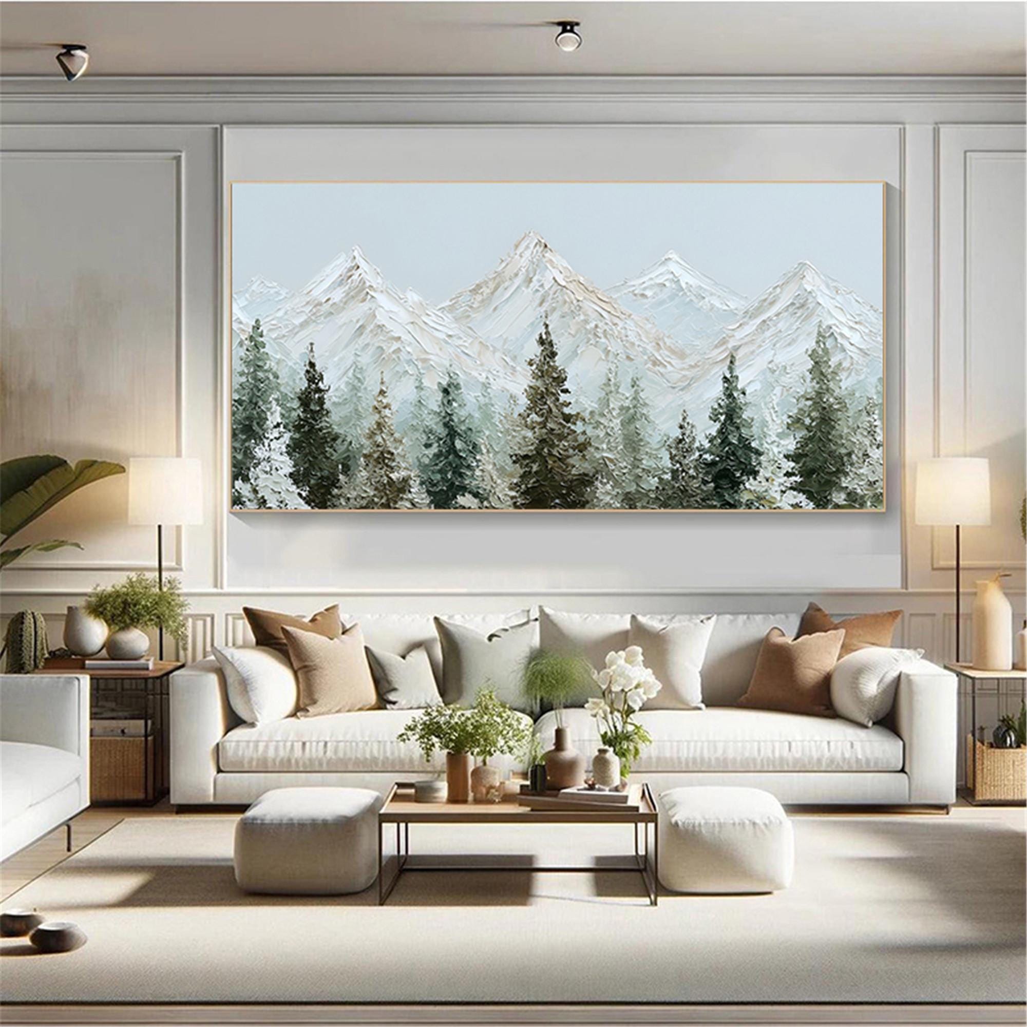 3DTextured green Forest Painting on Canvas,living room wall art,Abstract snow mountain decor