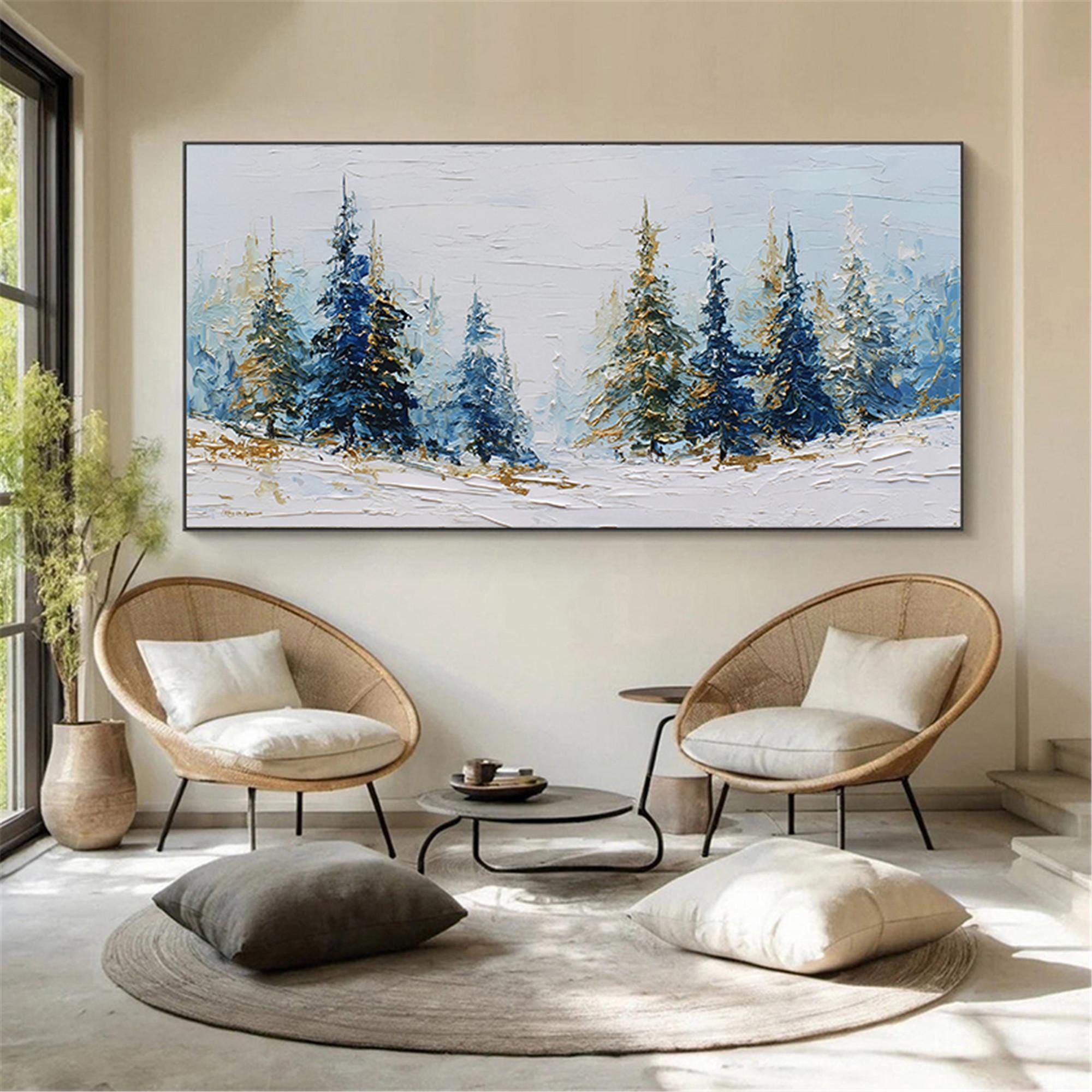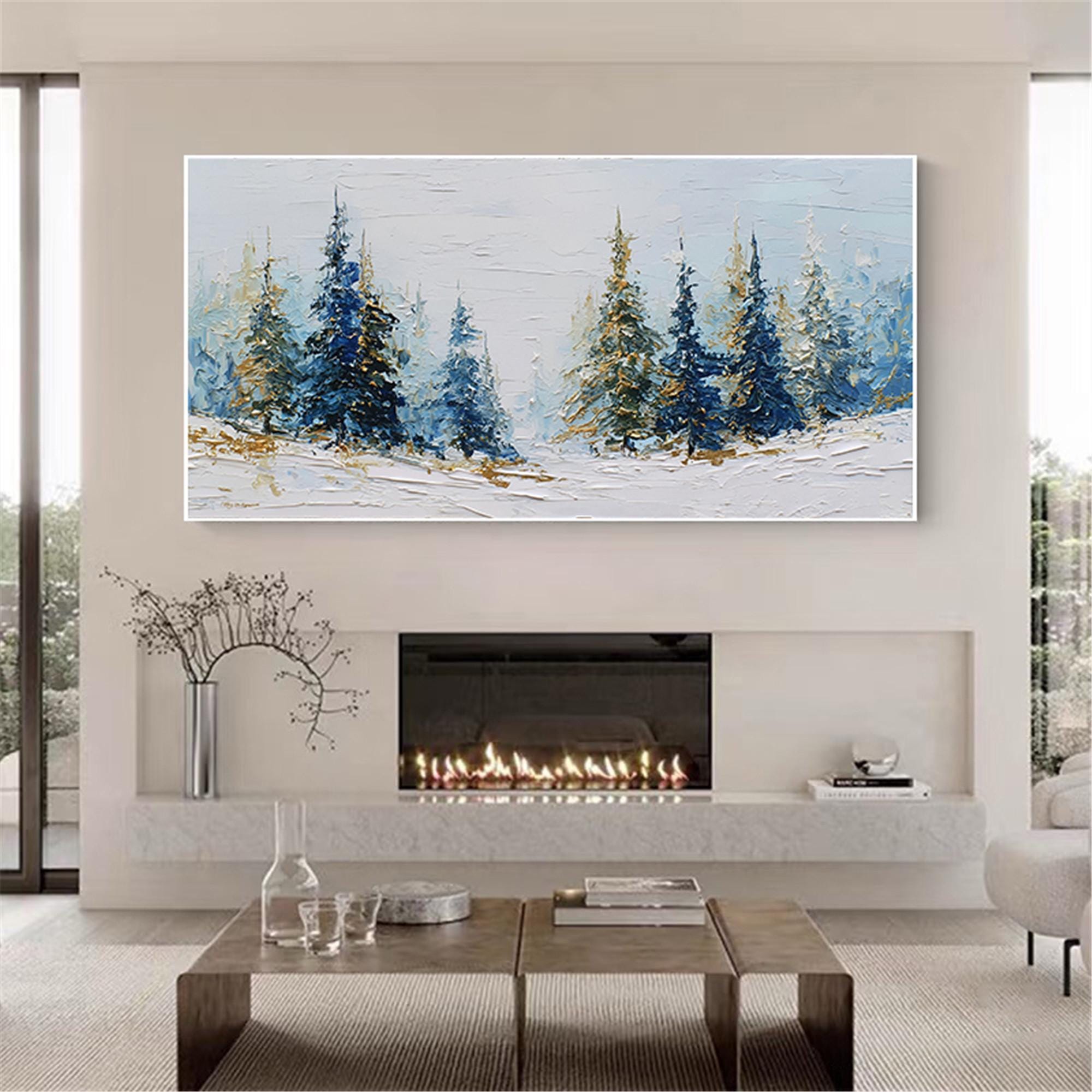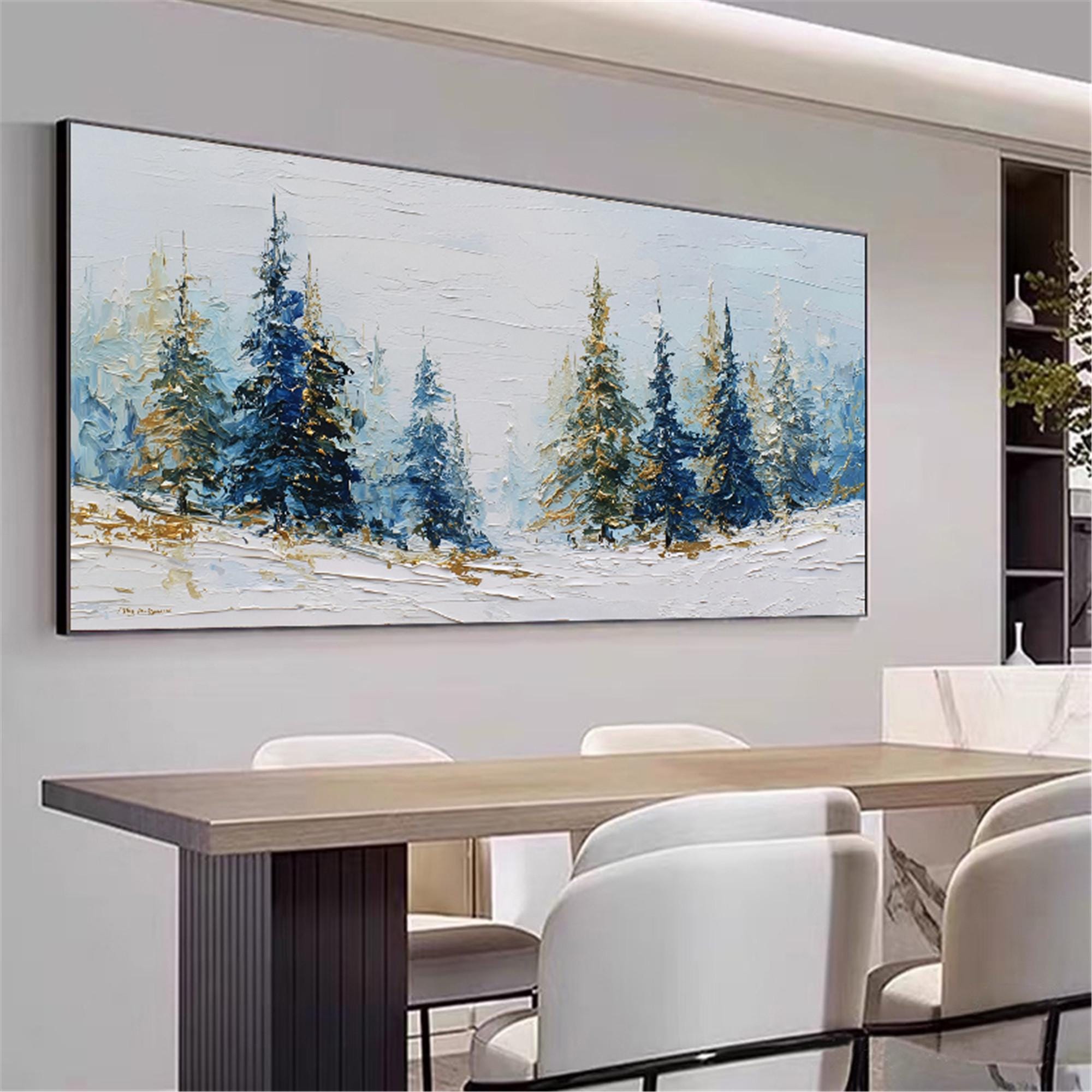 3D Textured Snow Forest living room Wall Art Original Winter Mountain Painting On Canvas