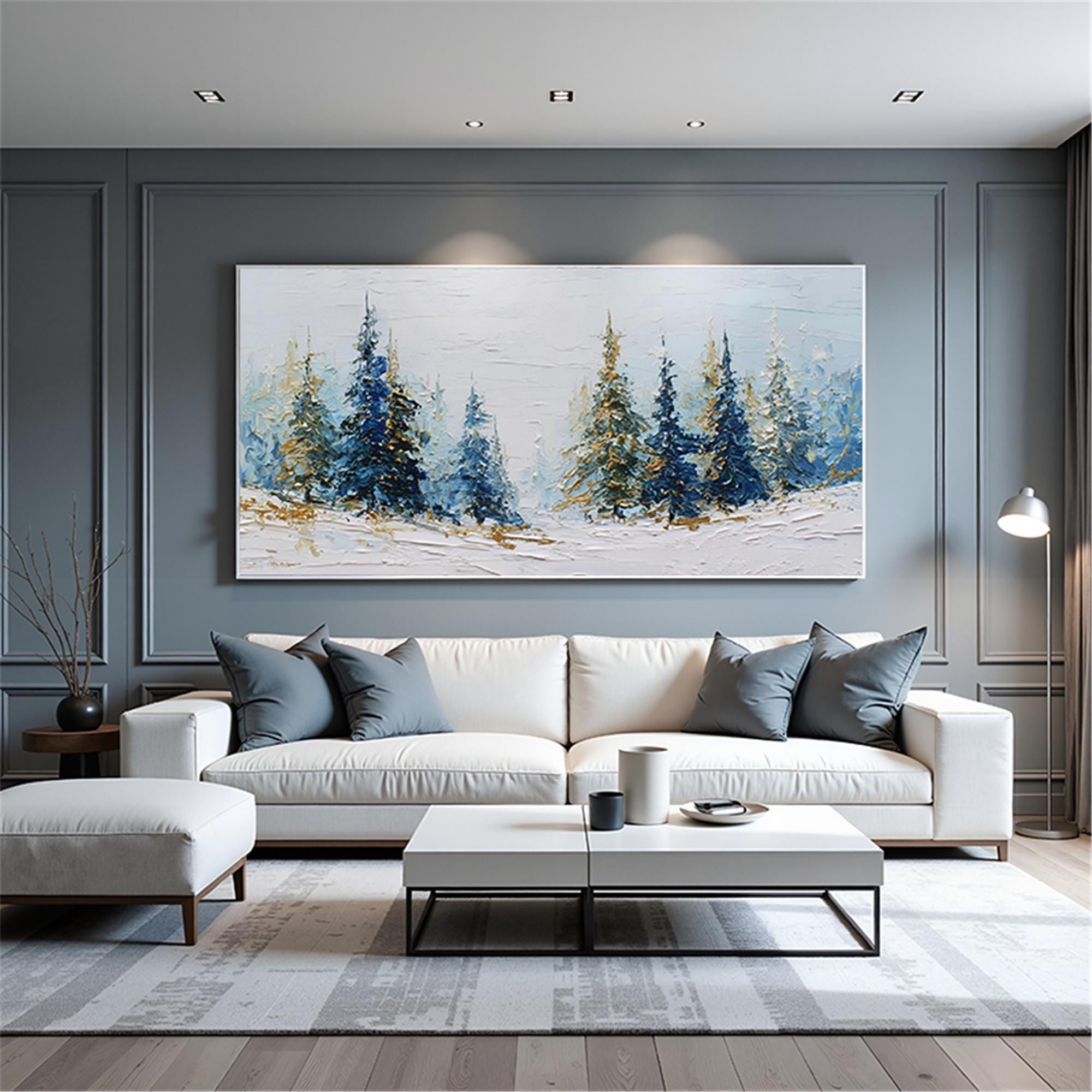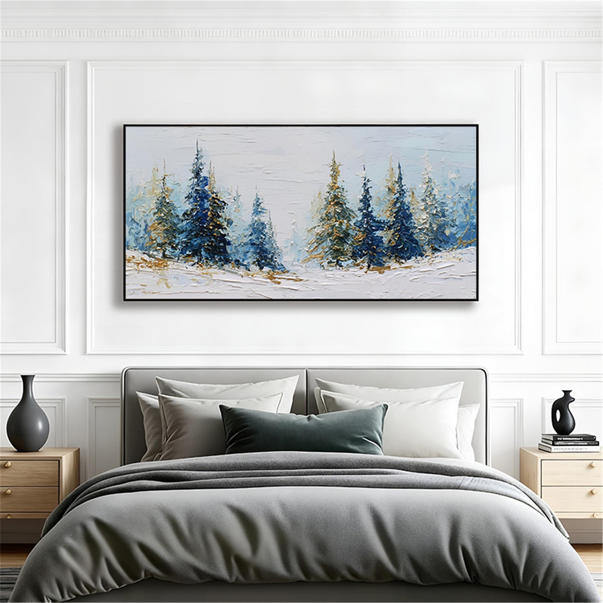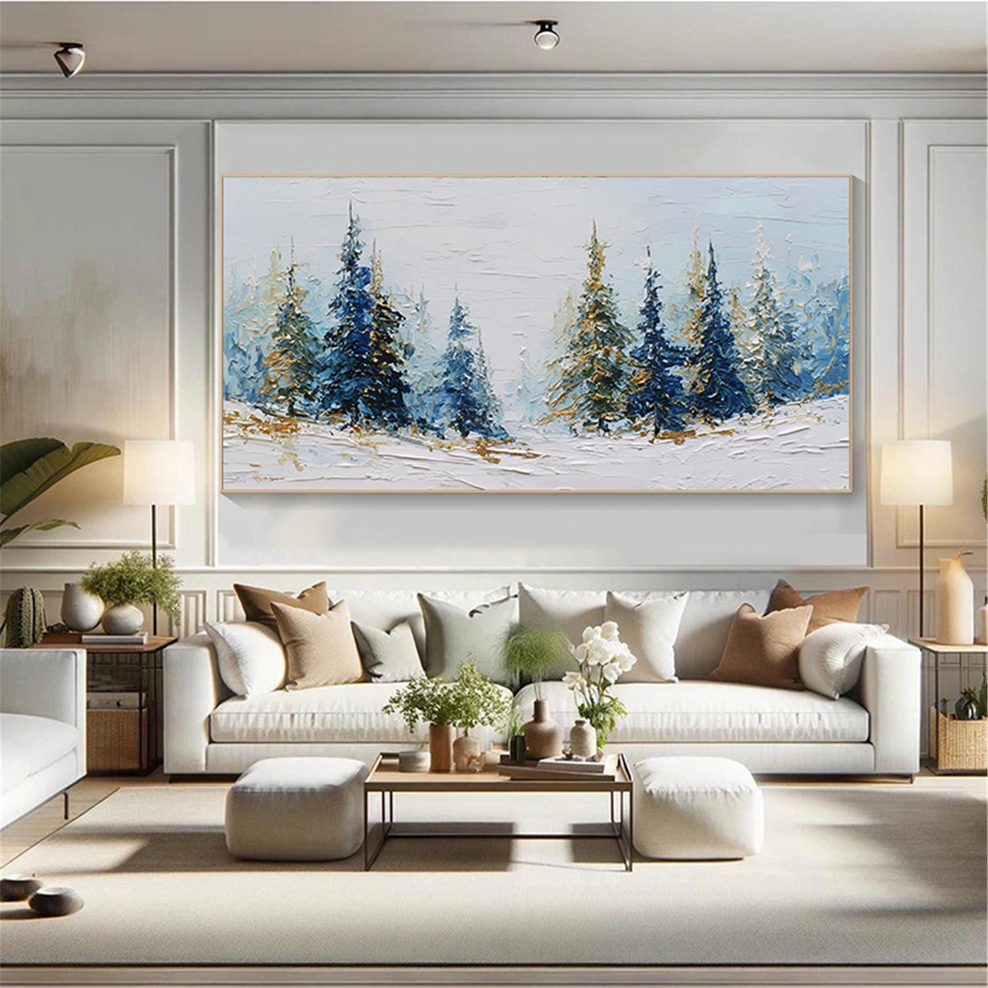 3D Textured Snow Forest living room Wall Art Original Winter Mountain Painting On Canvas