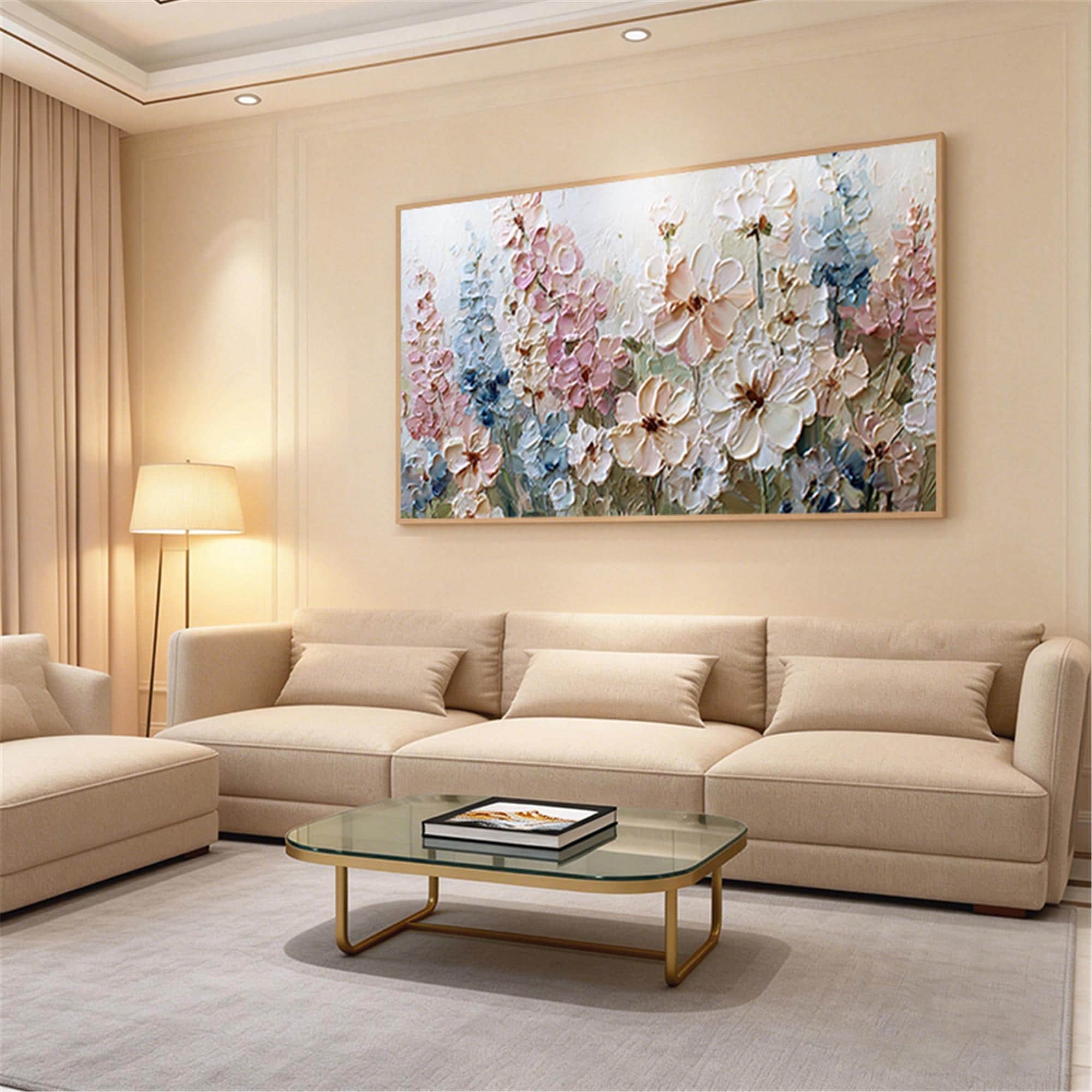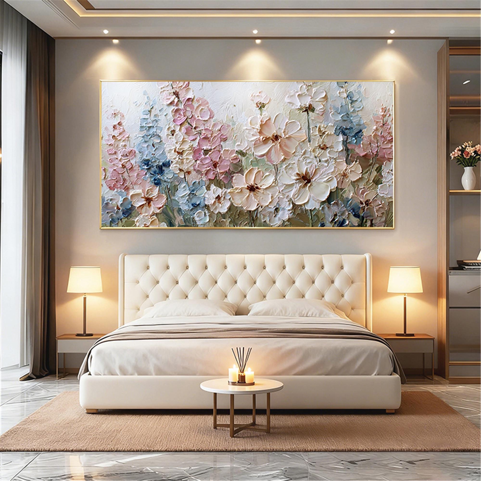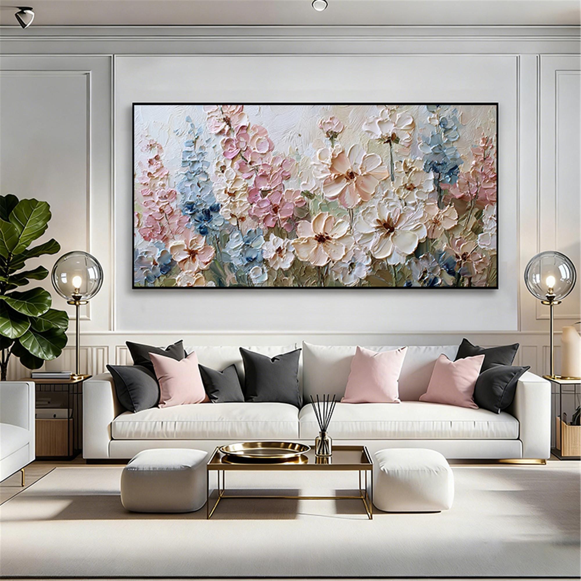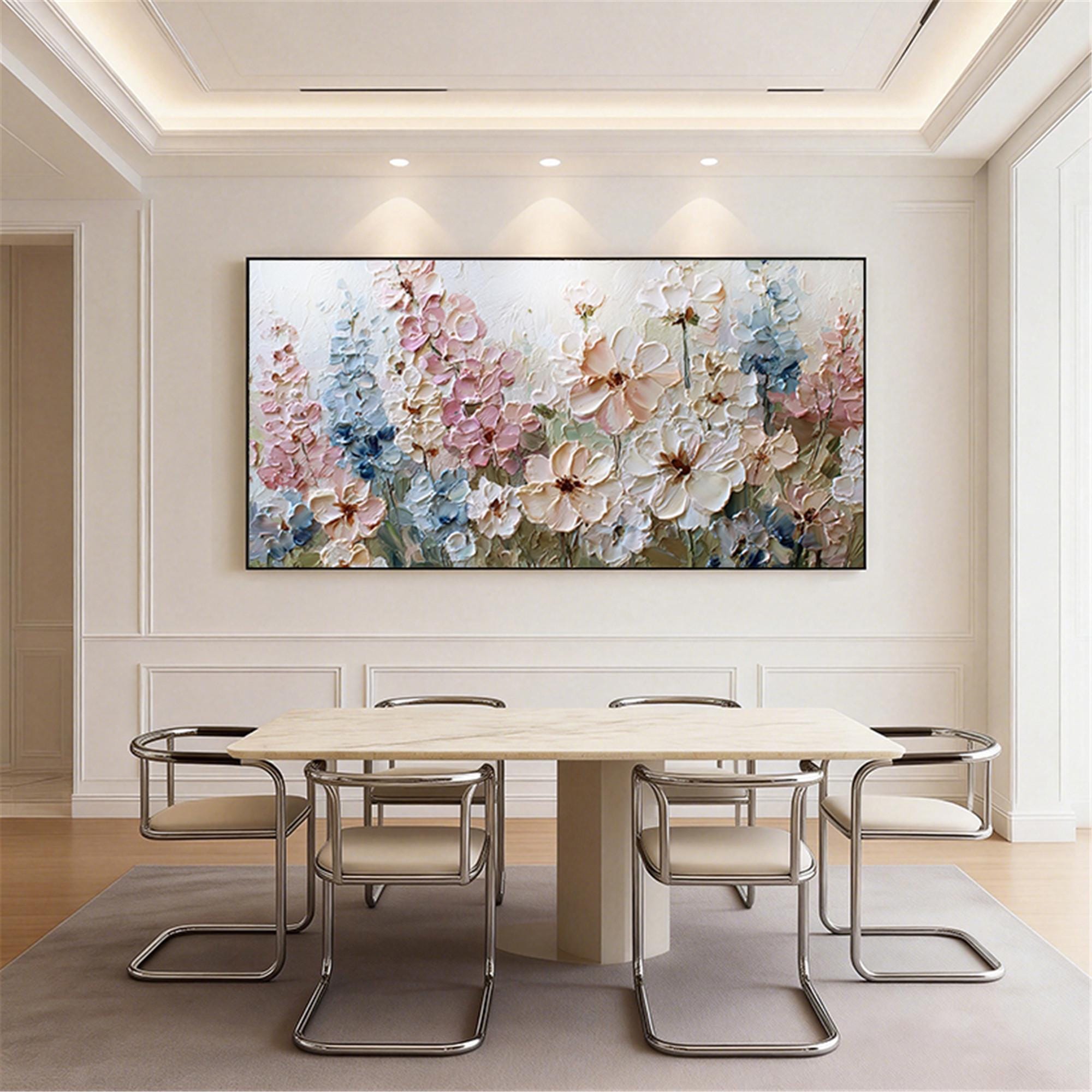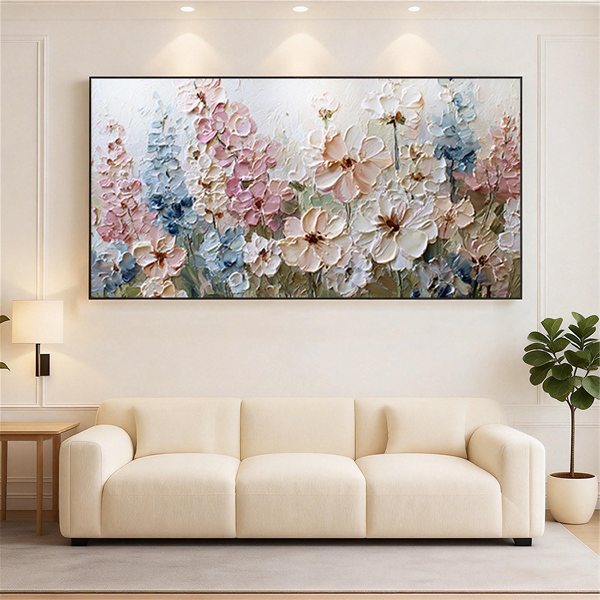 3DTextured Pink Floral Abstract Painting On Canvas,living room Wall Art,custom wall decor
