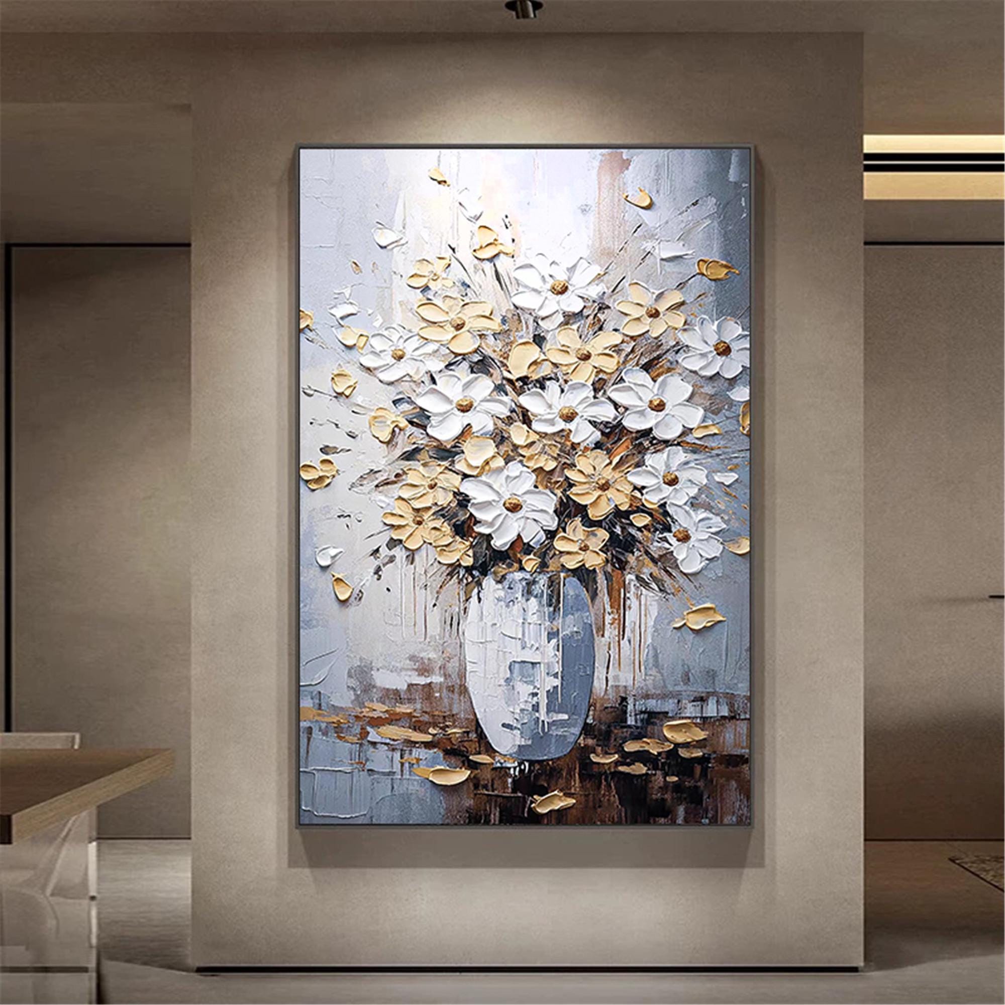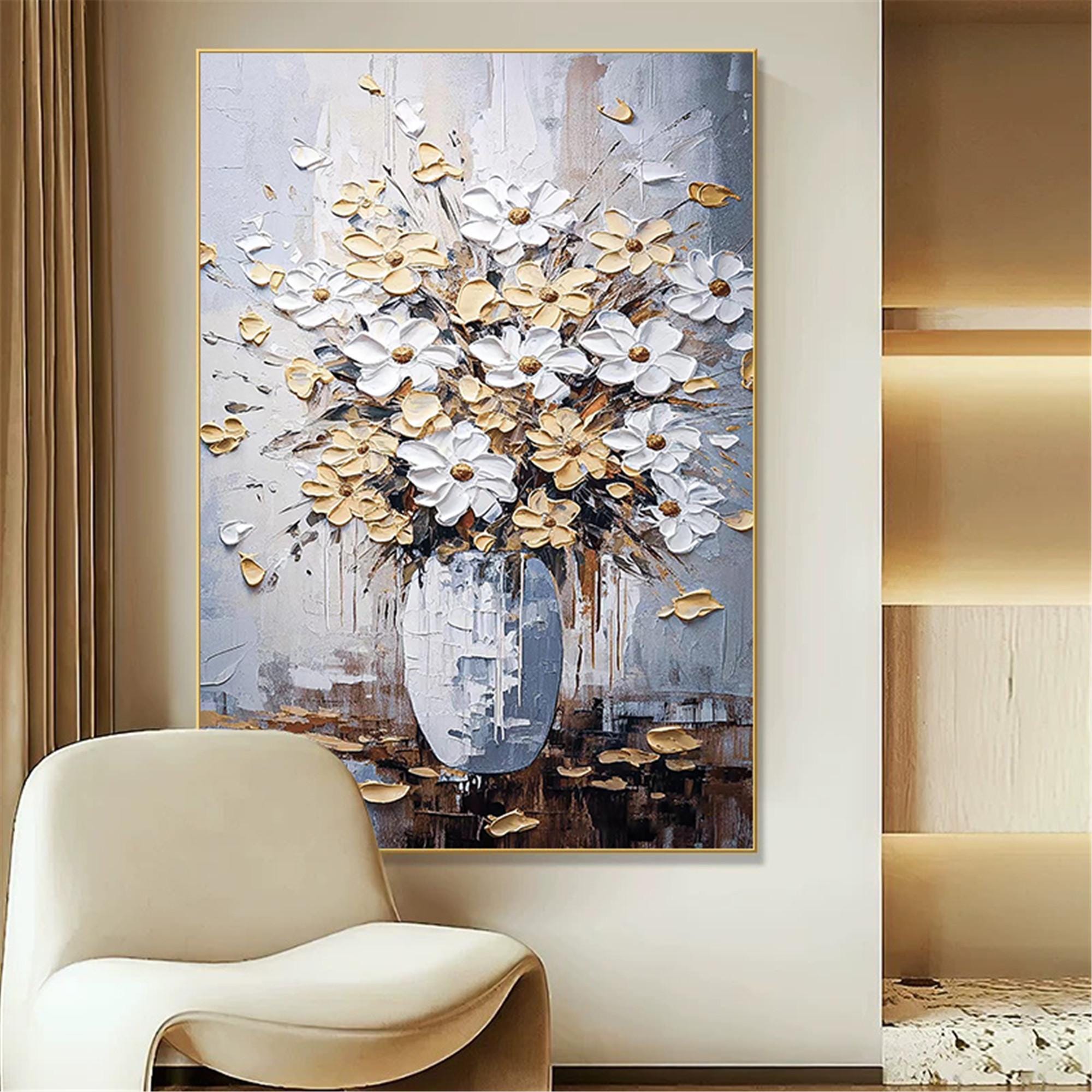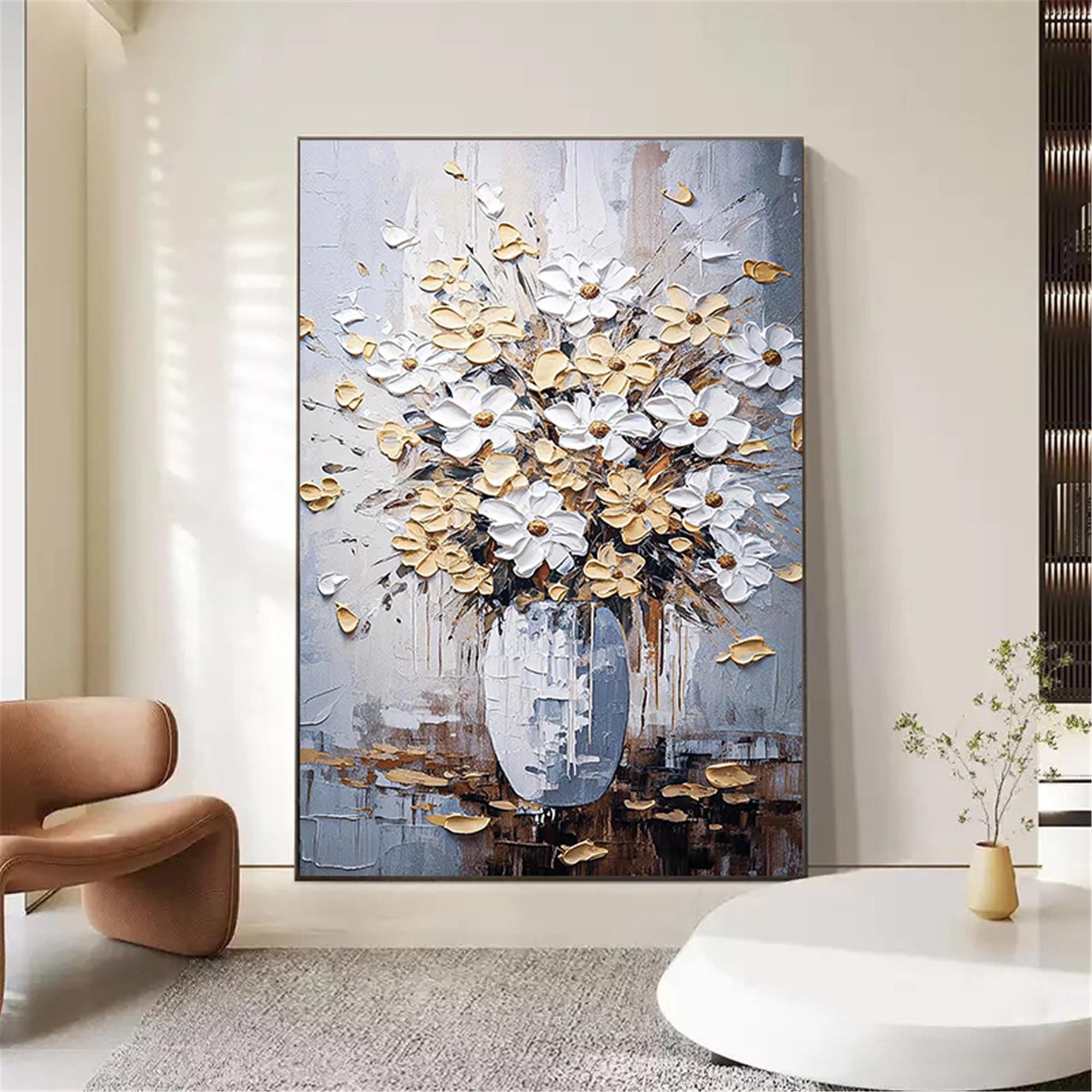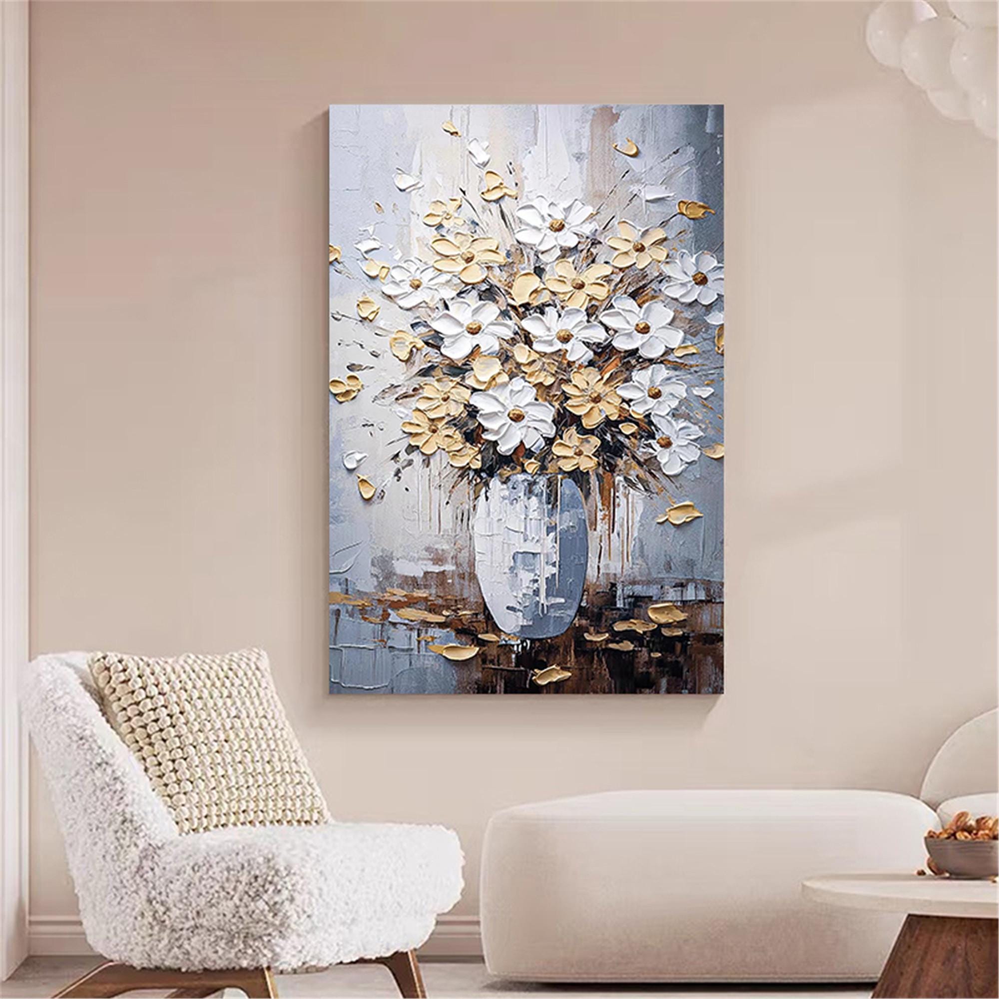 Abstract Floral Oil Painting,Modern Flower Wall Art on Canvas,blueBotanical Living Room Artwork