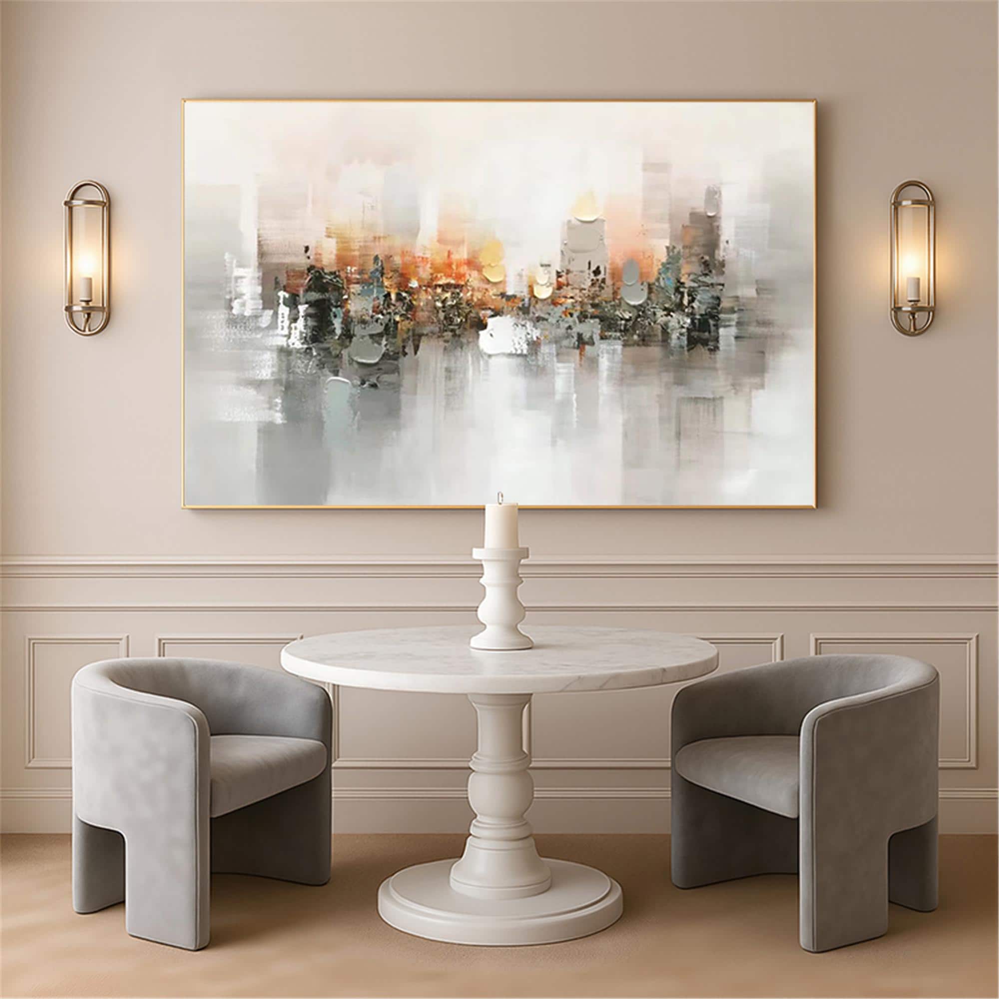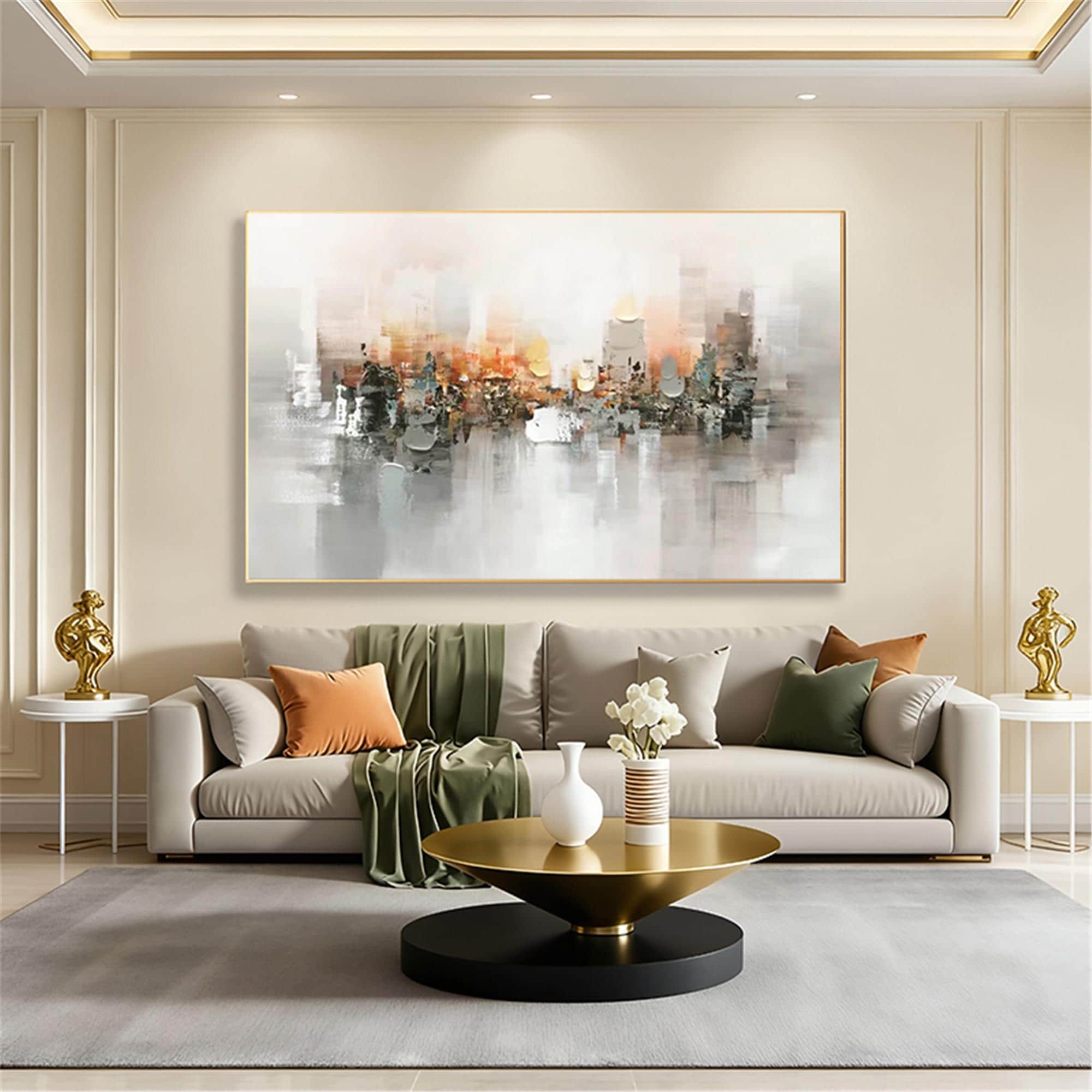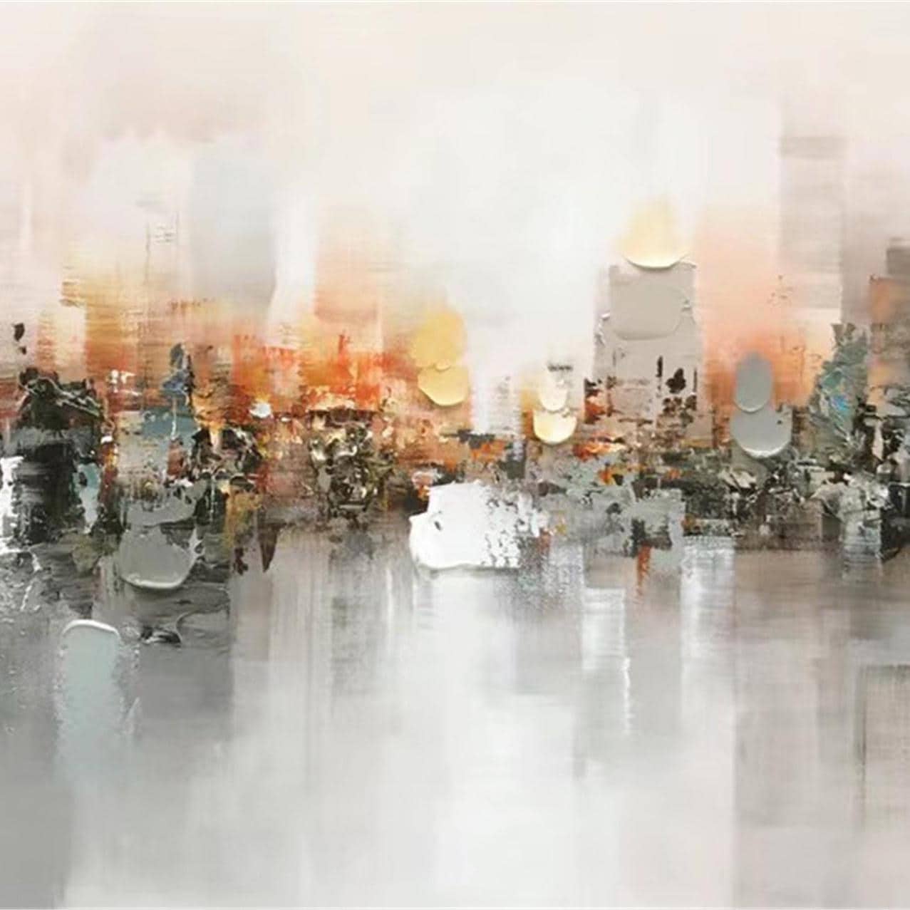 Abstract city landscape Painting on canvas,living room wall art,modern acrylic home decor