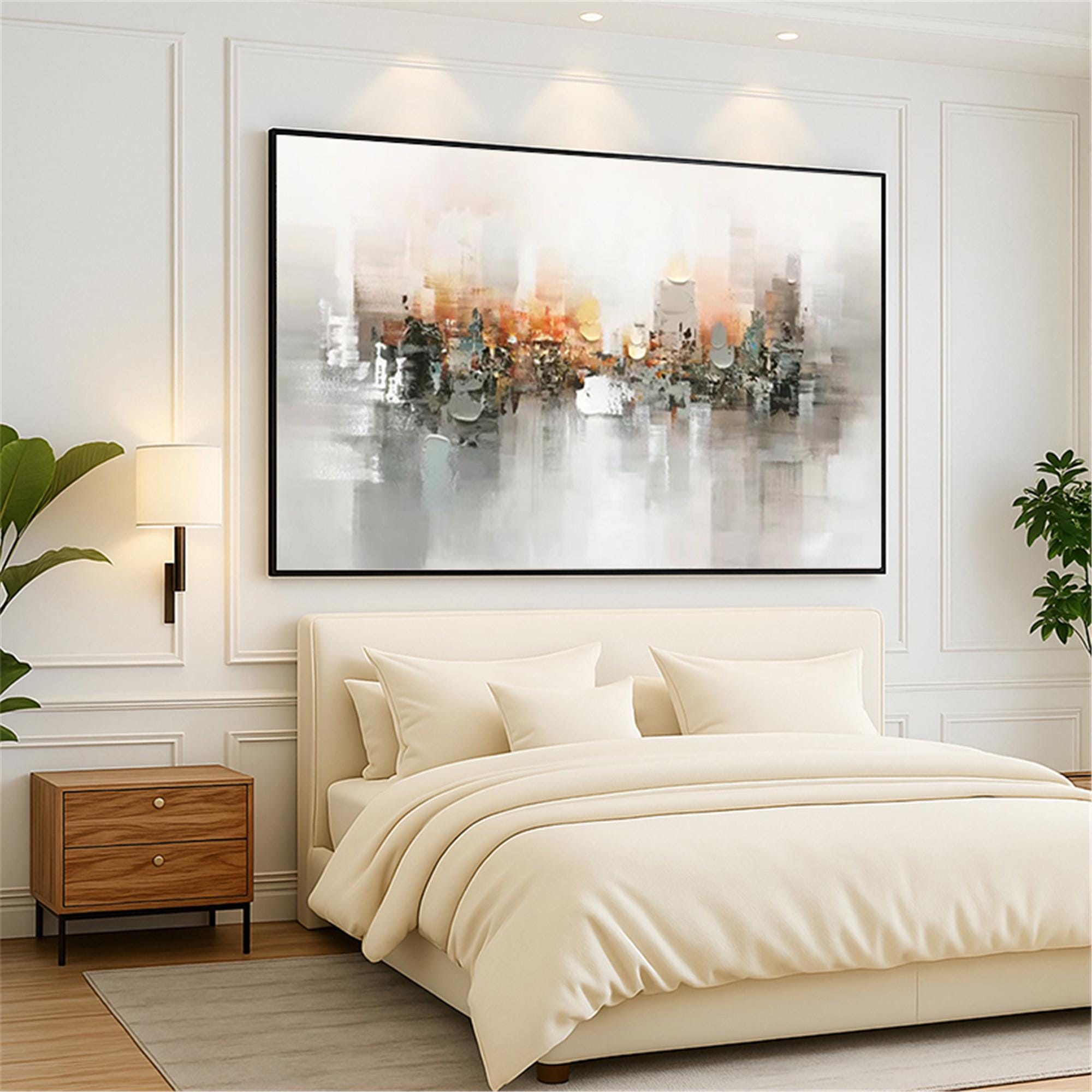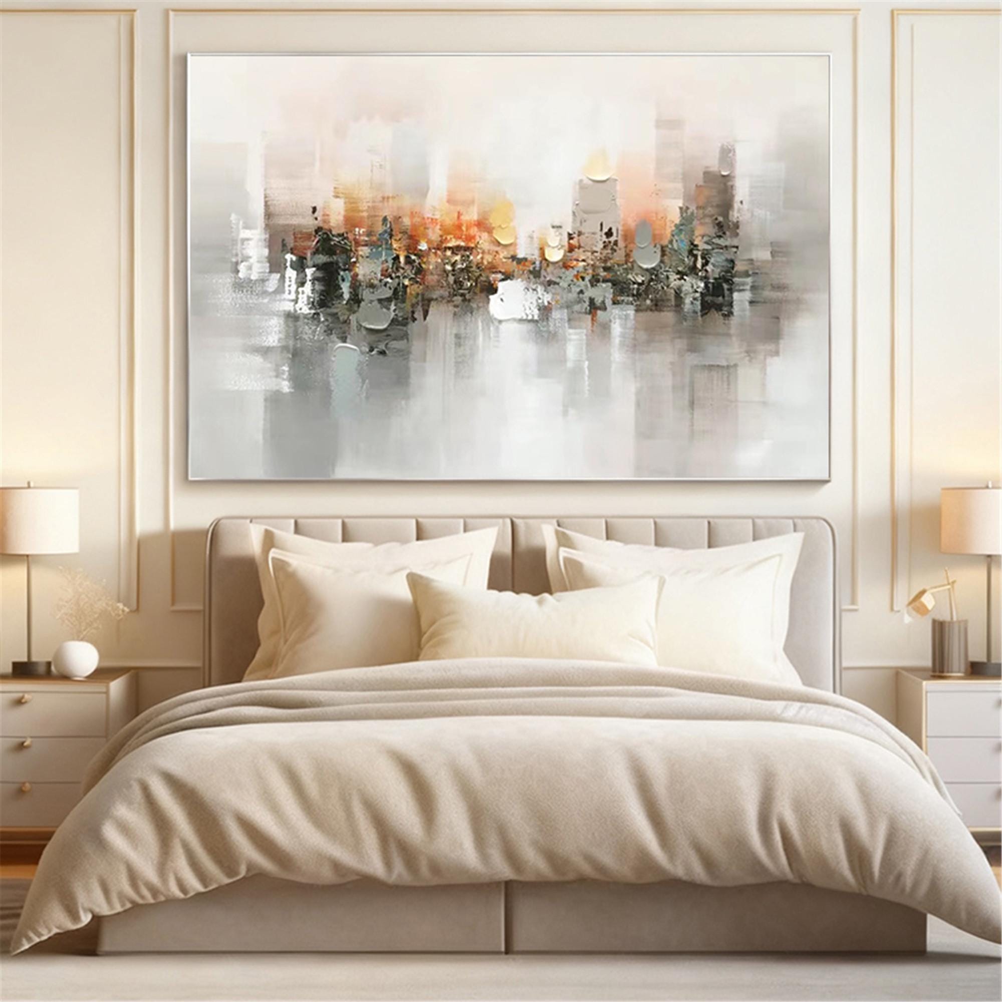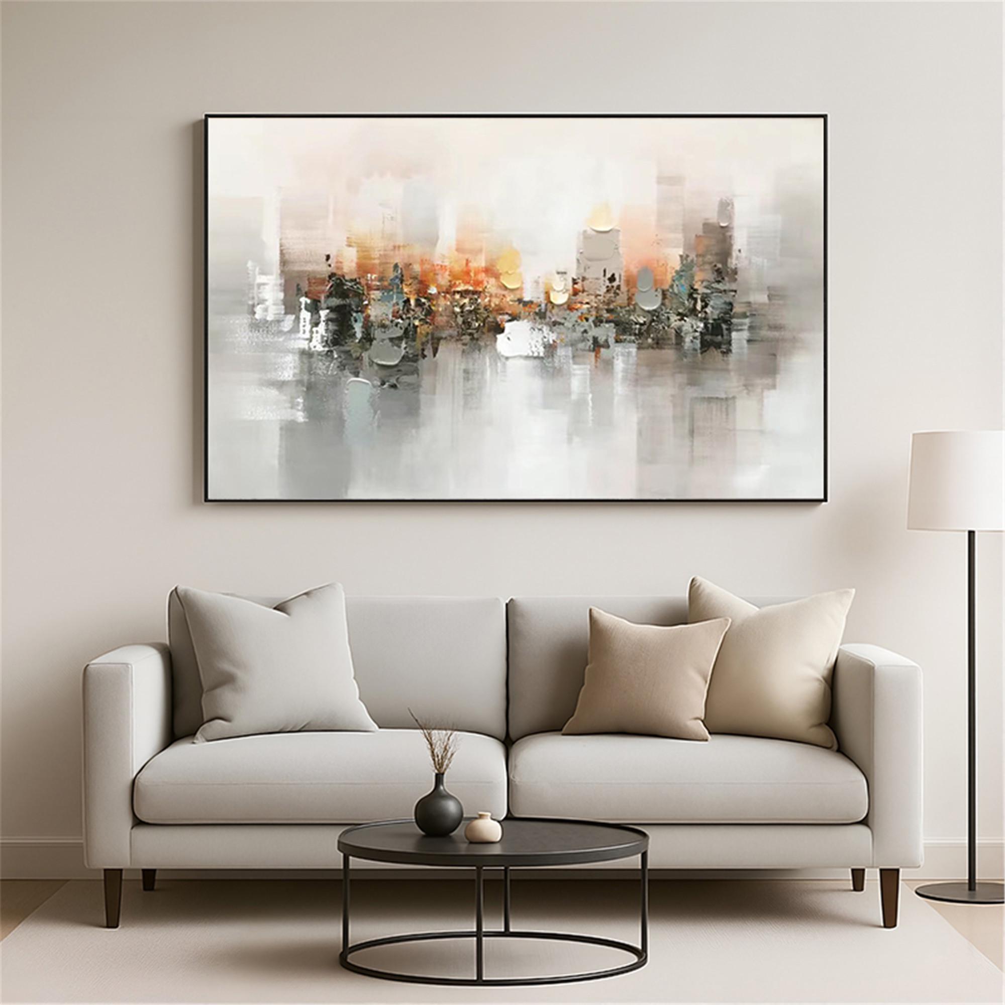Abstract city landscape Painting on canvas,living room wall art,modern acrylic home decor