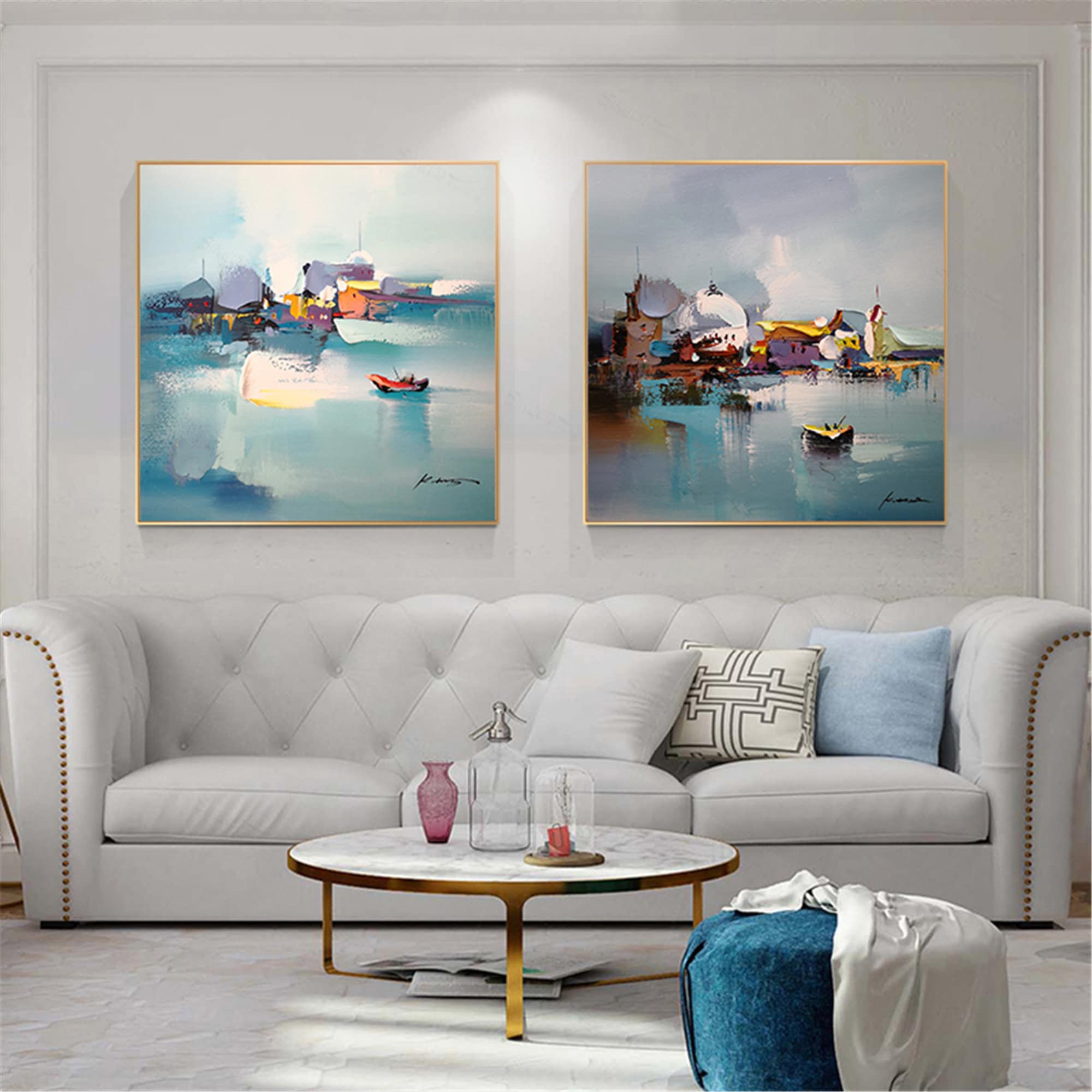 🔆Border: The canvas painting without frame will leave 2 inches white /color border for frame