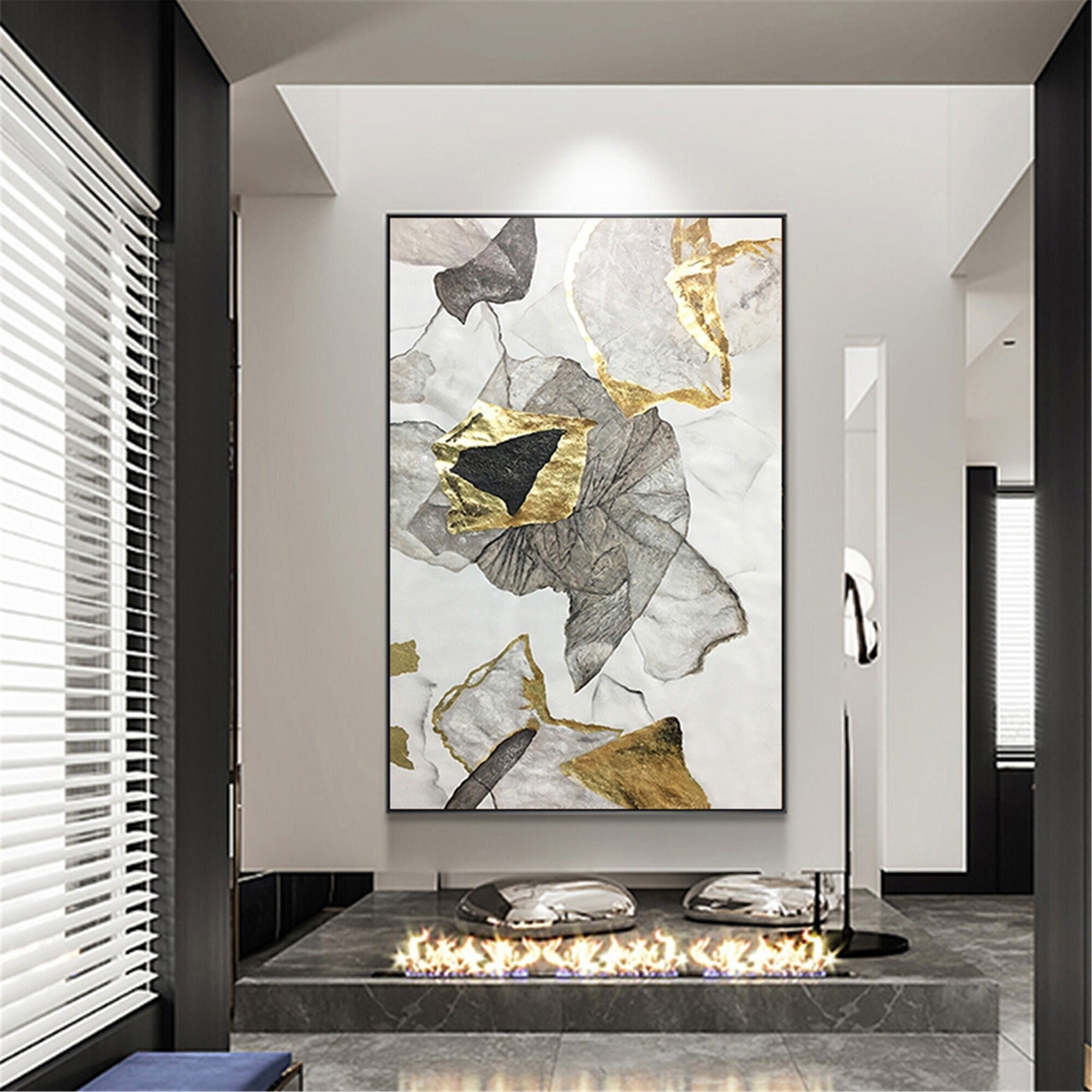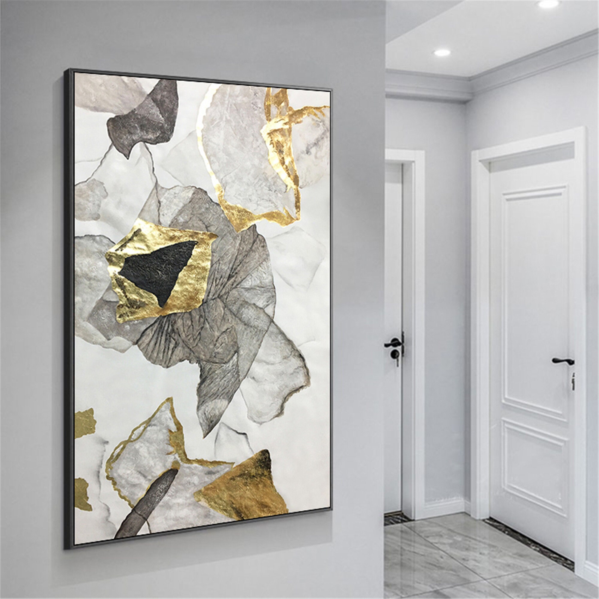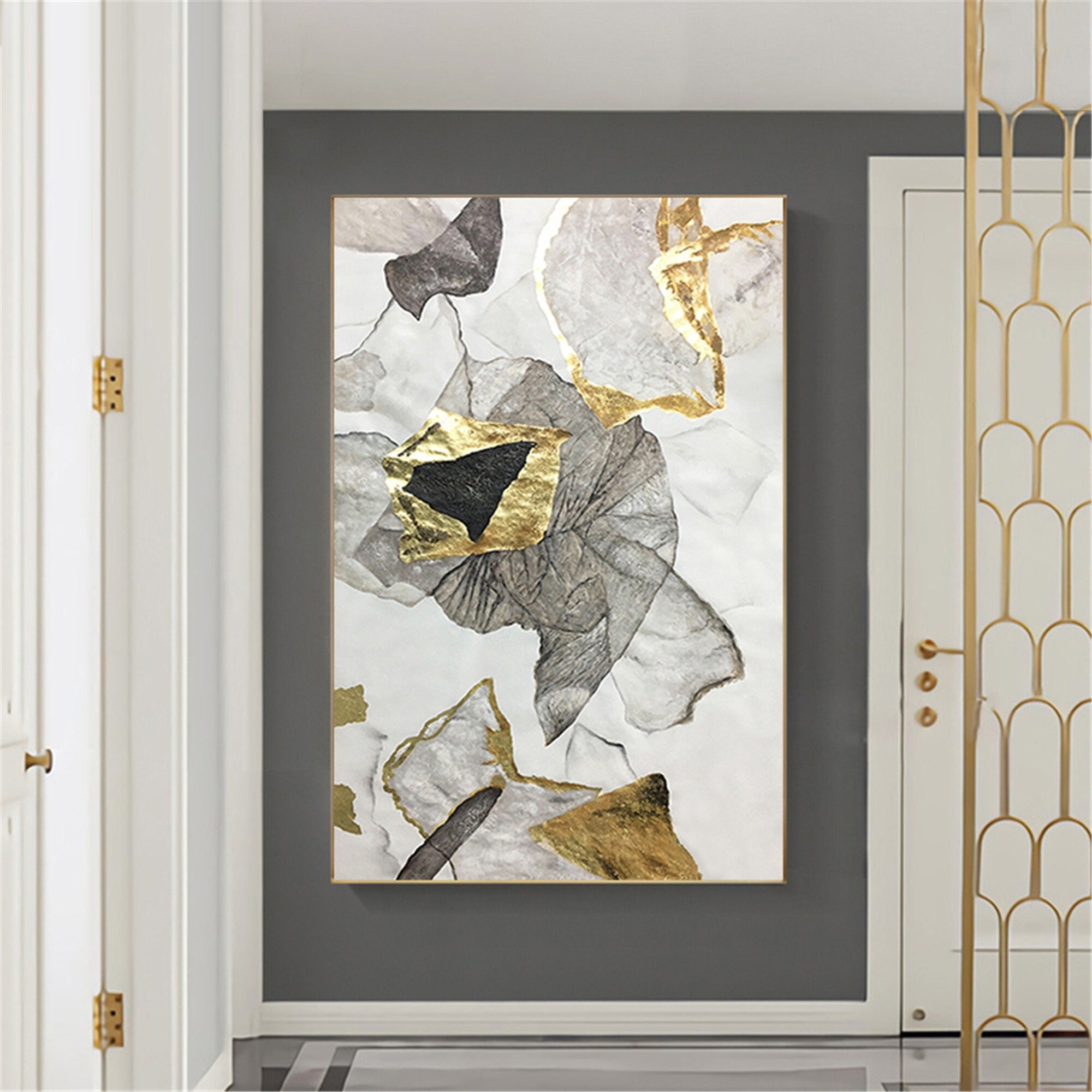 Gold Leaf Abstract Painting, Gray Acrylic Wall Art office home wall decor