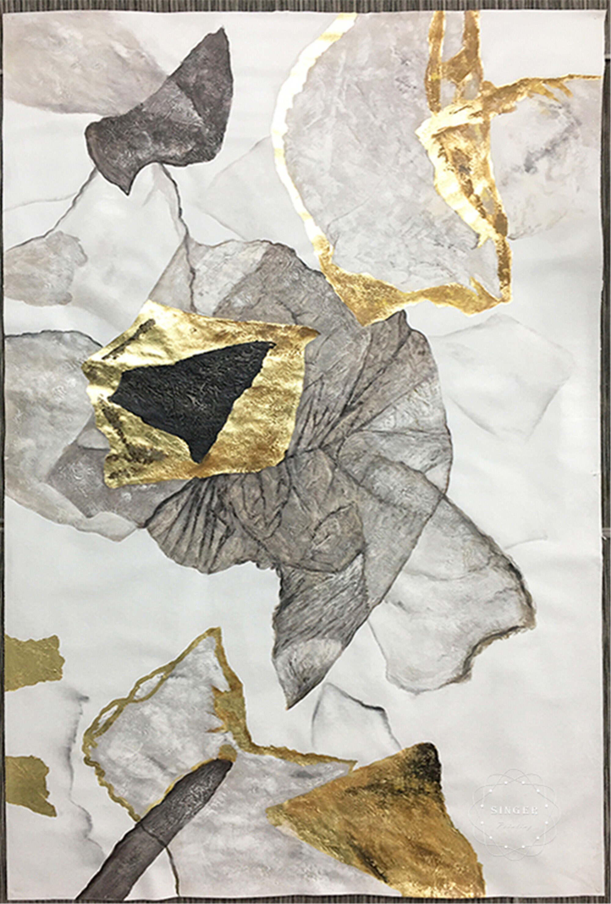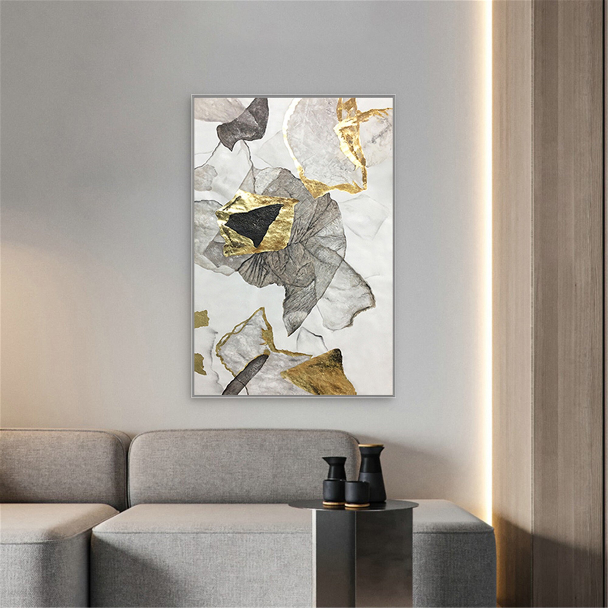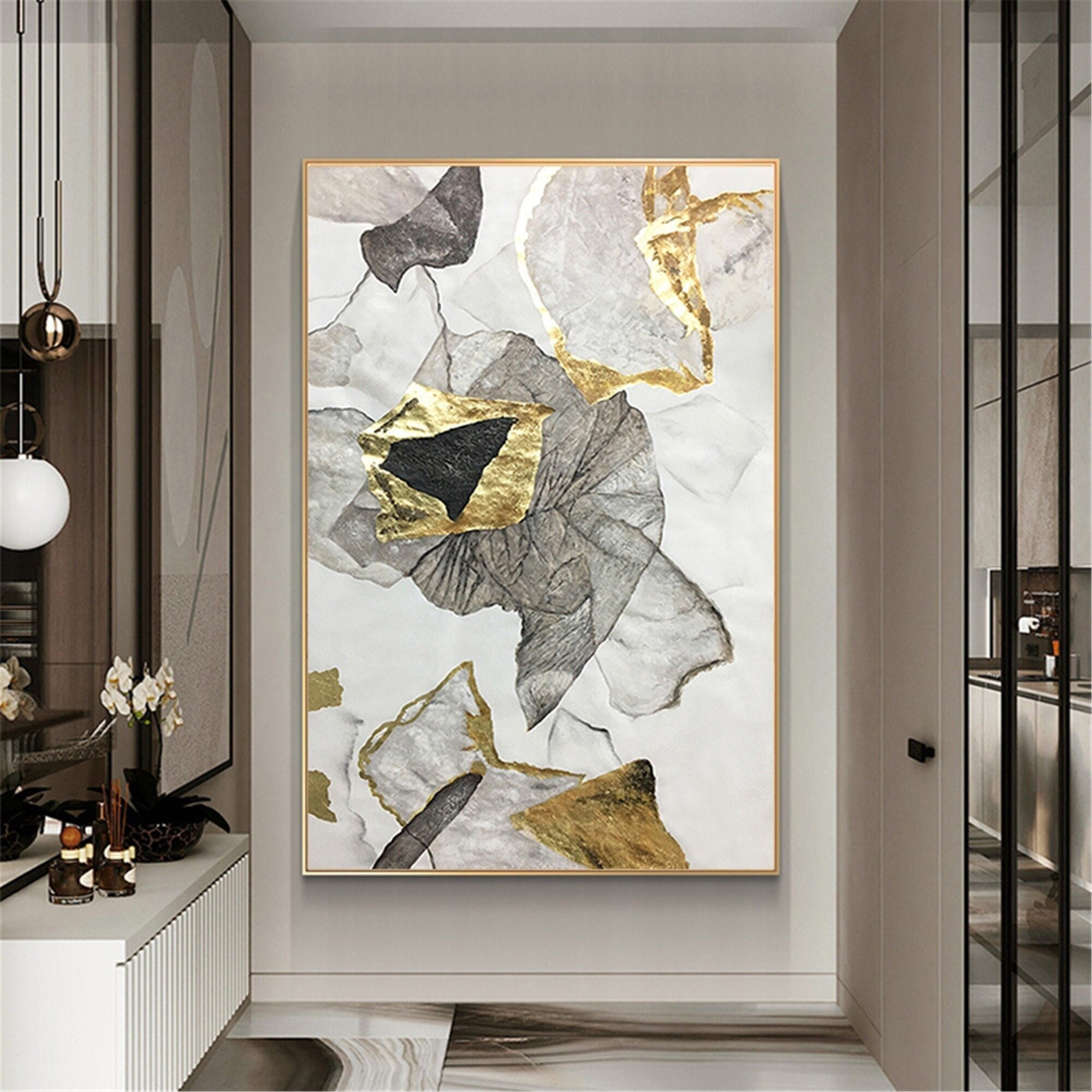 Gold Leaf Abstract Painting, Gray Acrylic Wall Art office home wall decor